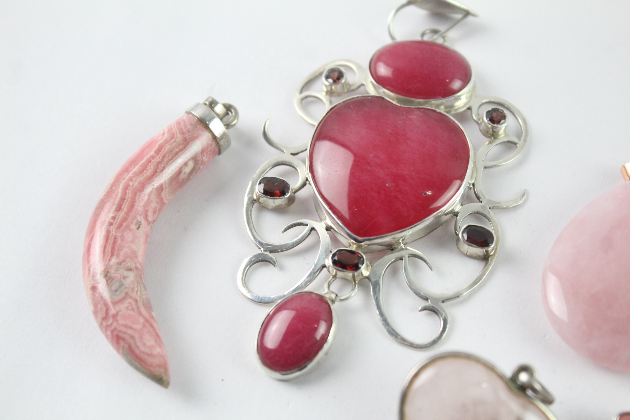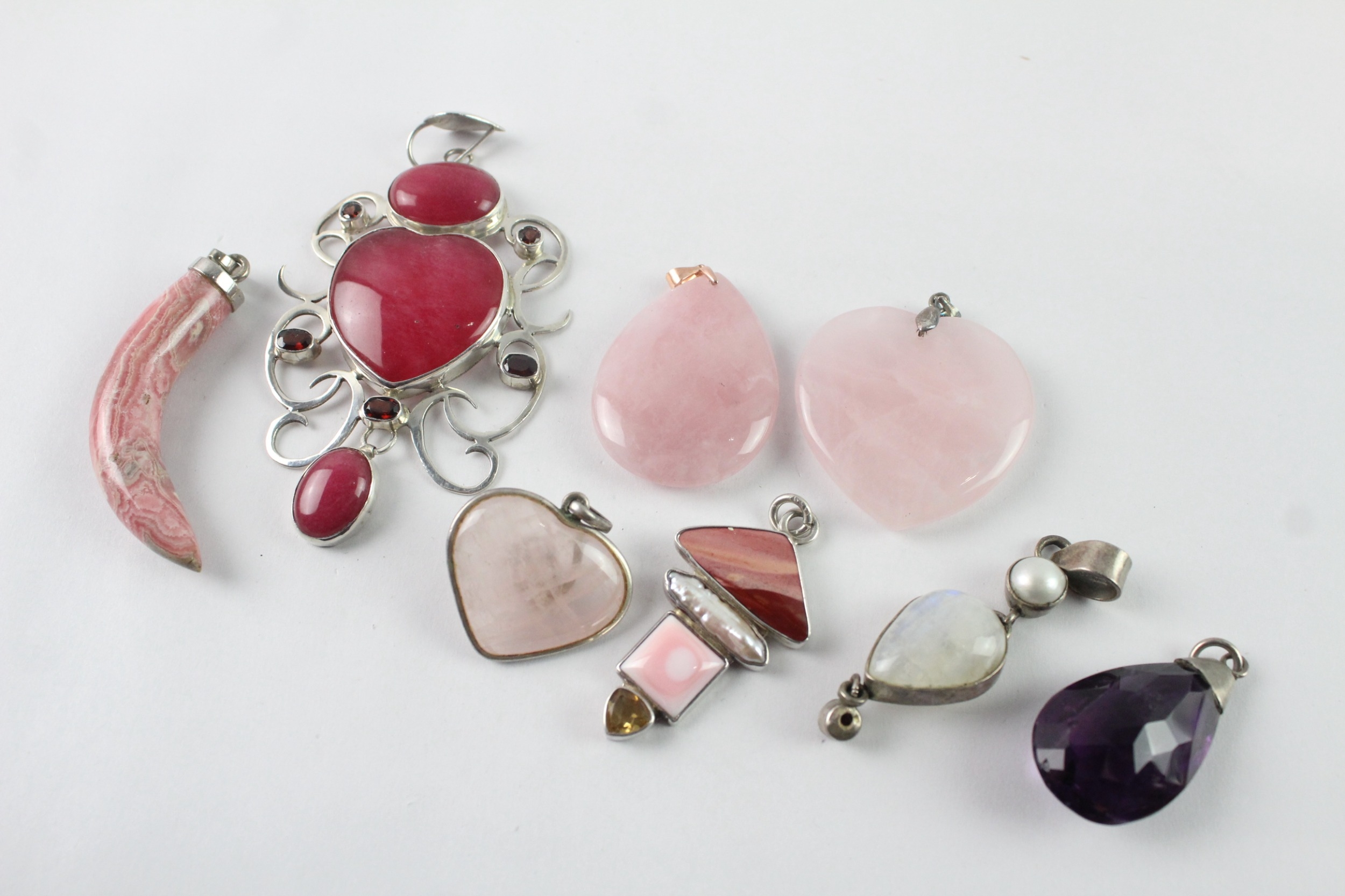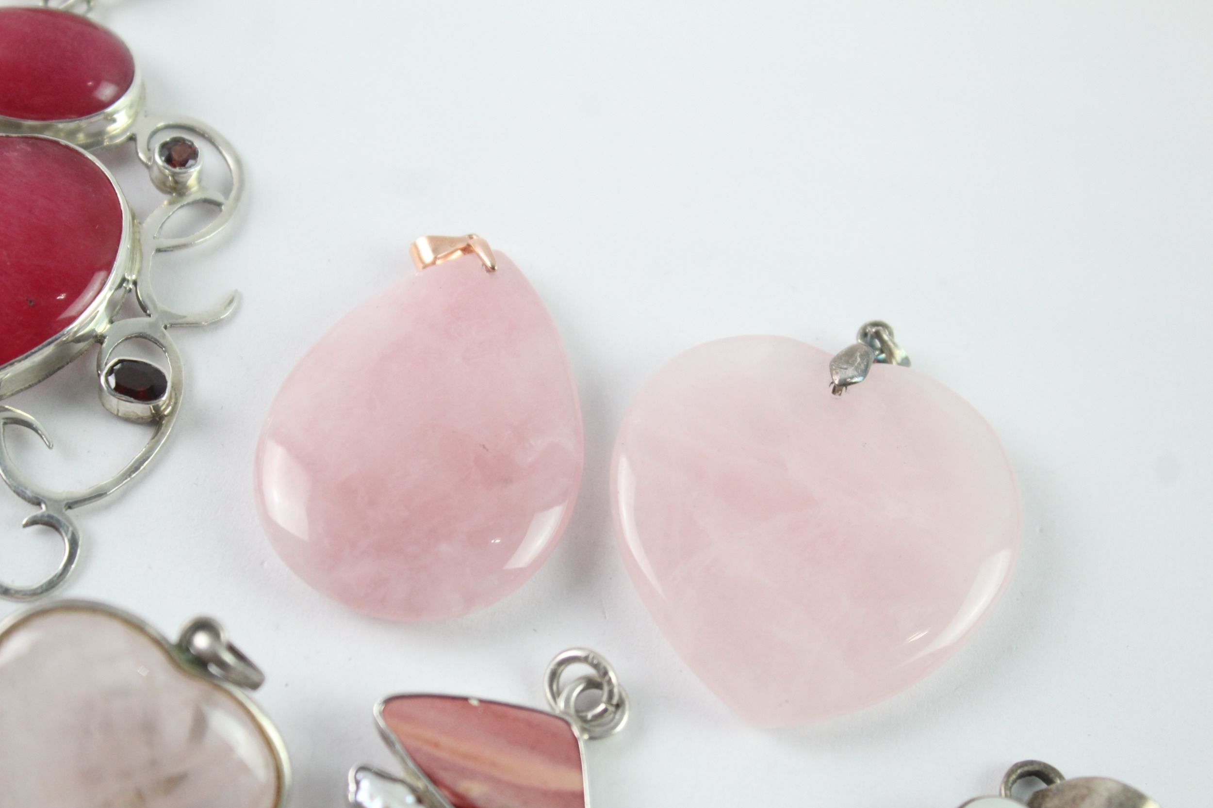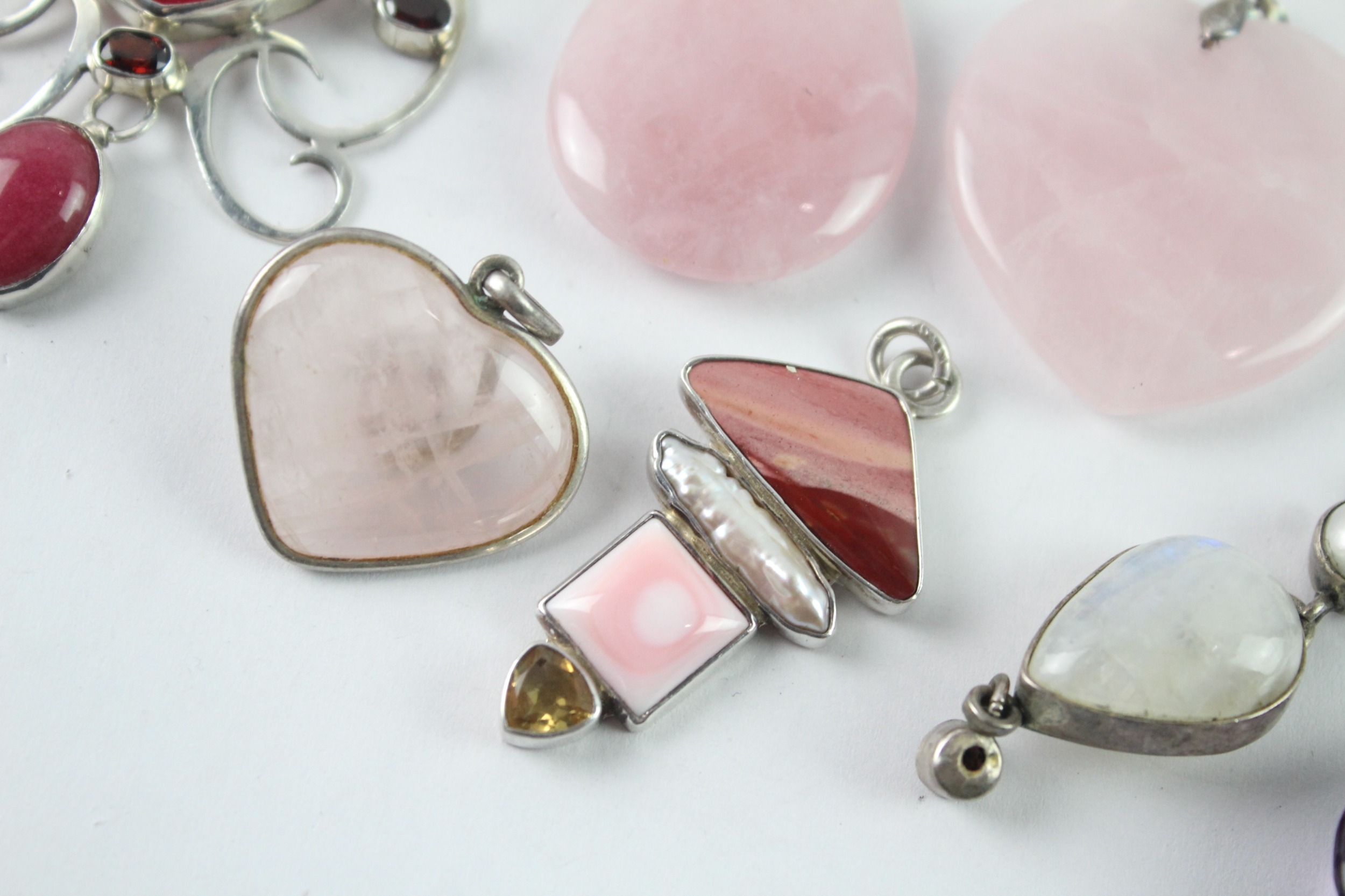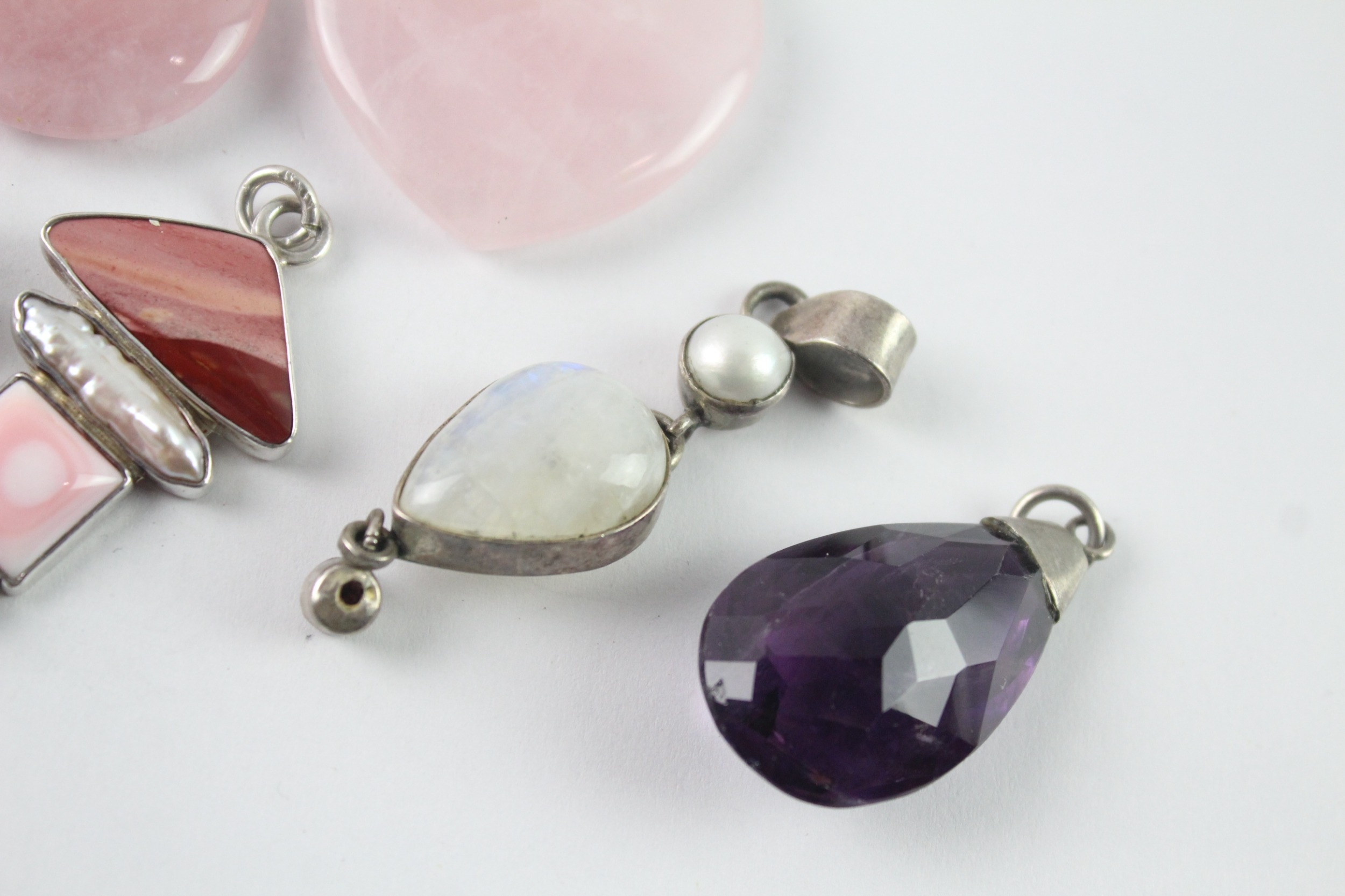 Collection of Sterling Silver Gemstone Pendants inc. Rose Quartz x 8 117g