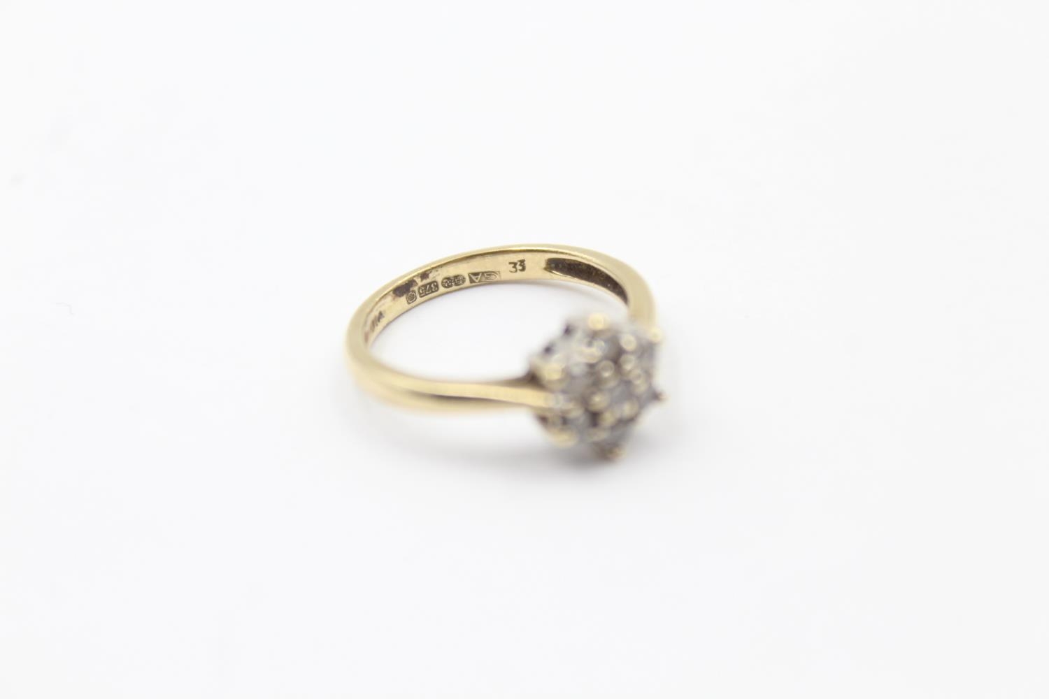 9ct gold diamond cluster ring (2.1g) Size K