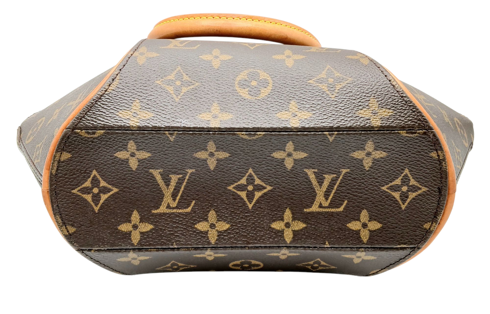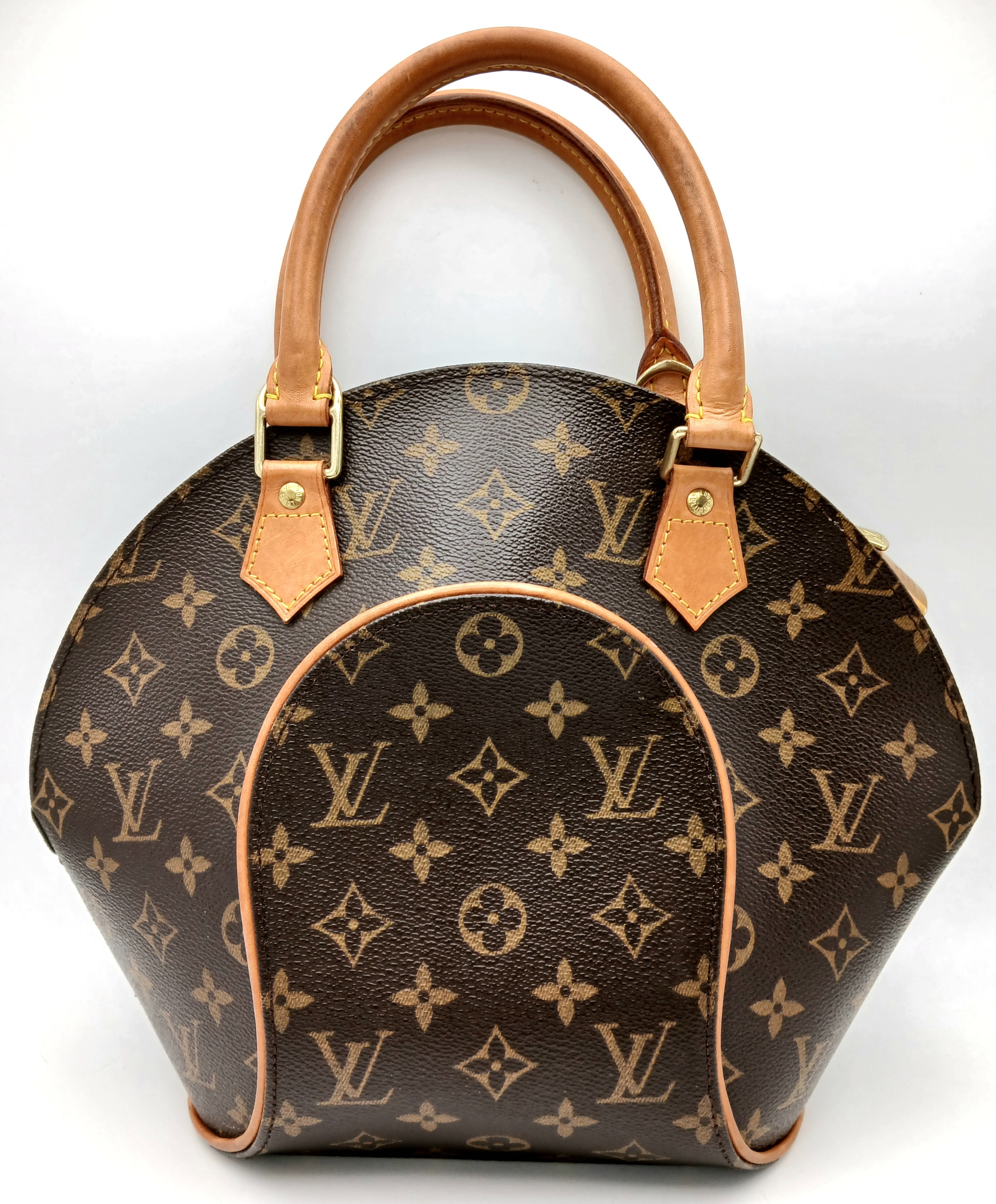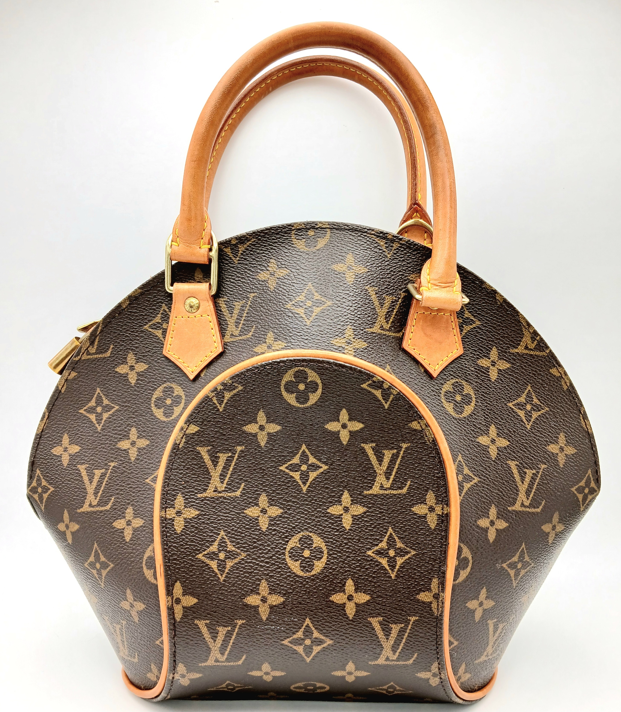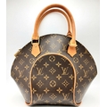 A Louis Vuitton Monogram Ellipse Bag. Coated canvas exterior with leather trim, gold-toned hardware, two rolled leather handles, padlock and double zip top closure. Brown textile interior with a small open side pocket. Approximately 30cm length (at its longest points) x 26cm height. A little discolouration to leather, stains to interior - please see photos for conditions or request a condition report. Ref: 22541