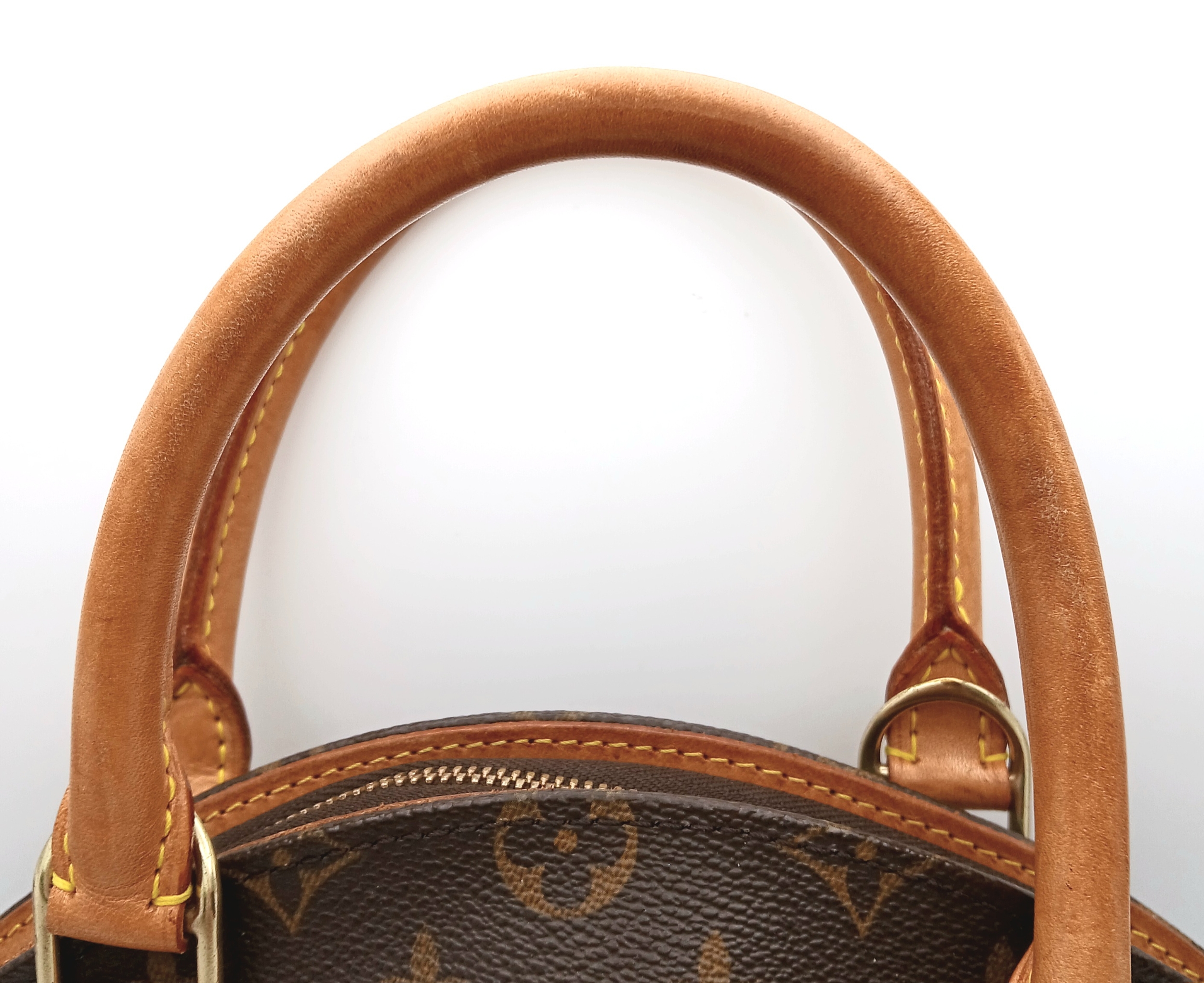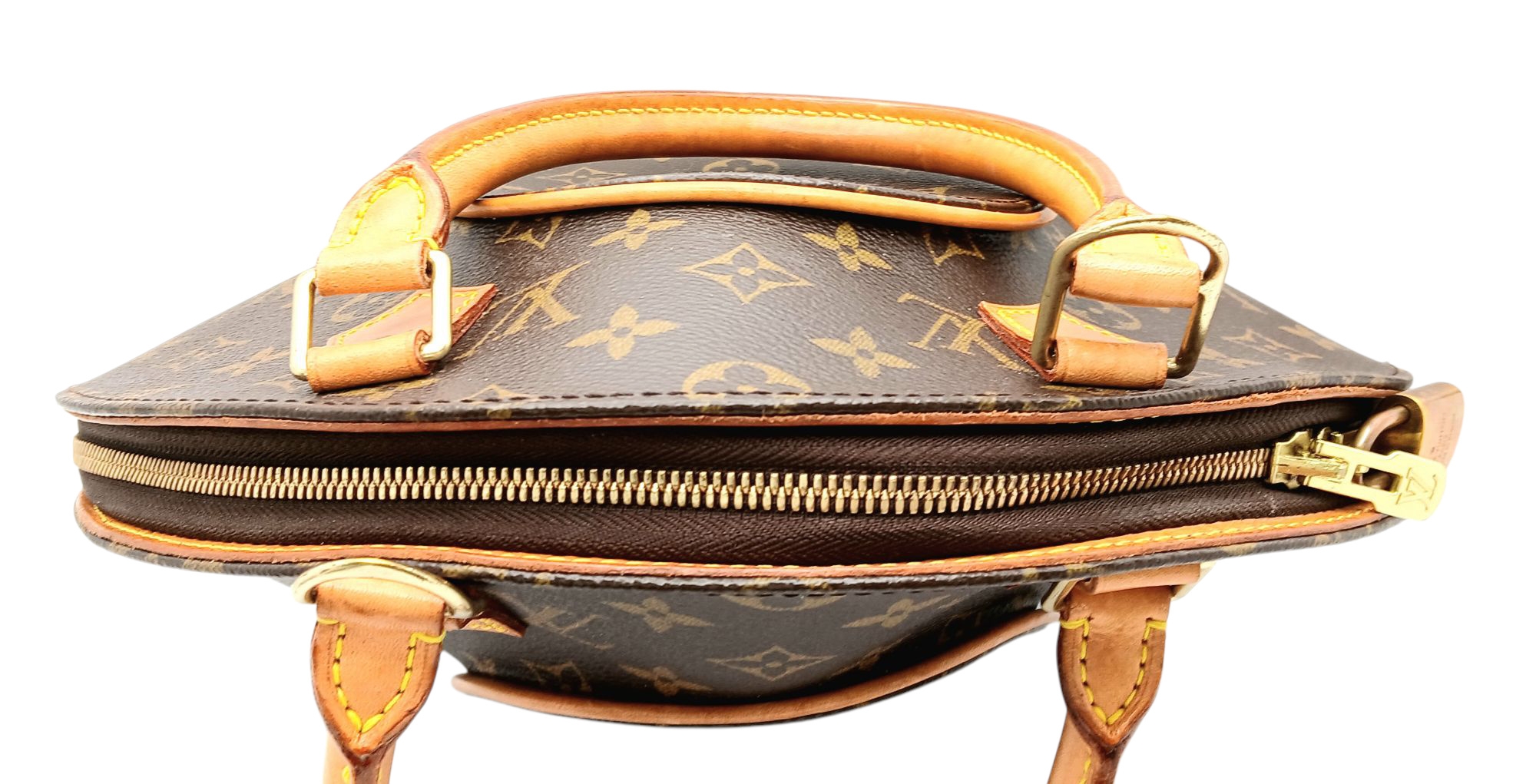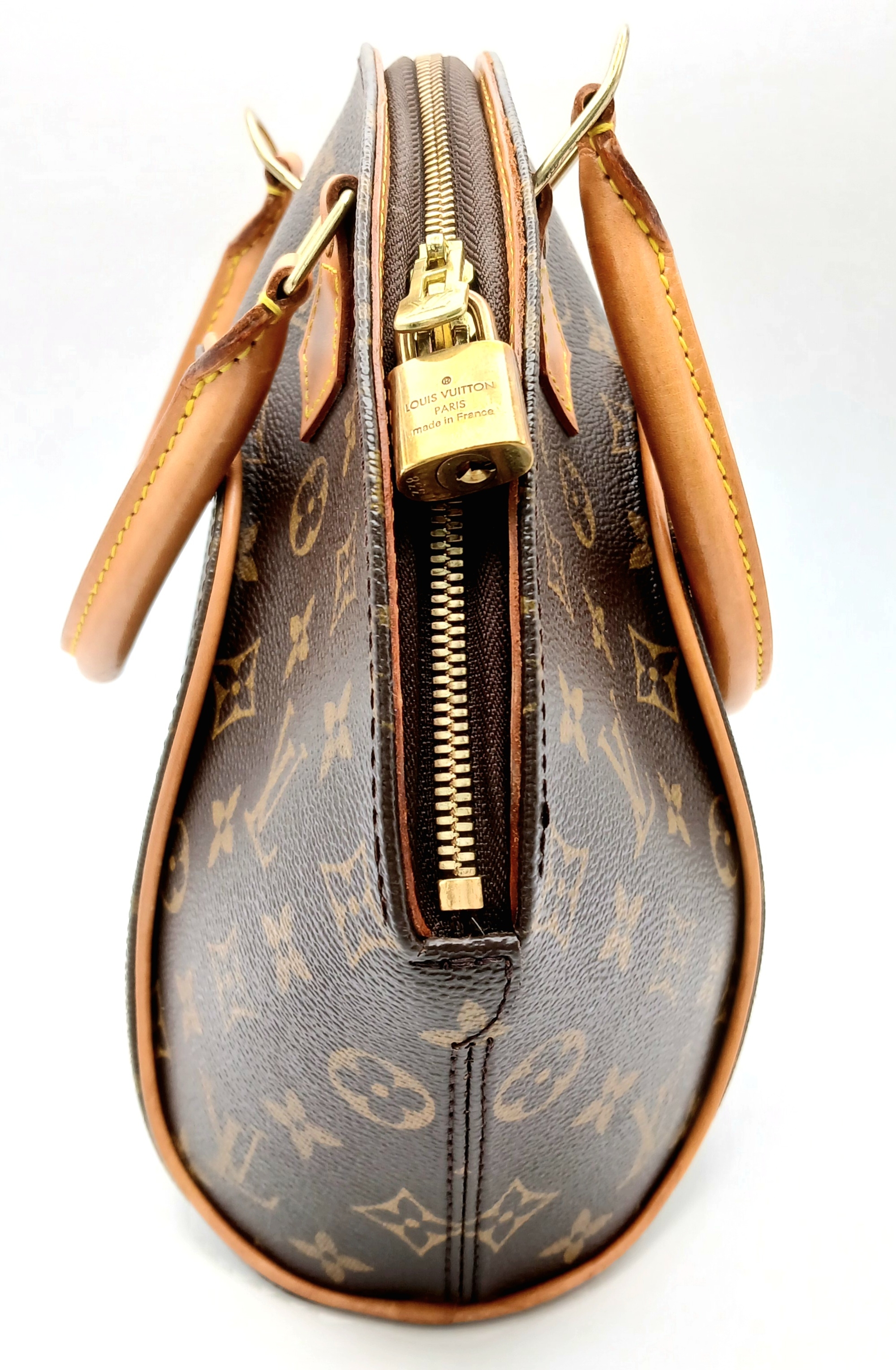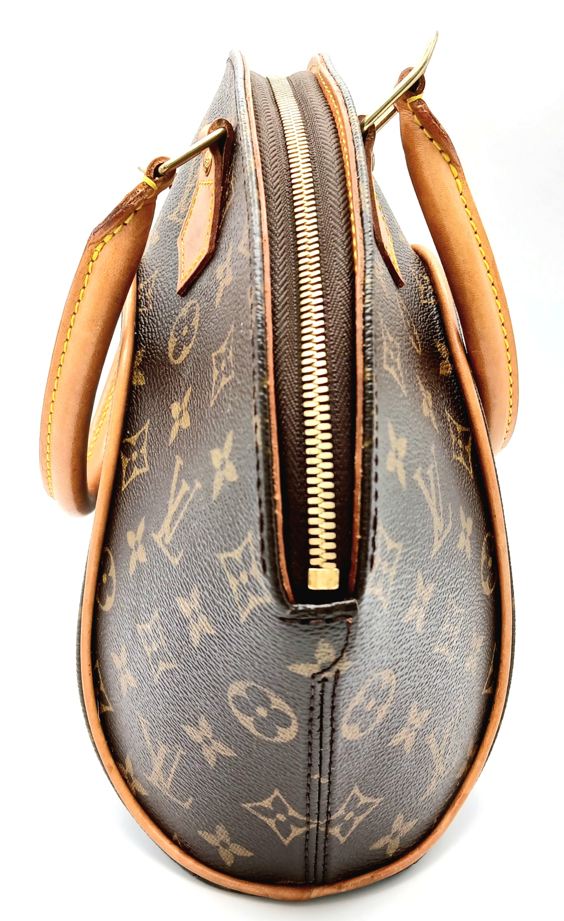 A Louis Vuitton Monogram Ellipse Bag. Coated canvas exterior with leather trim, gold-toned hardware, two rolled leather handles, padlock and double zip top closure. Brown textile interior with a small open side pocket. Approximately 30cm length (at its longest points) x 26cm height. A little discolouration to leather, stains to interior - please see photos for conditions or request a condition report. Ref: 22541