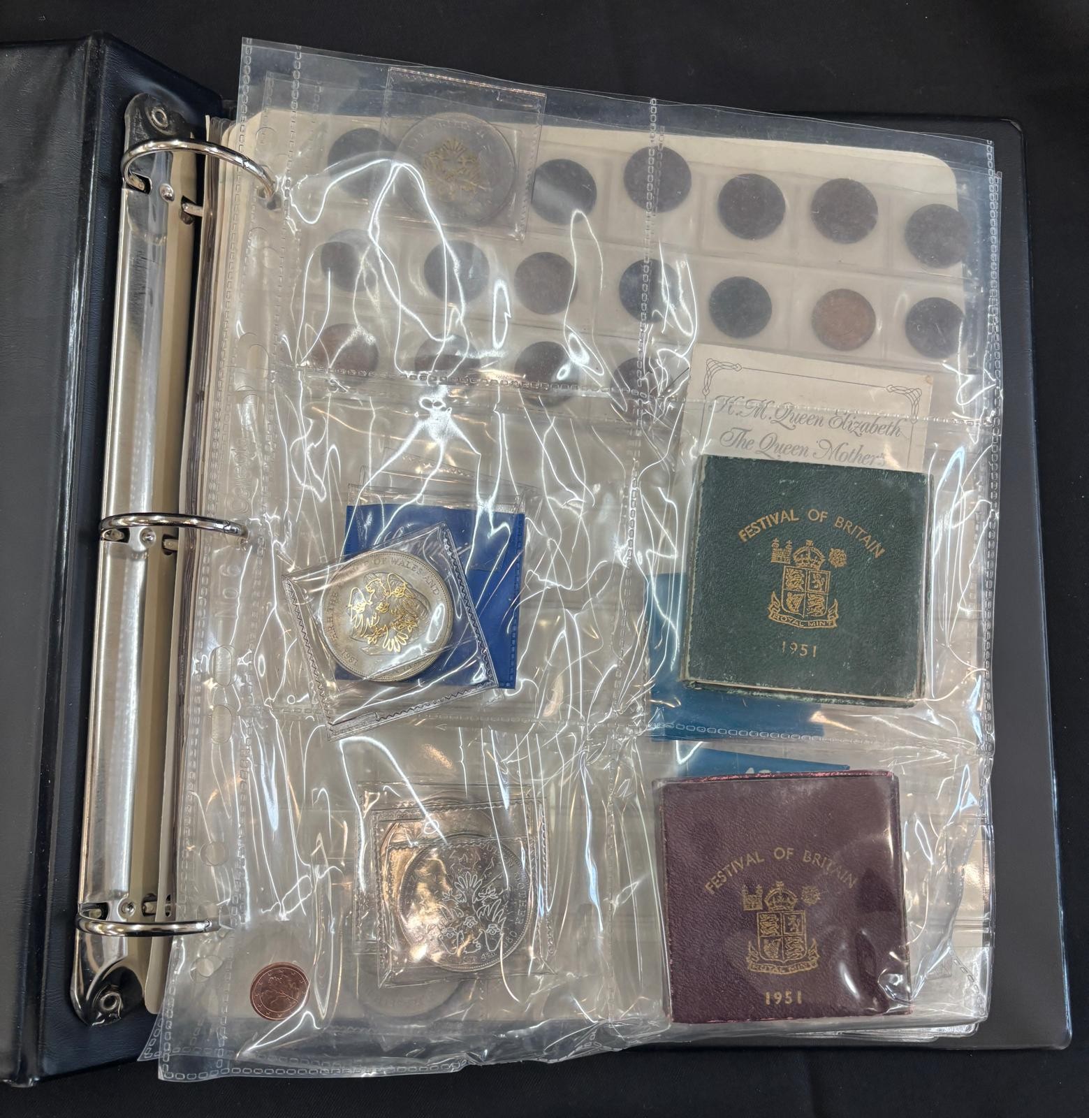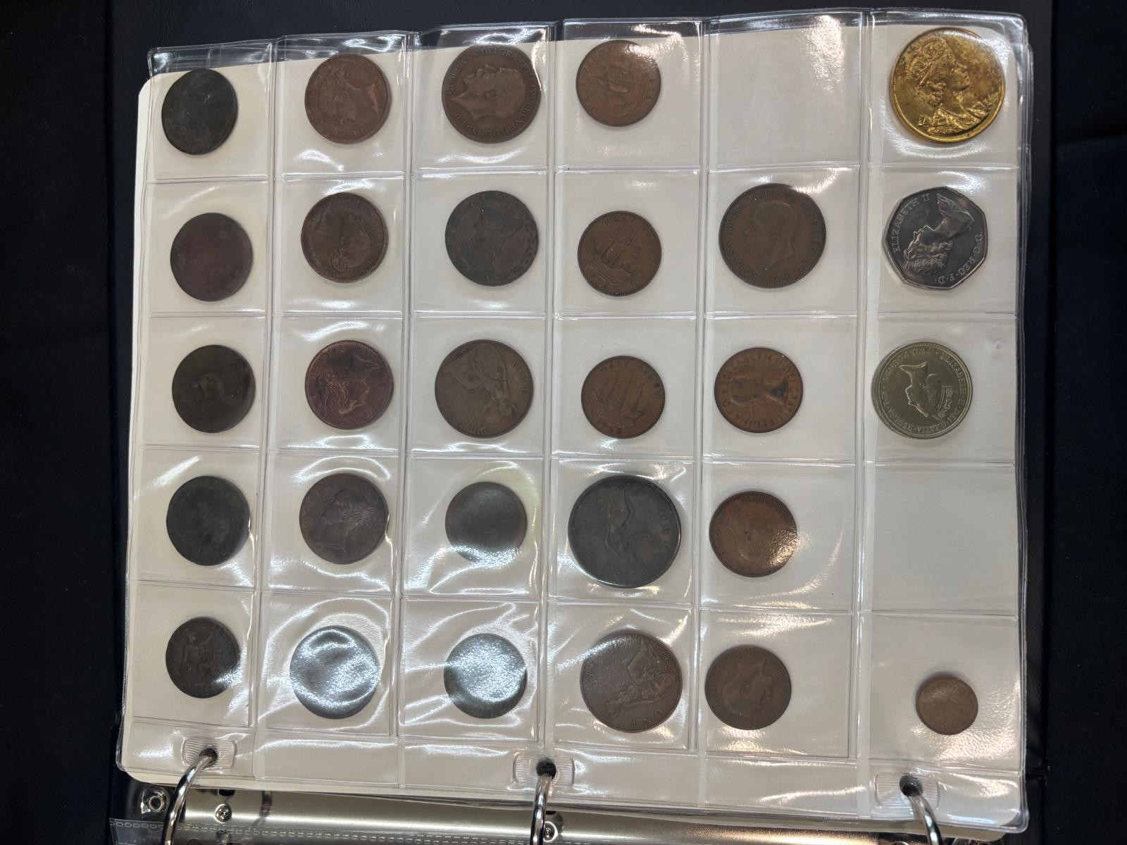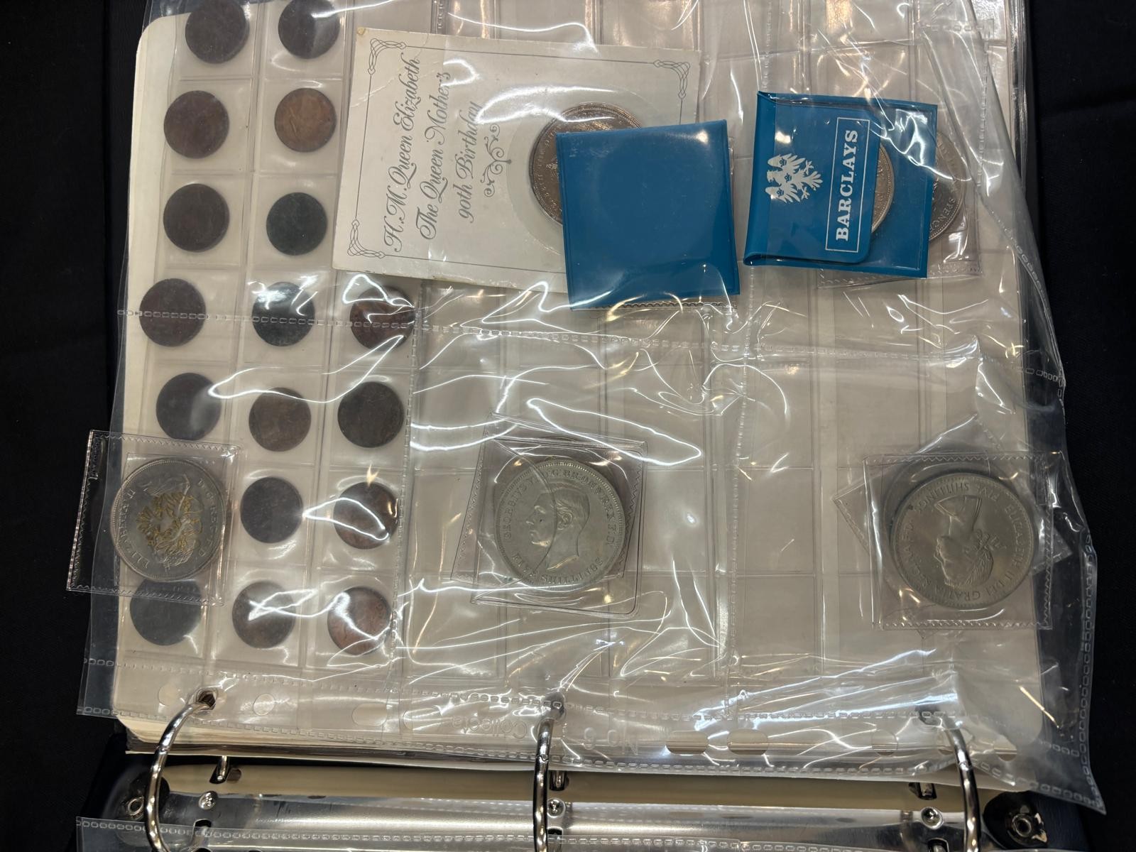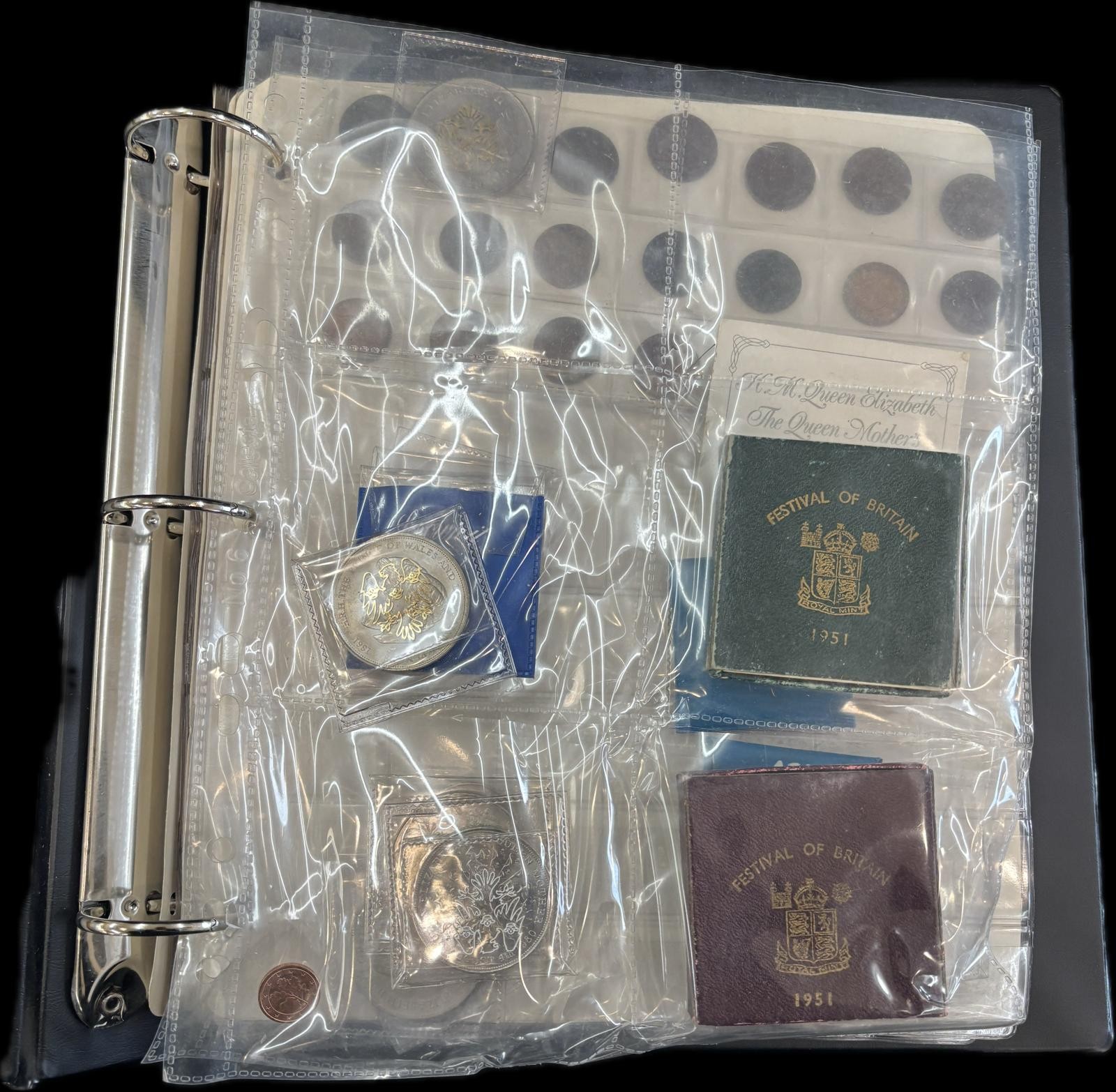Folder of antique and later coins includes Maundy coin , silver coins, etc