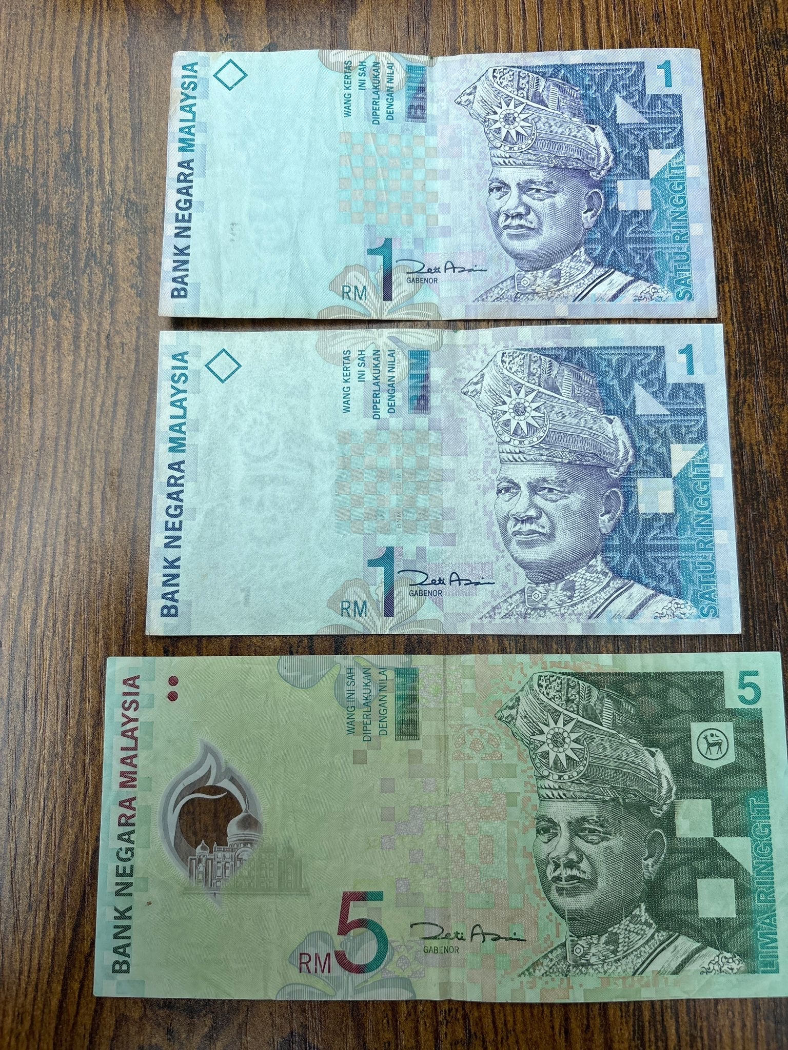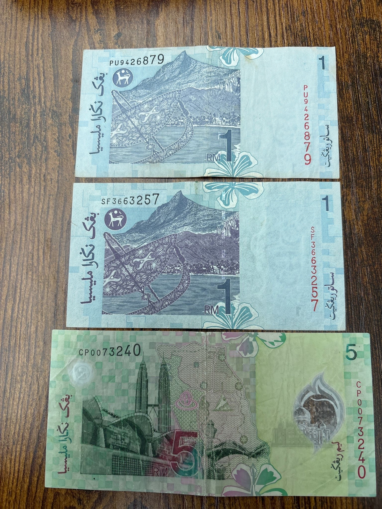 Collection of Malaysia banknotes comprising 1 Ringgit (x4) and 5 Ringgit (x1). Includes modern Bank Negara Malaysia issues featuring portrait and scenic reverse designs including mountains, architecture and national motifs. A tidy country group ideal for collectors or as a starter set. Notes are circulated with light folds and handling wear.