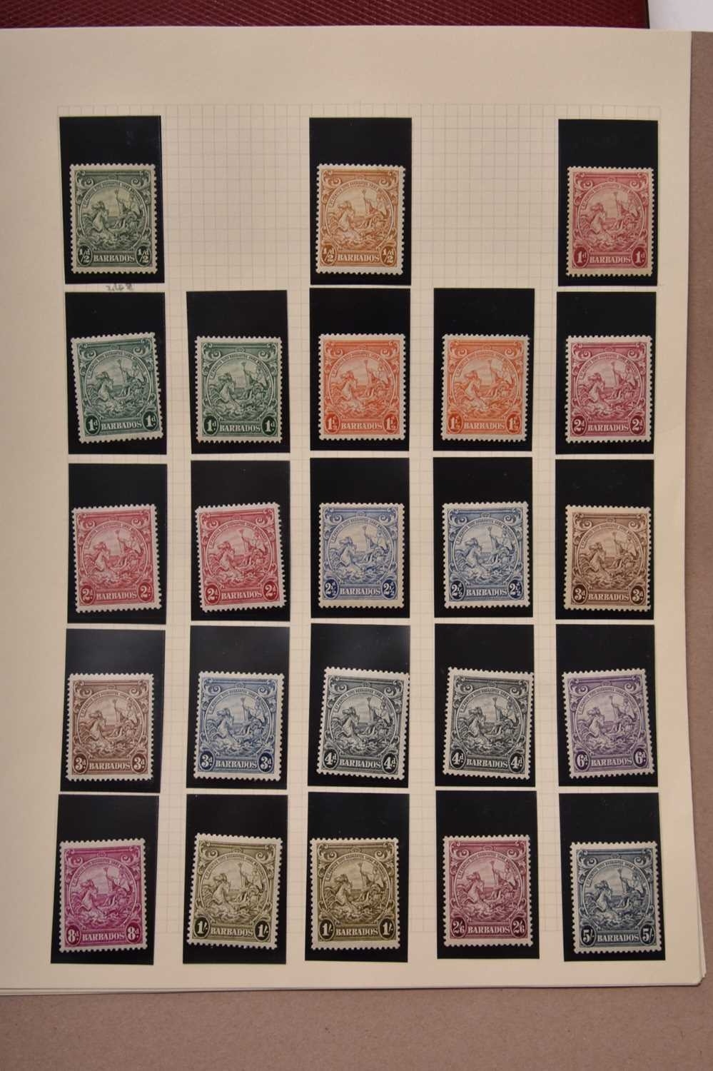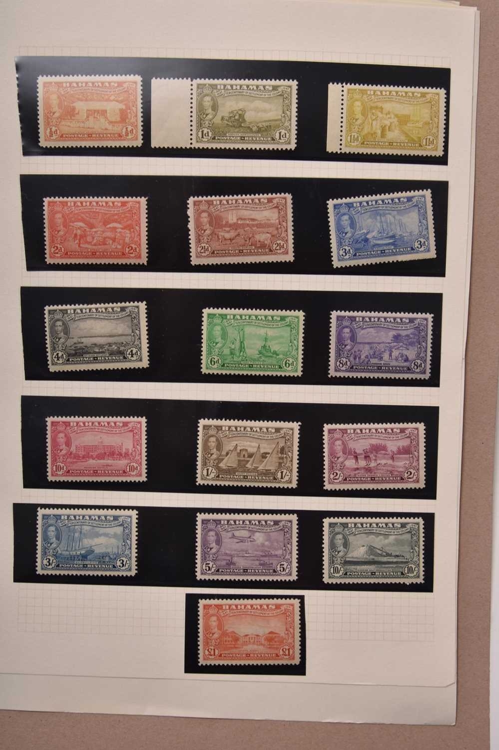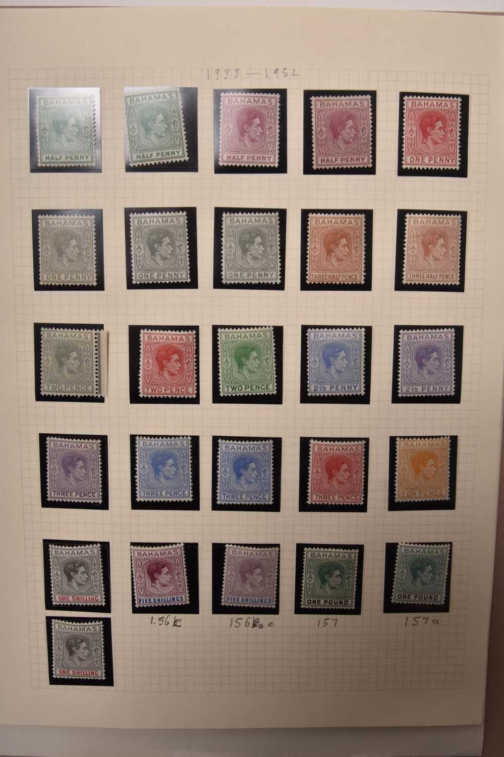 West Indian countries stamps, mainly better KG VI and QE2 issues in card folders: Bahamas (1937-54 mint and used, mint almost complete); Barbados (1937-64 mint, complete with many "a's" and "b's"); British Guiana/Guyana (1931-66 used complete except for 1963 definitives, some extra perfs, 1951-74 mint, not complete, then a folder of duplicated mainly used 1874-2000); Cayman Islands (1937-63 mint complete plus a few extras); Dominica (1937-68 virtually complete mint to end 1967, used for the period is much less so); Montserrat (1937-51 mint, the 1938 set has many of the perfs/shades); St Christopher, Nevis, Anguilla (1953-63 complete mint); St Kitts-Nevis (1937-52 complete mint plus a few extras); St Lucia (1937-53 mint, looks complete); St Vincent (1937-67 complete mint). Total Catalogue value in excess of £3,200.