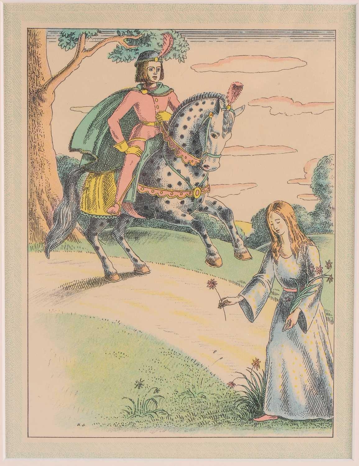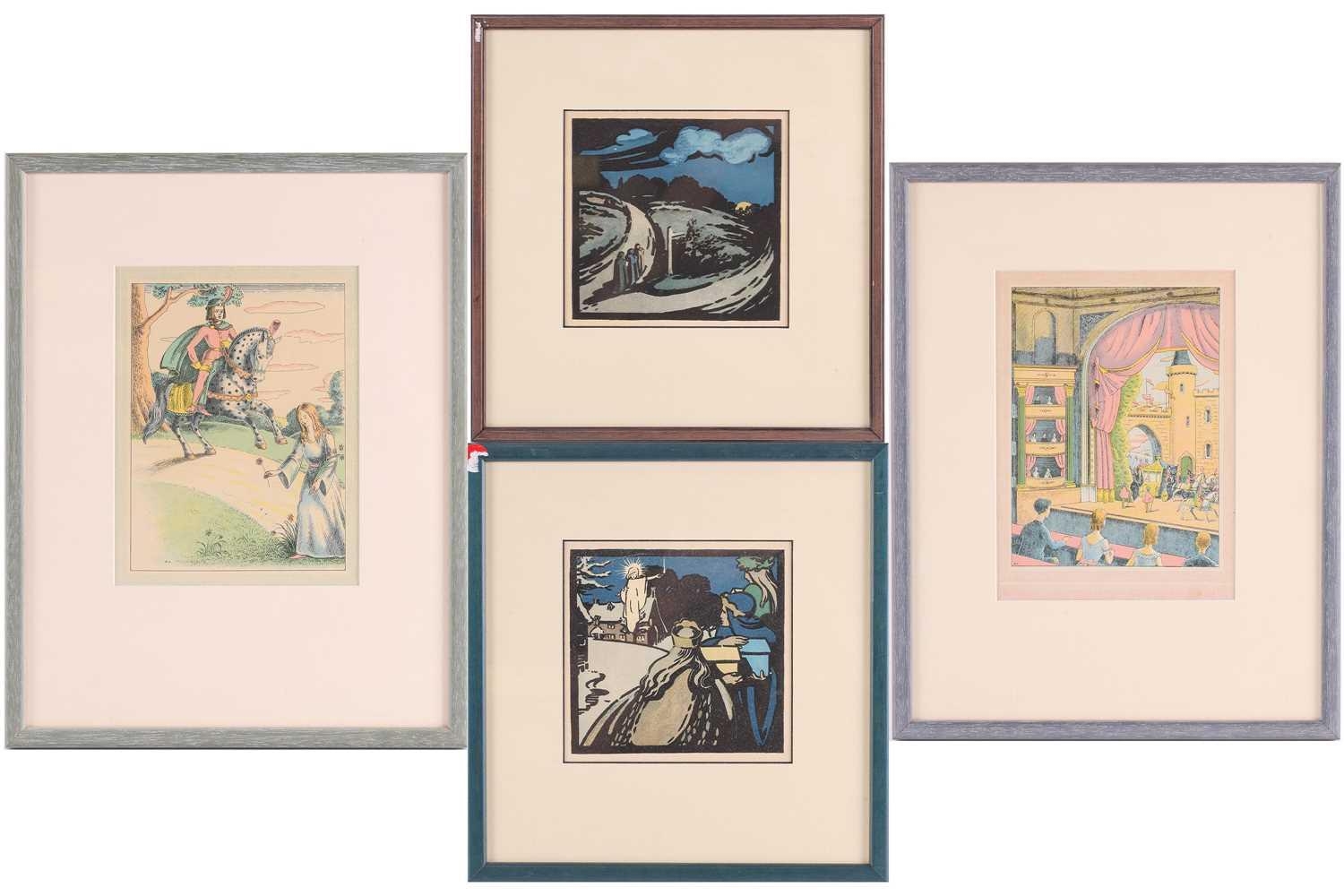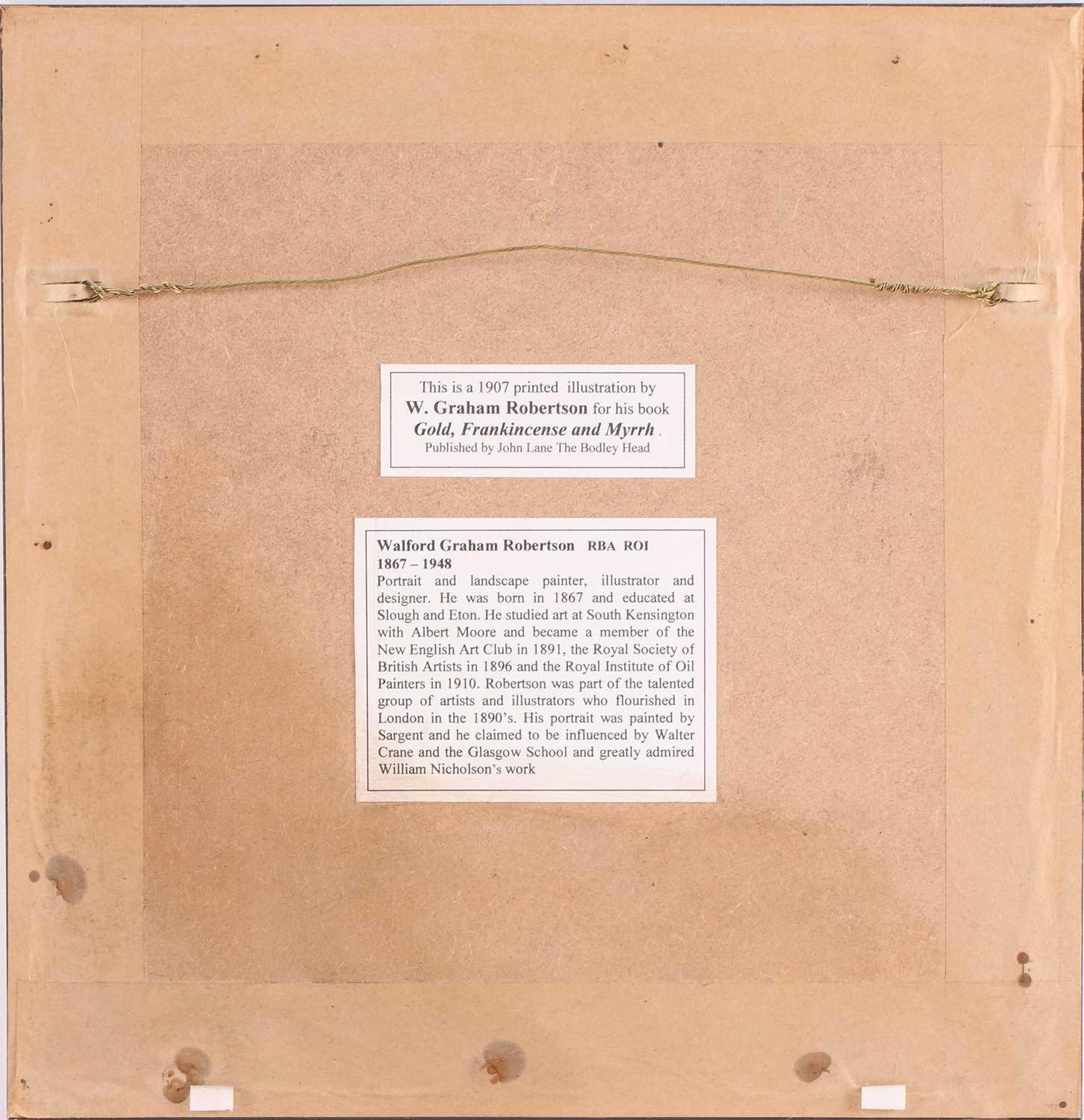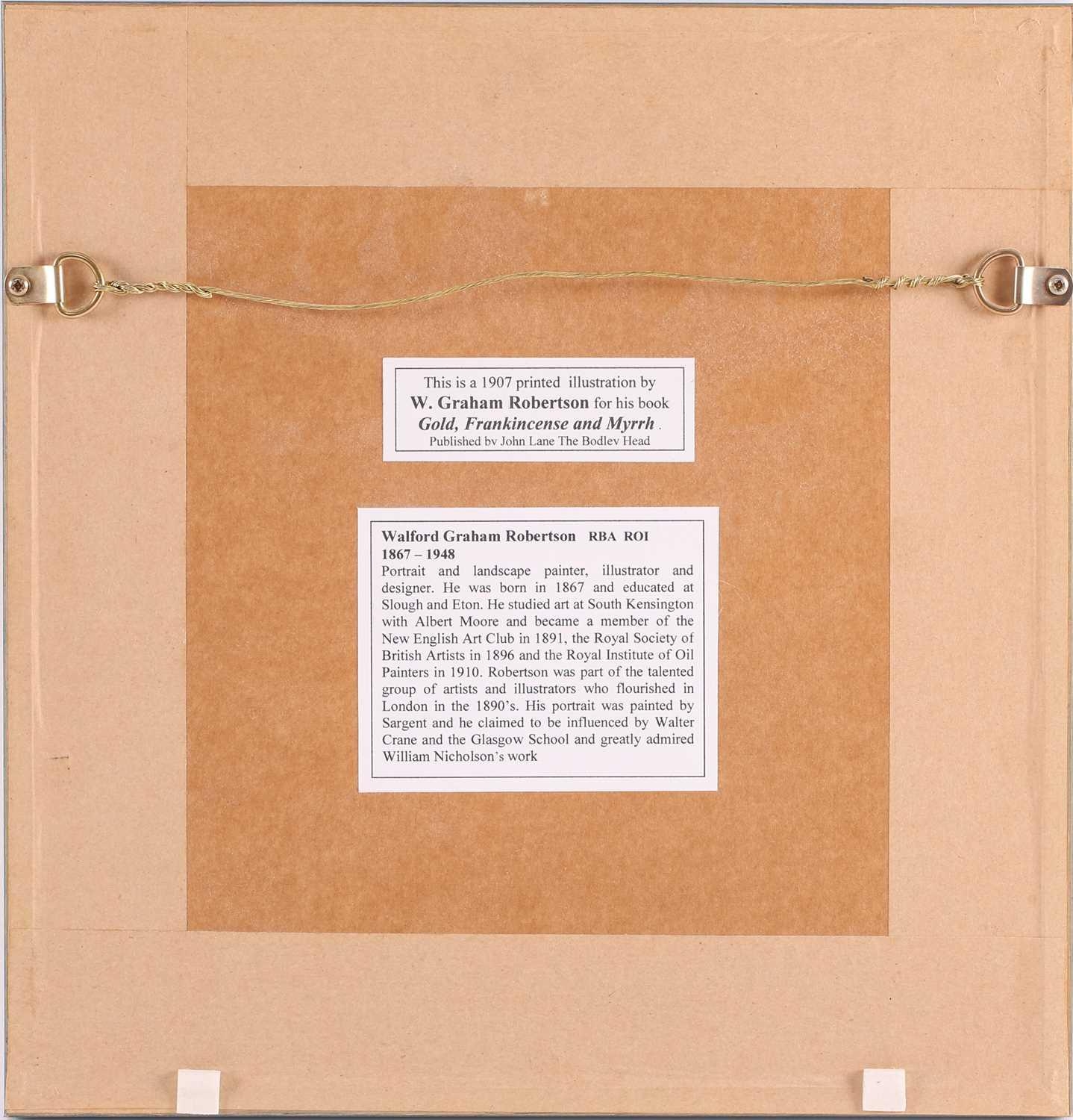 † Harold Jones (1904-1922), two colour lithographs, each 23 cm x 16cm, together with Walford Graham Robertson RBA ROI (1867-1948), two book illustrations from 'Gold, Frankincense and Myrrh', published by John Lane, The Bodley Head, each 15 cm x 15 cm framed and glazed.