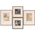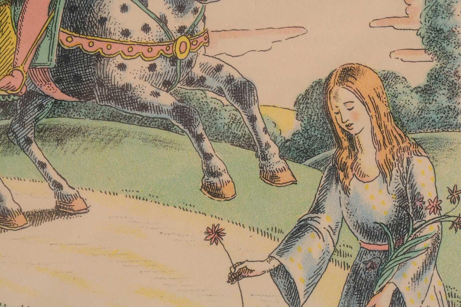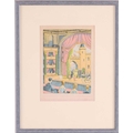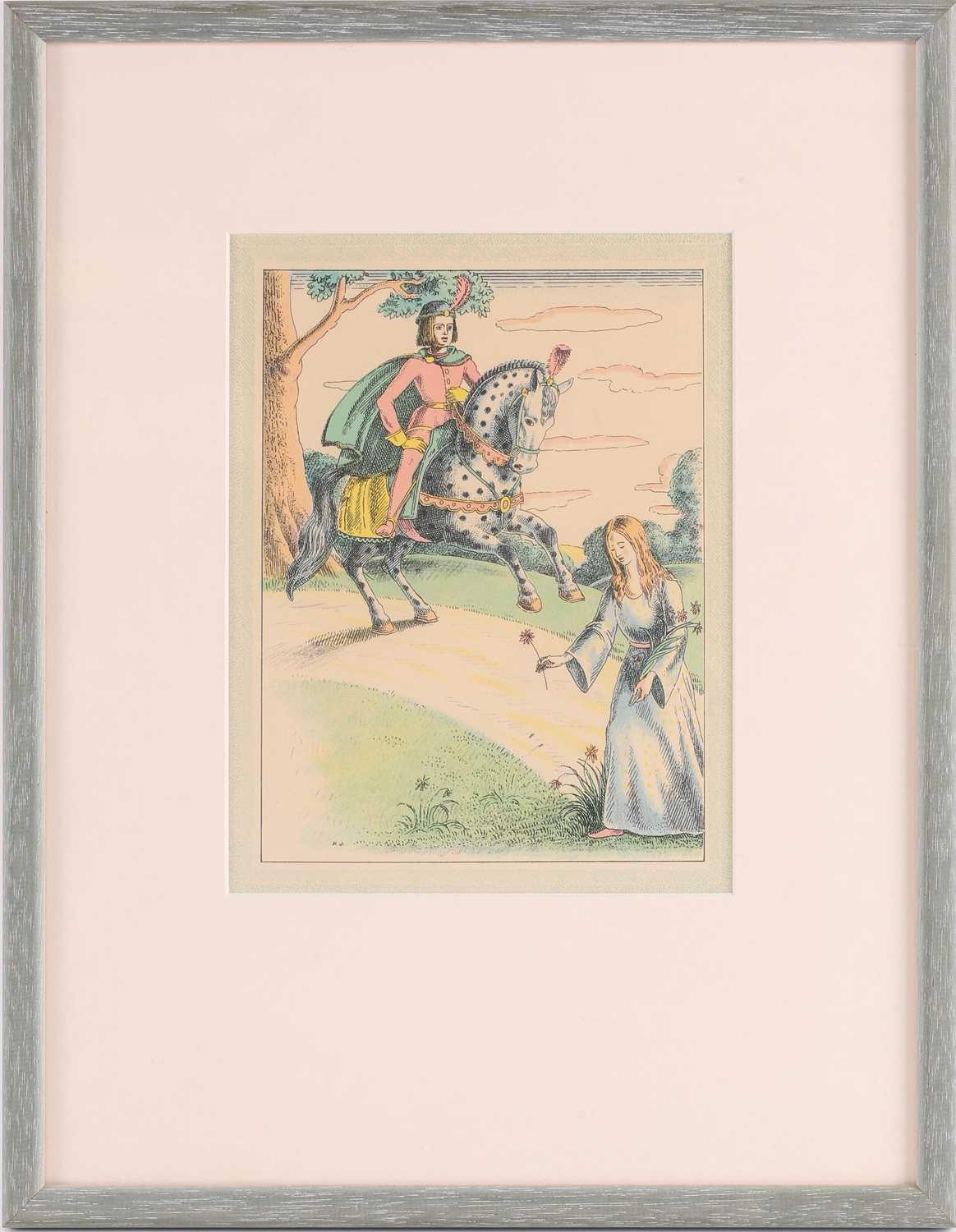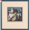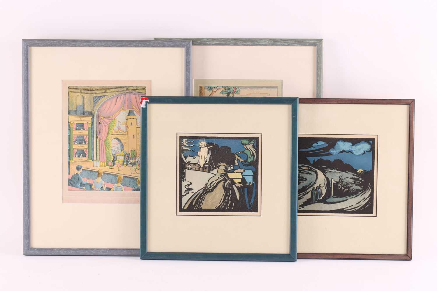 † Harold Jones (1904-1922), two colour lithographs, each 23 cm x 16cm, together with Walford Graham Robertson RBA ROI (1867-1948), two book illustrations from 'Gold, Frankincense and Myrrh', published by John Lane, The Bodley Head, each 15 cm x 15 cm framed and glazed.