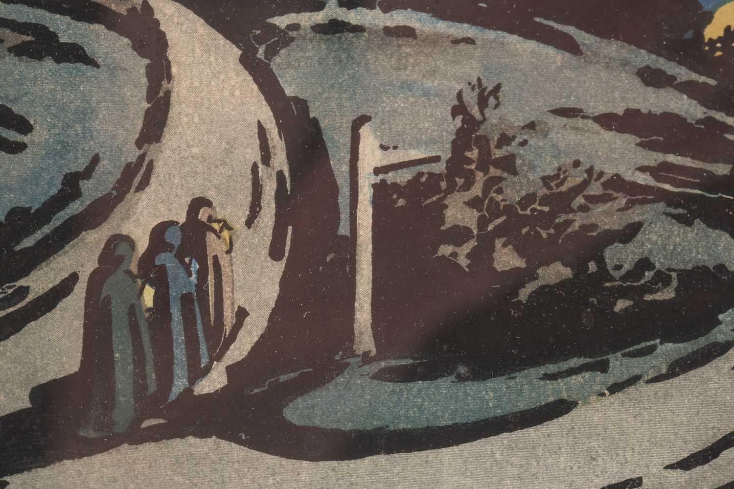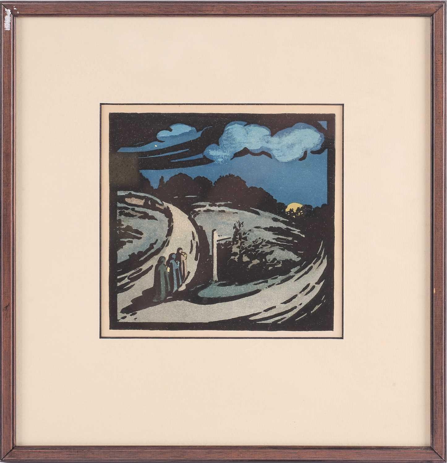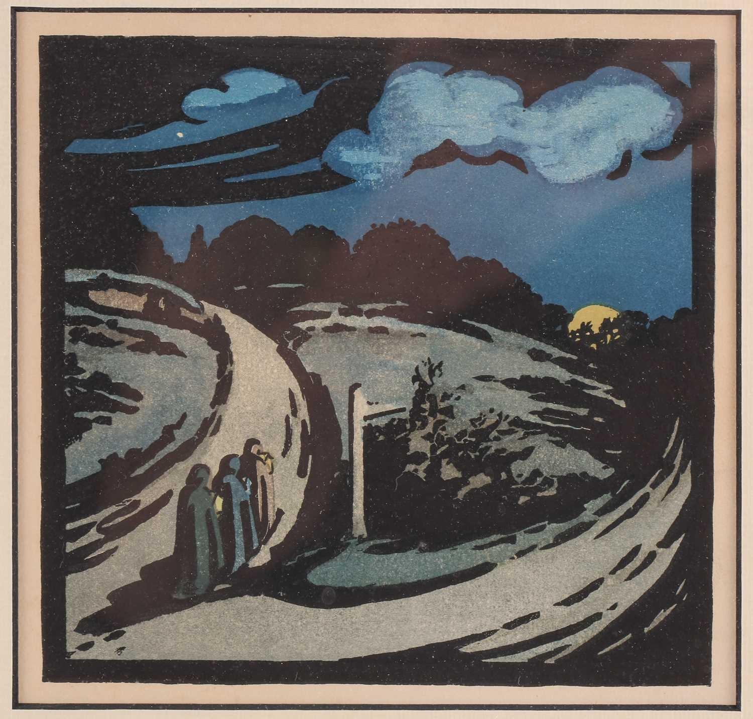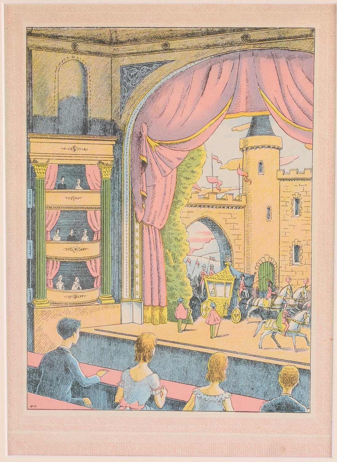 † Harold Jones (1904-1922), two colour lithographs, each 23 cm x 16cm, together with Walford Graham Robertson RBA ROI (1867-1948), two book illustrations from 'Gold, Frankincense and Myrrh', published by John Lane, The Bodley Head, each 15 cm x 15 cm framed and glazed.
