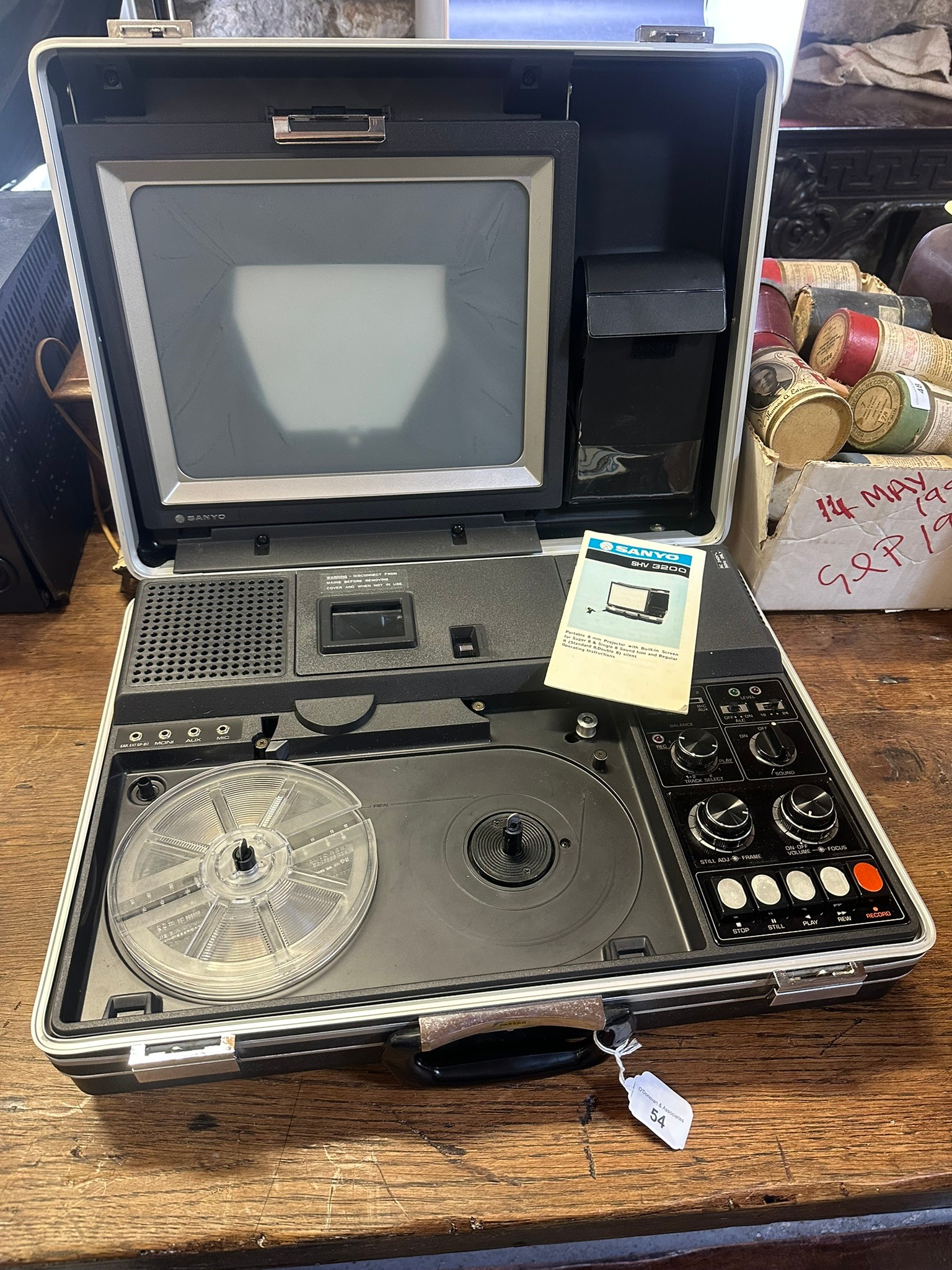 Sanyo portable 8mm projector with built in screen for super 8 and single 8 sound film incase, SHV3200