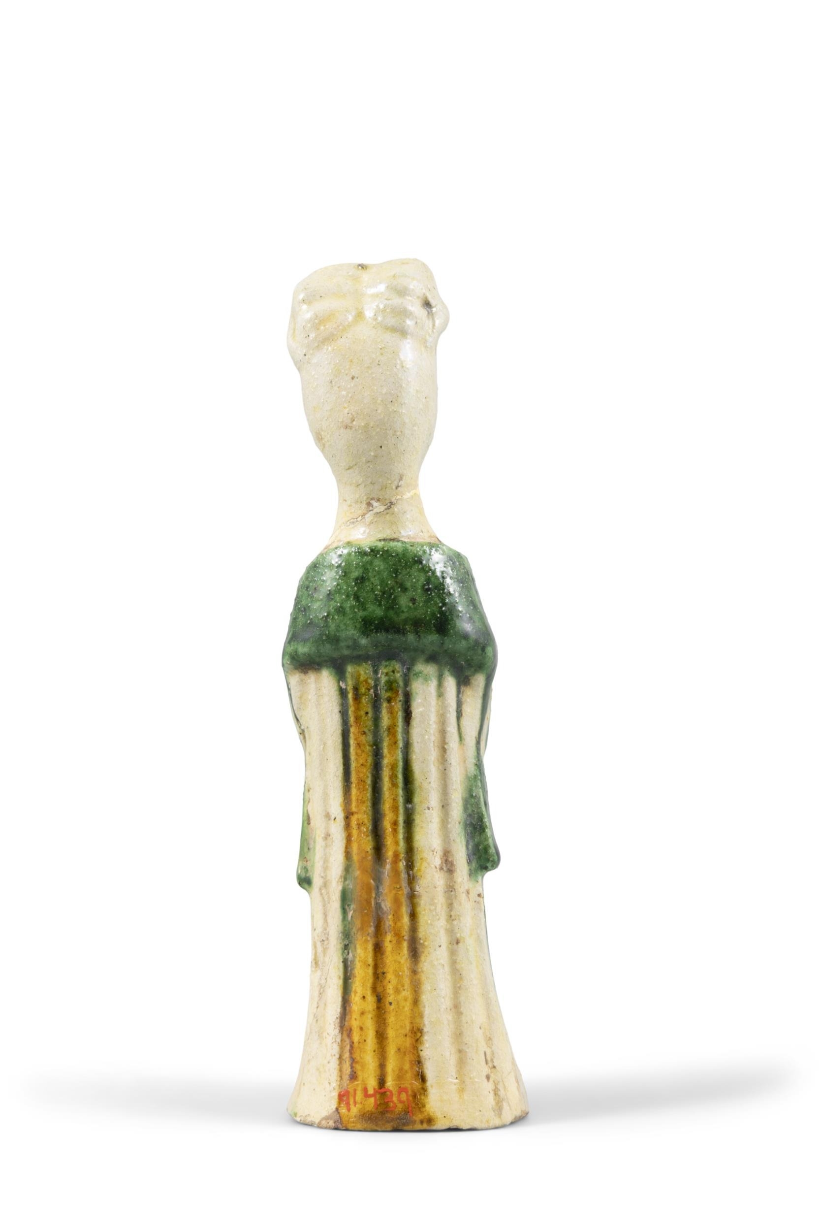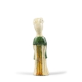 A SANCAI-GLAZED POTTERY FIGURE OF A STANDING LADY ?? ?????? China, Tang dynasty H: 14.4cm