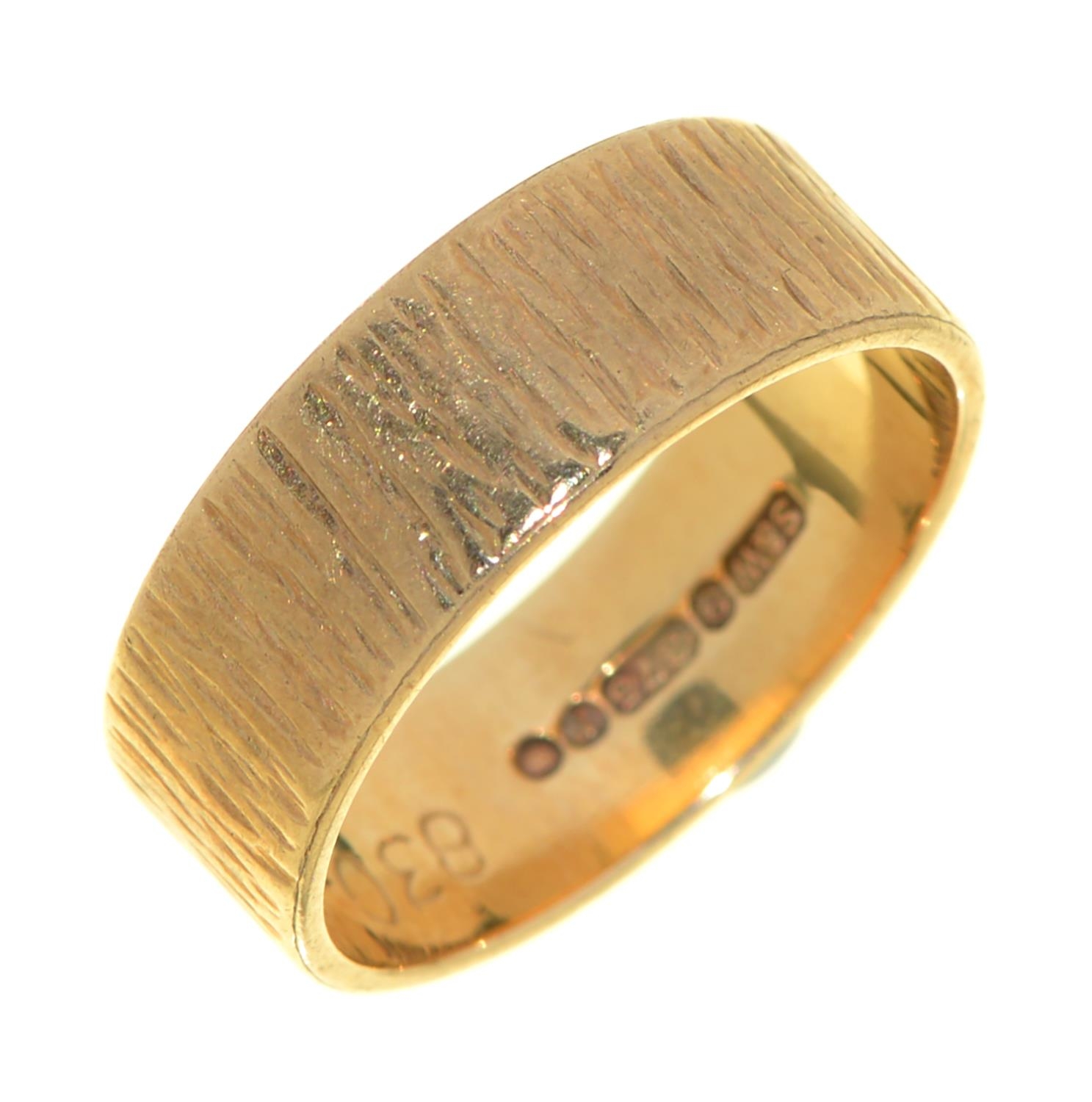 A 9ct gold wedding band, bark textured, London 1972, 4g, size M
