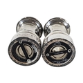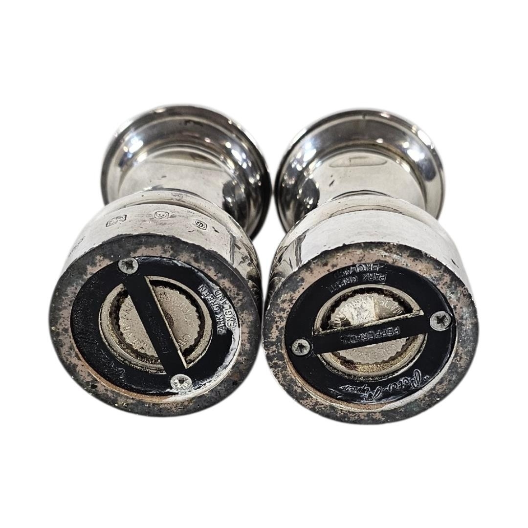 A PAIR OF 20TH CENTURY SILVER PEPPER MILLS