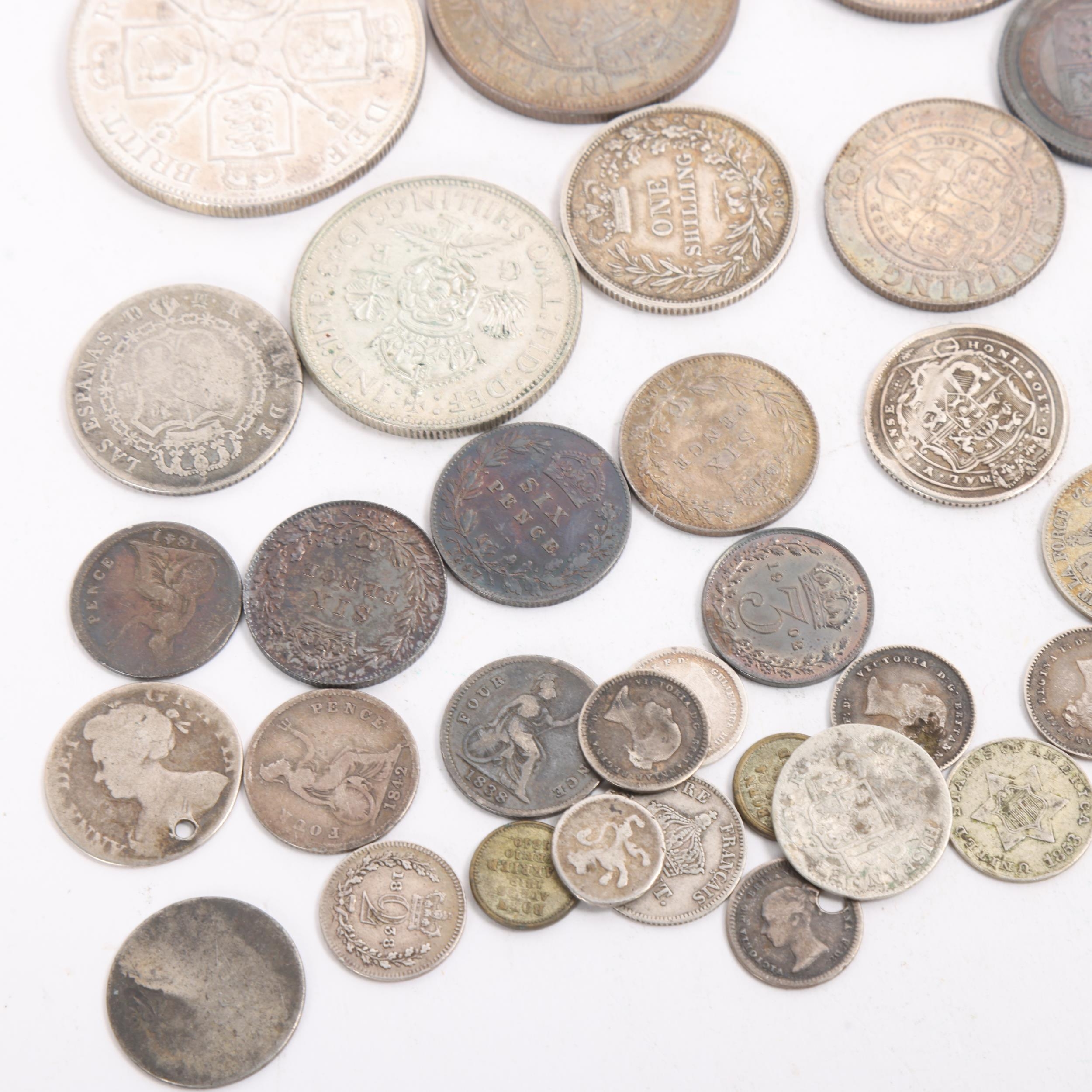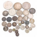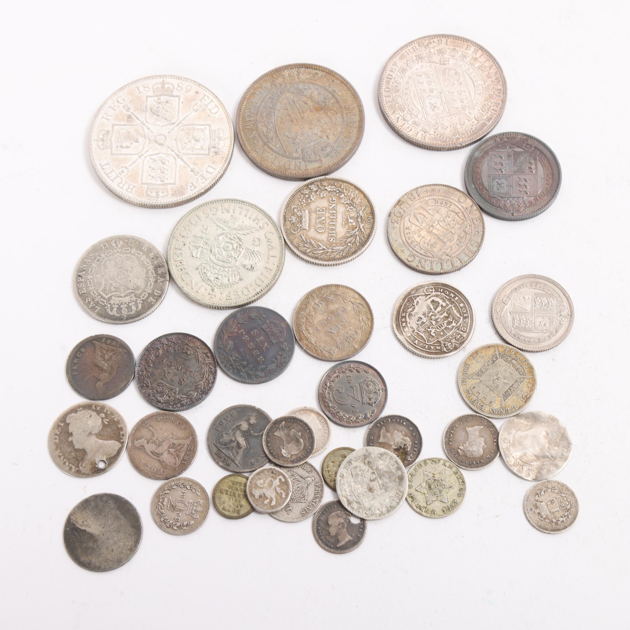 A collection of Victorian and later British silver coins, including 1889 Crown, 1888 & 1896 Half-Crowns, 1869 & 1893 Shllings, etc, 122.5g