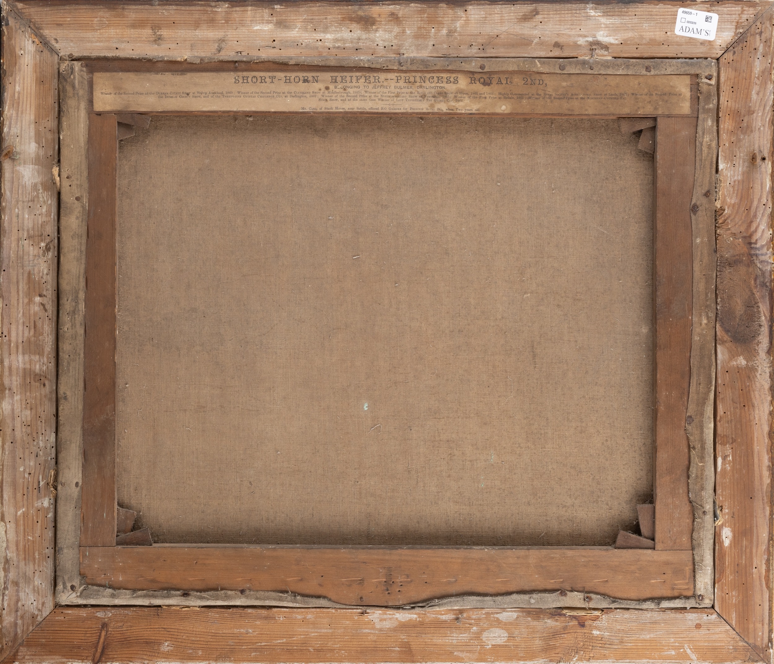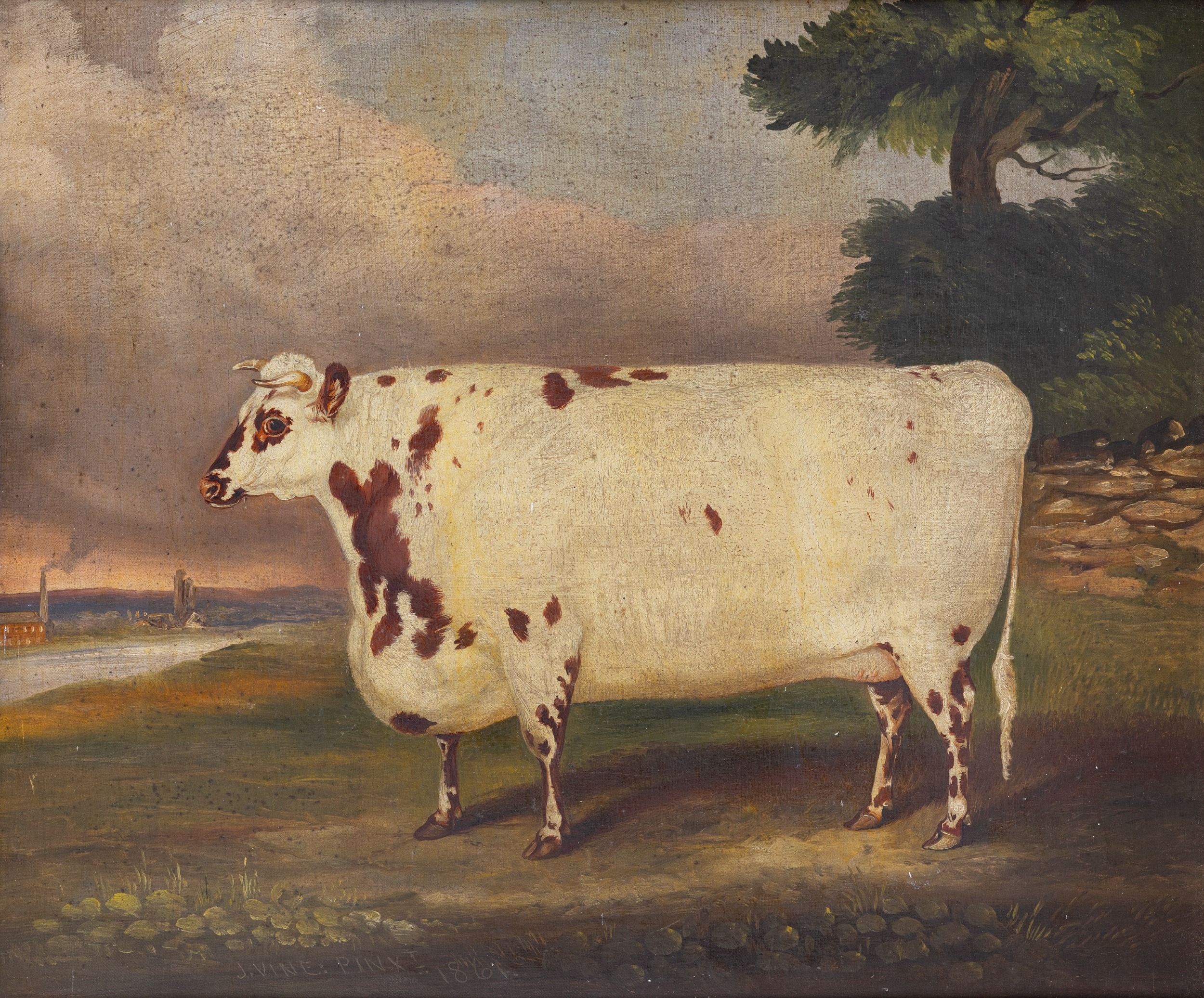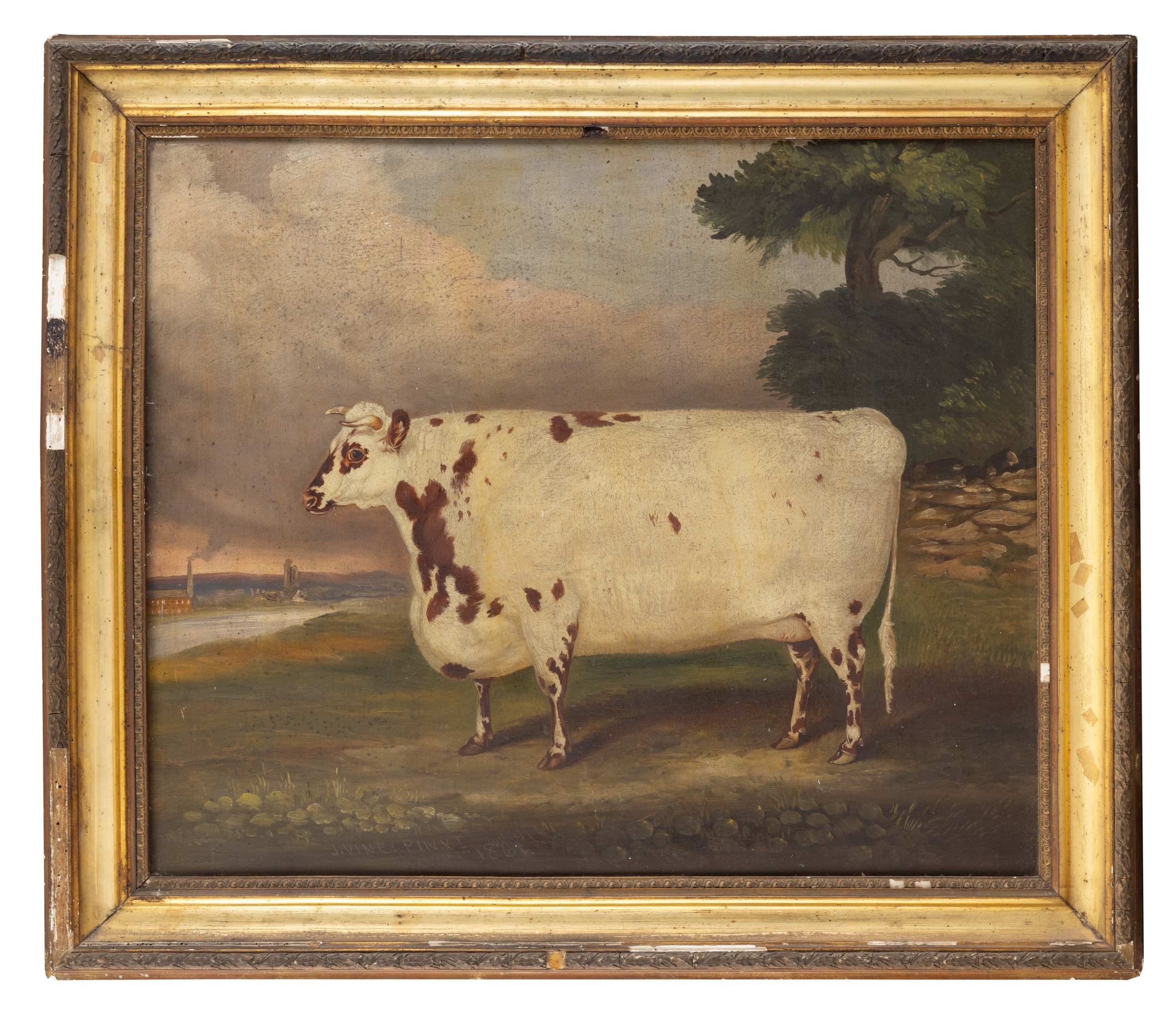 ATTRIBUTED TO JOHN VINE OF COLCHESTER (BRITISH, 1809-1867) Prize Heifer Oil on canvas, 51 X 60cm Signed and dated 'J.Vine pinxt, 1861' With typed paper slip verso 'SHORT-HORN HEIFER,--PRINCESS ROYAL, 2ND, BELONGING TO JEFFREY BULMER, DARLINGTON...'