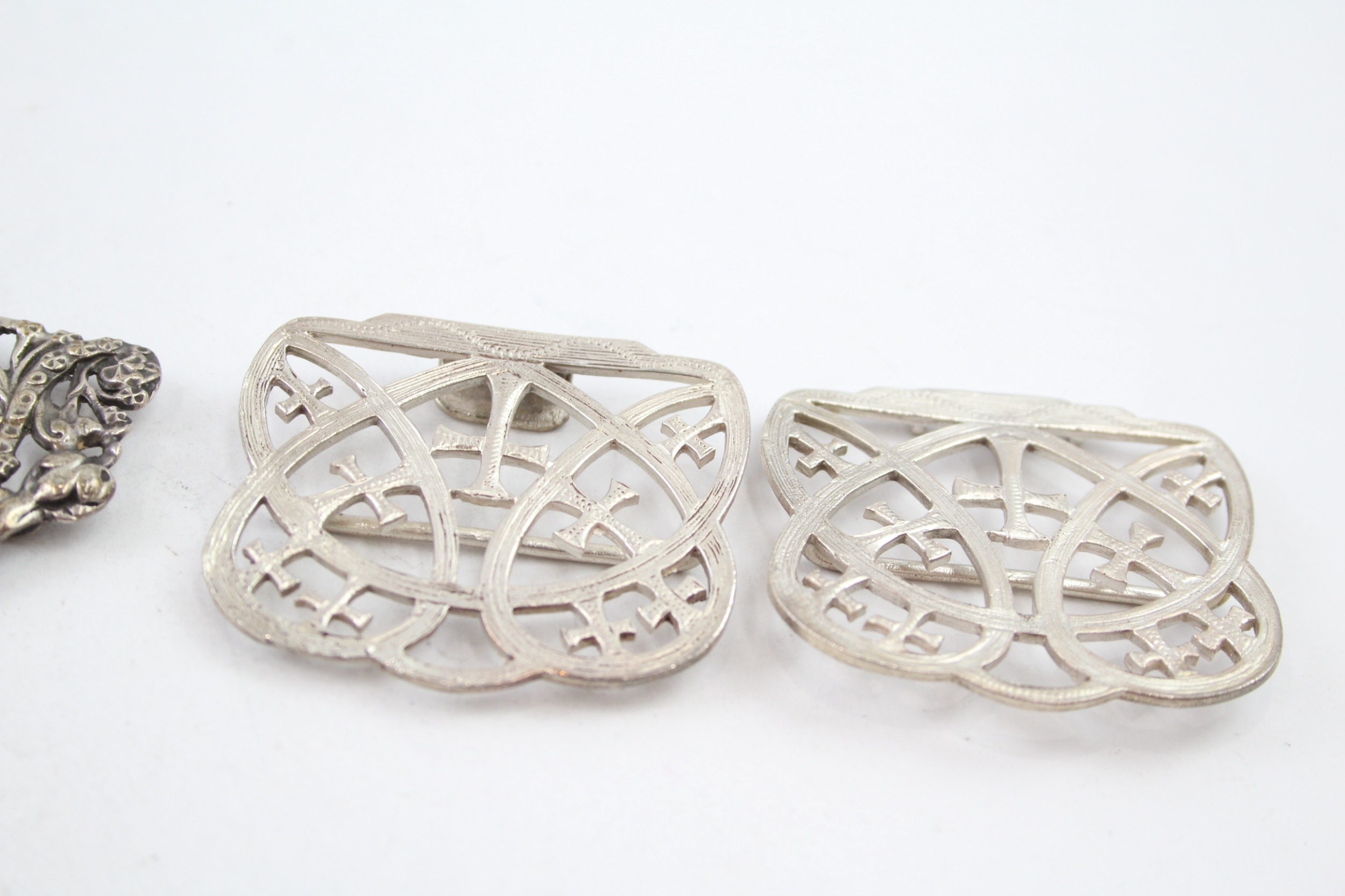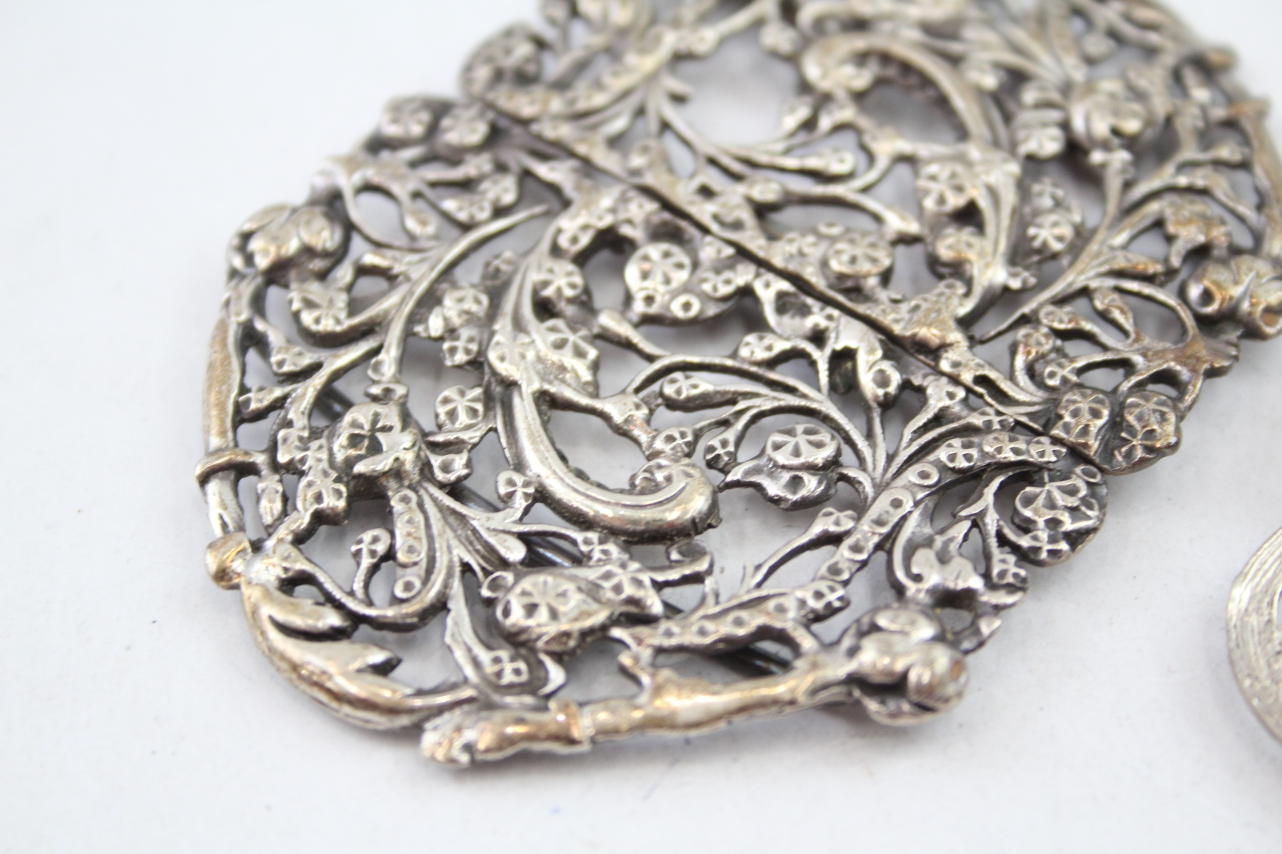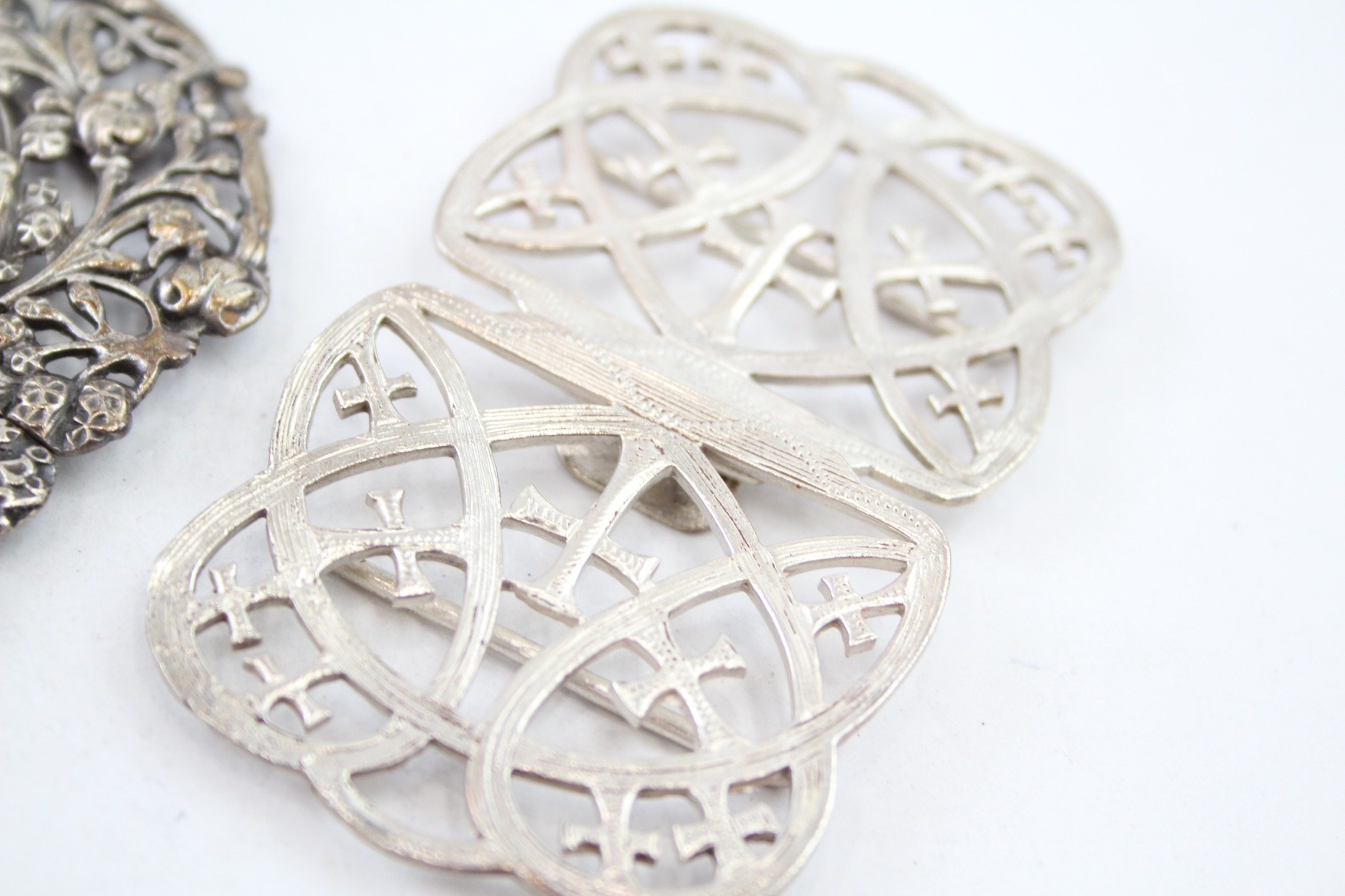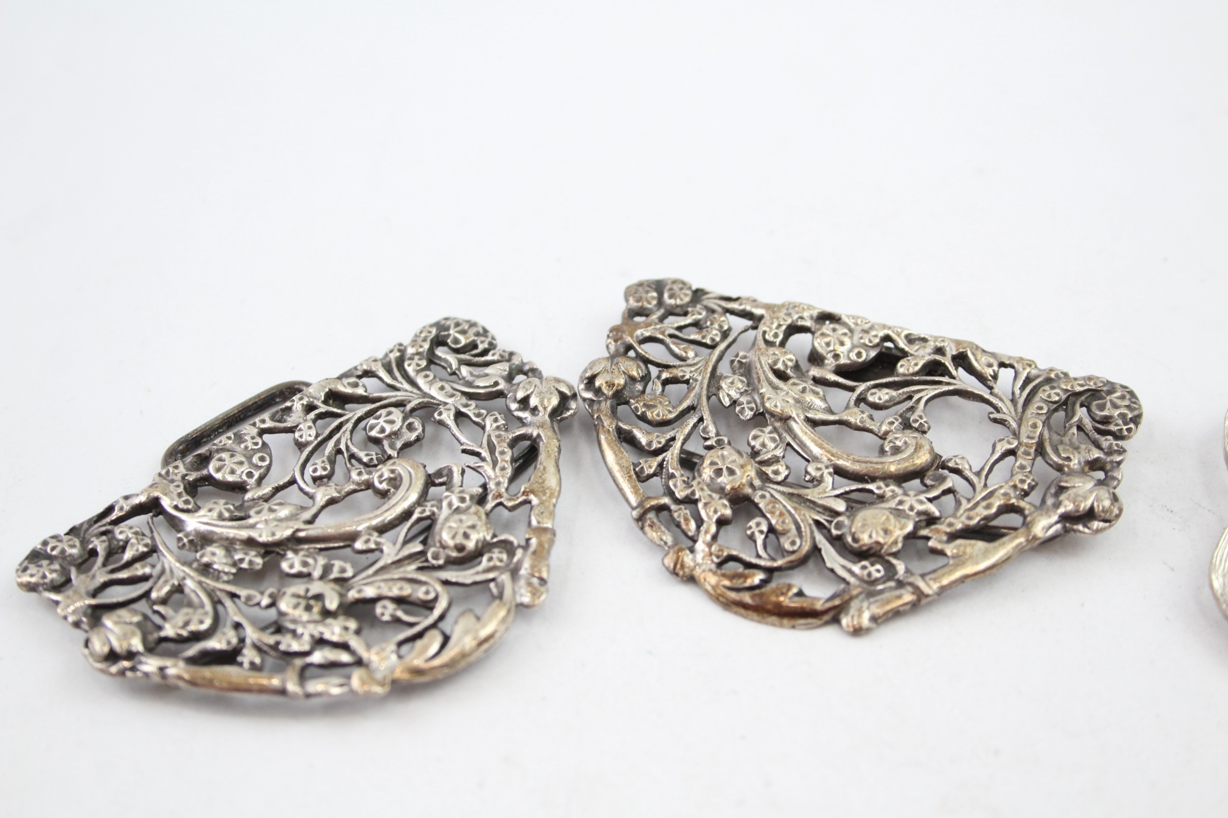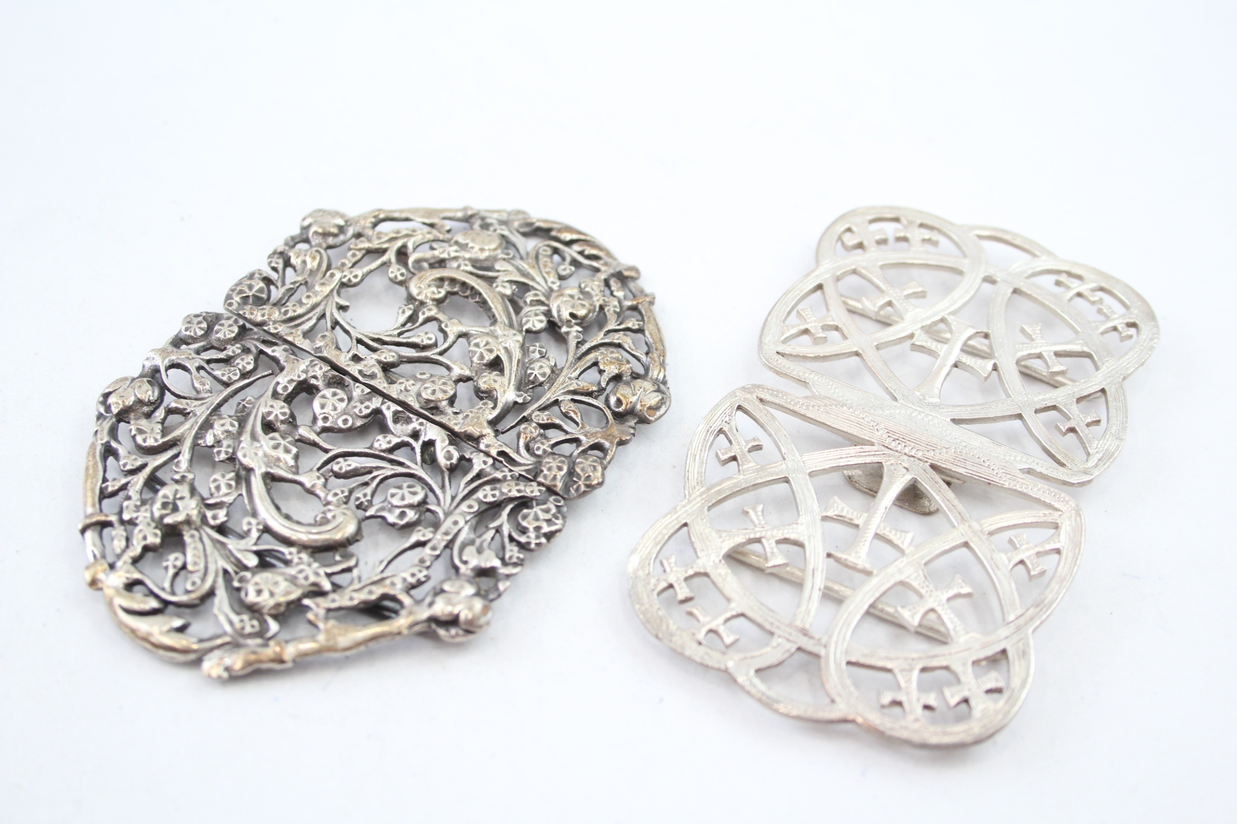 2 x Antique / Vintage .925 Sterling Silver Ladies Vanity Belt Buckles (82g)