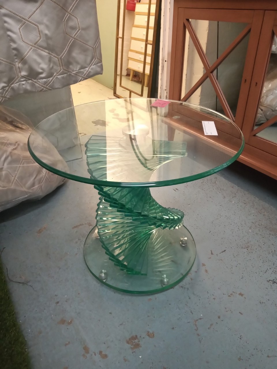 GLASS HELIX SIDE TABLE, 60cm Diam x 52cm H.