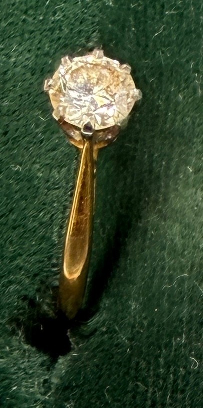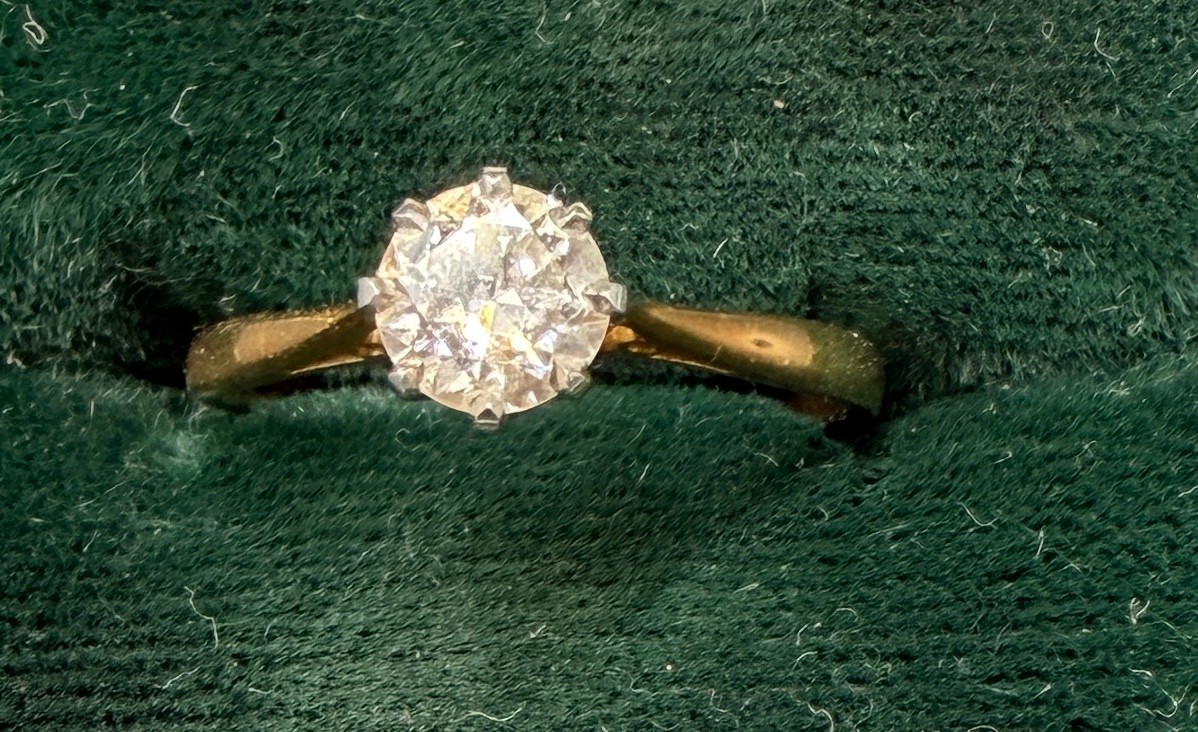 A solitaire diamond ring set in 18 carat gold. Size J. Weight 1.5gm.