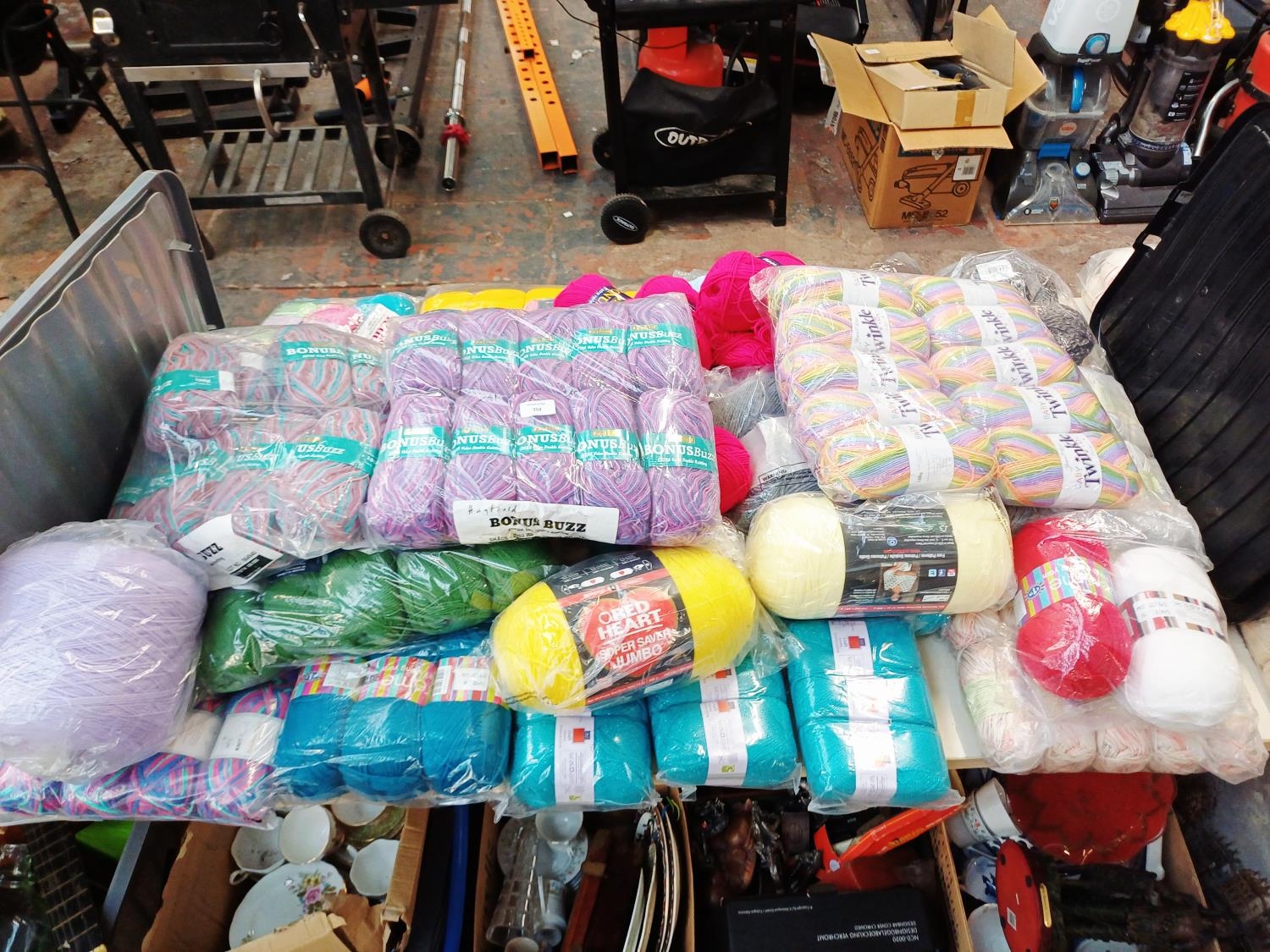A large collection of knitting yarn to include Red Heart 100% acrylic, Stylecraft Life Aran 25% wool, Sirdar 100% cotton etc.