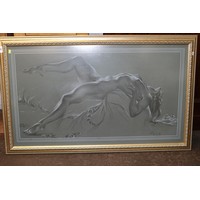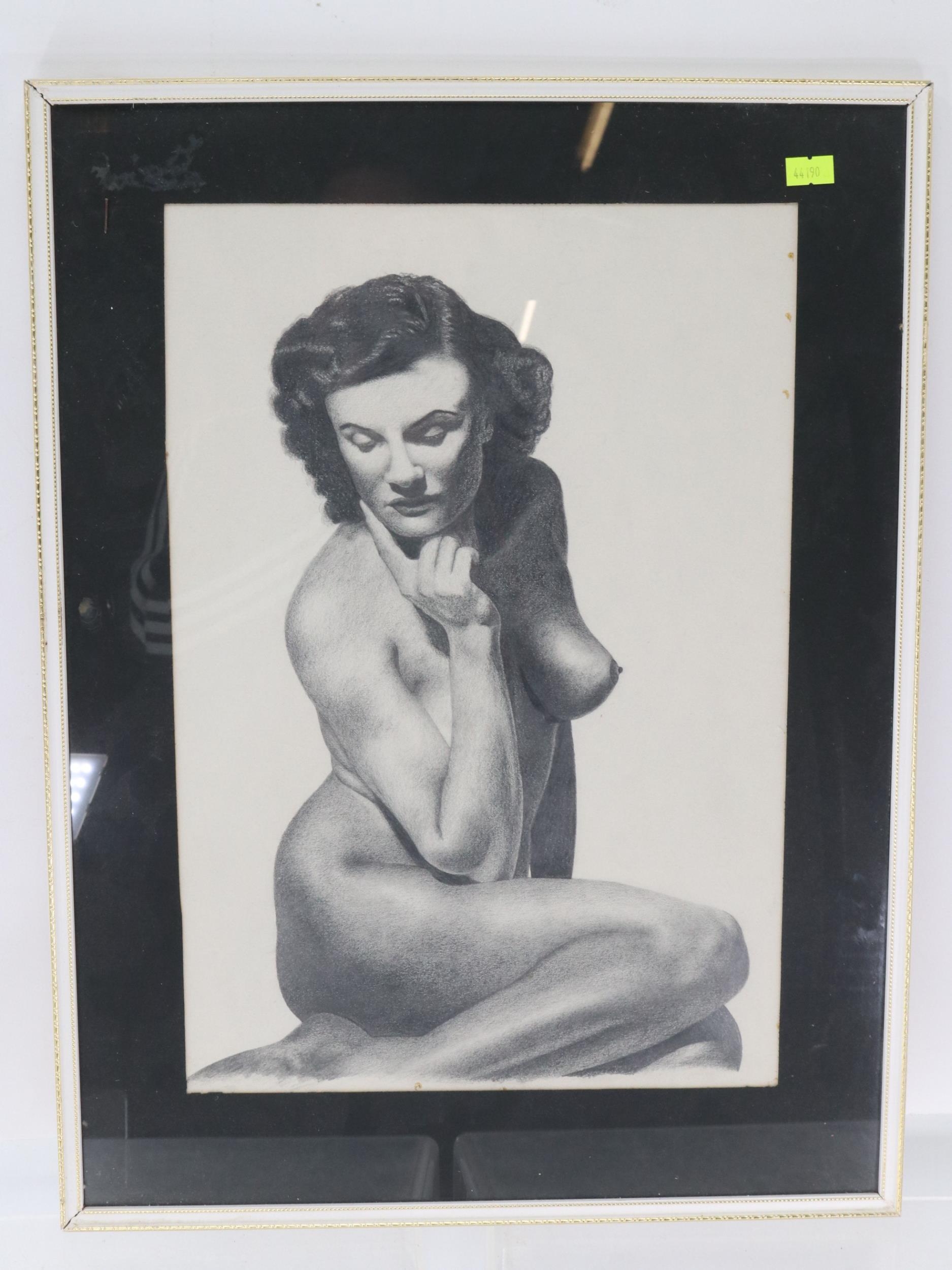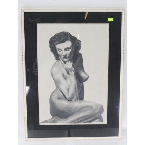 Framed pencil sketch of a nude lady