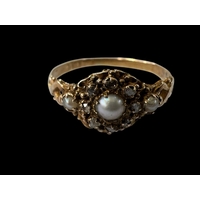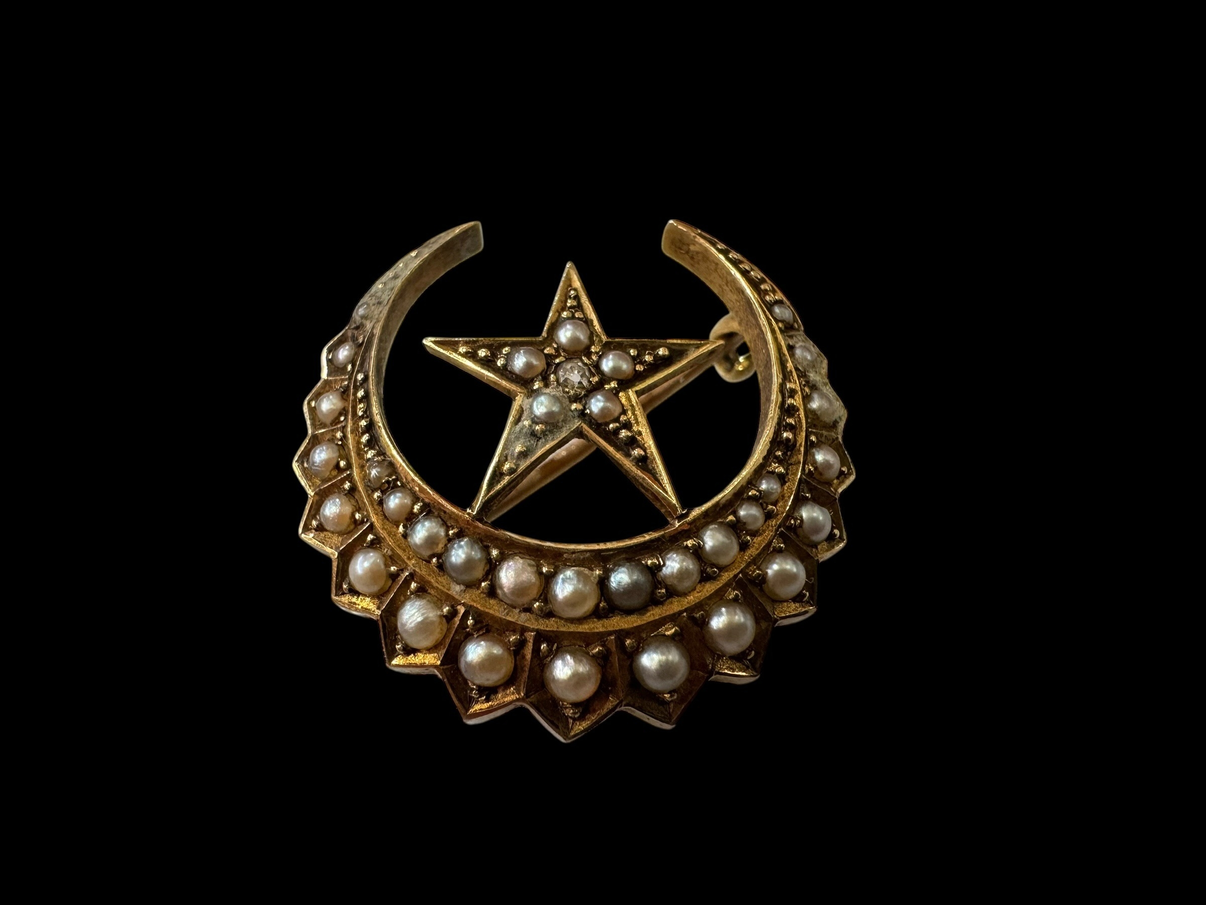 Seed pearl set crescent and star brooch, marked S518, 2.5cm across.