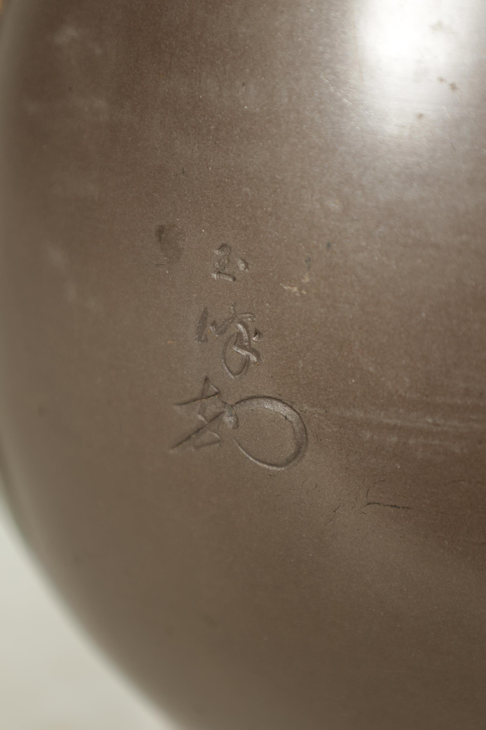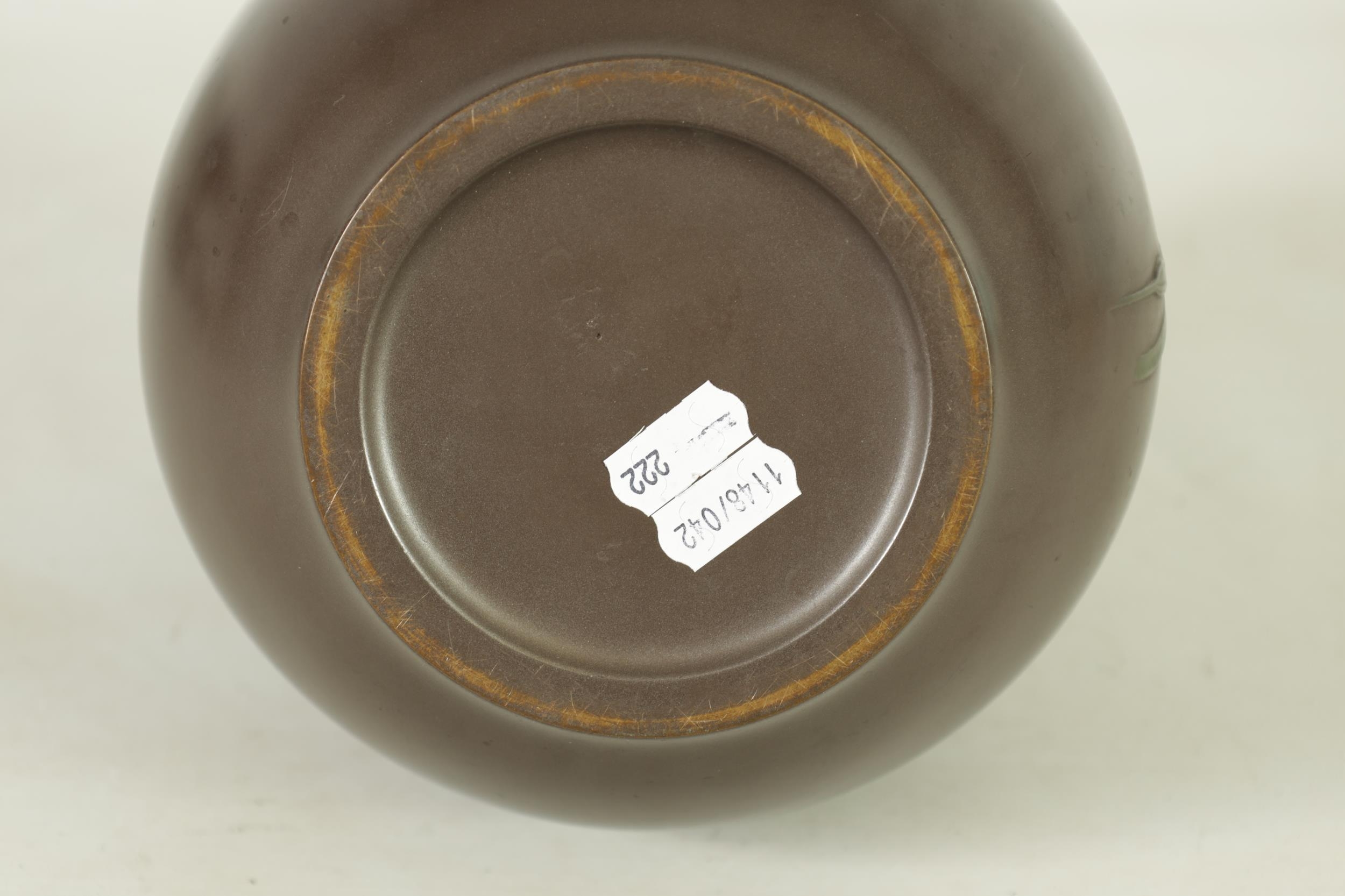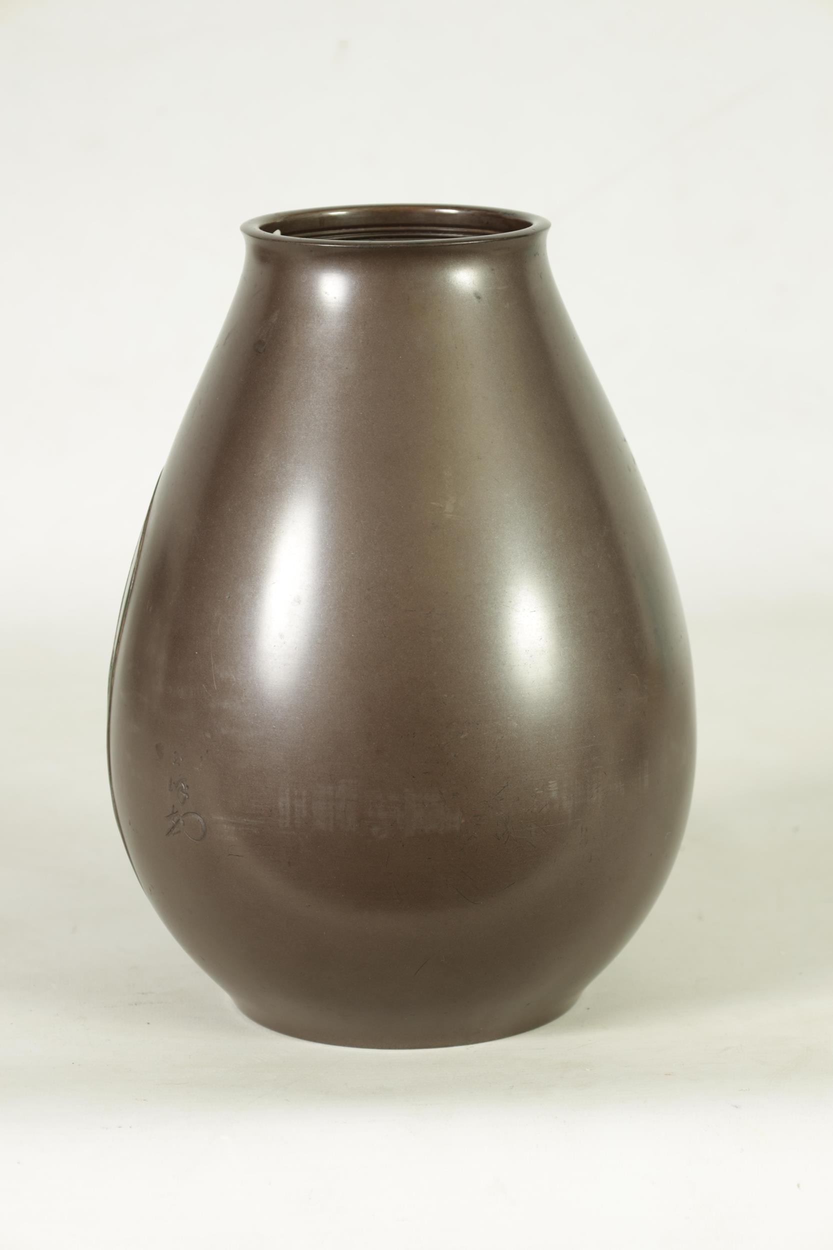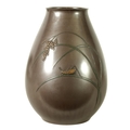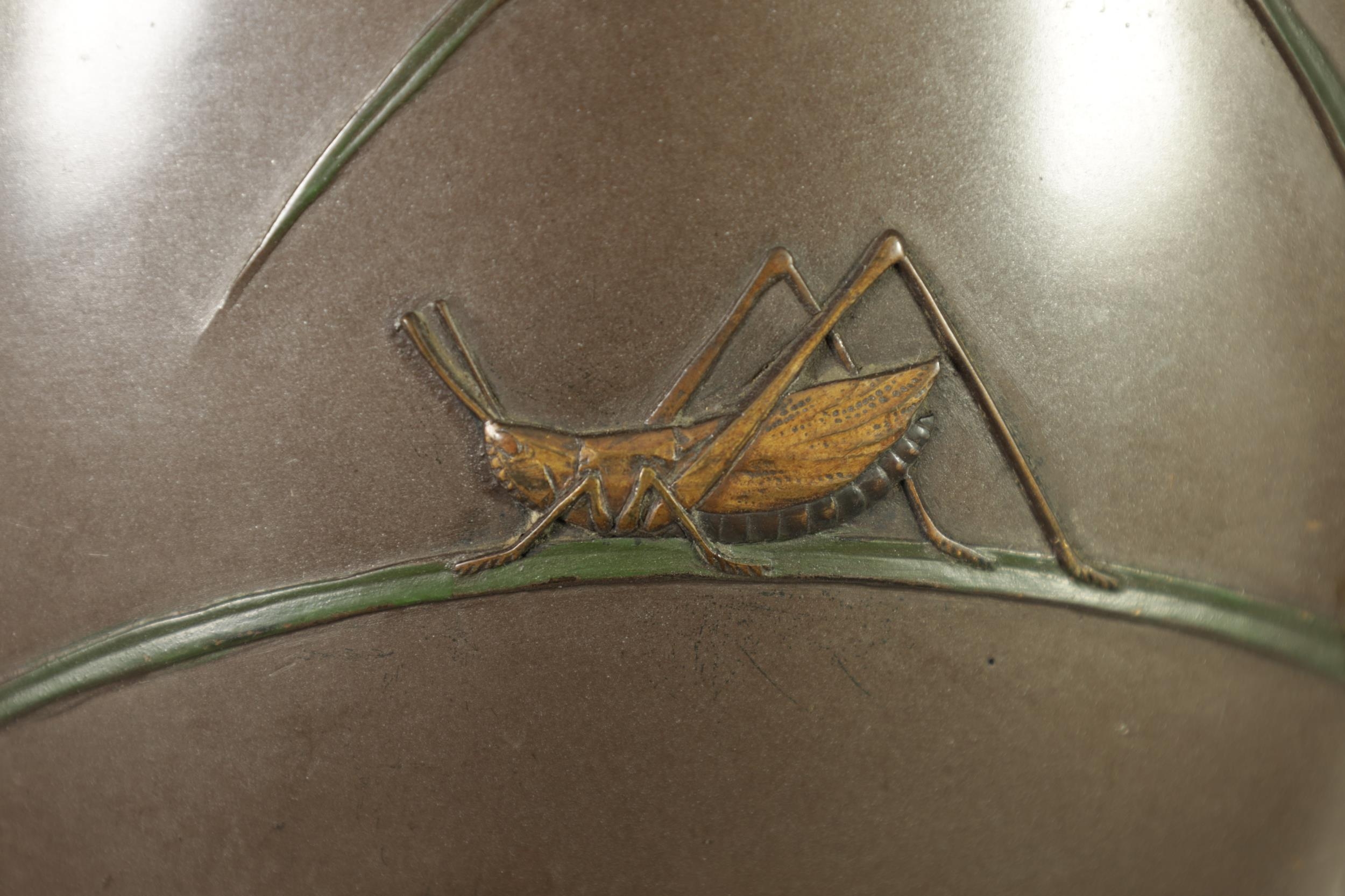 A JAPANESE MEIJI PERIOD BRONZE AND MIXED METAL OVOID VASE with flowering grass and locust decoration - signed to the side. (25cm high )
