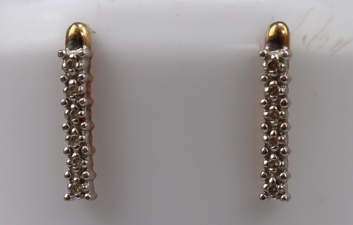 Pair of 9ct gold diamond set drop earrings