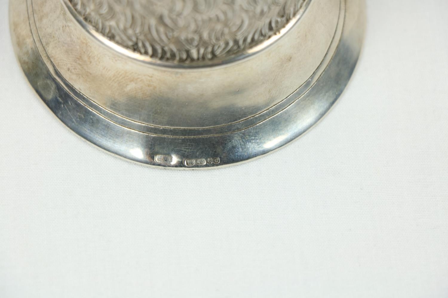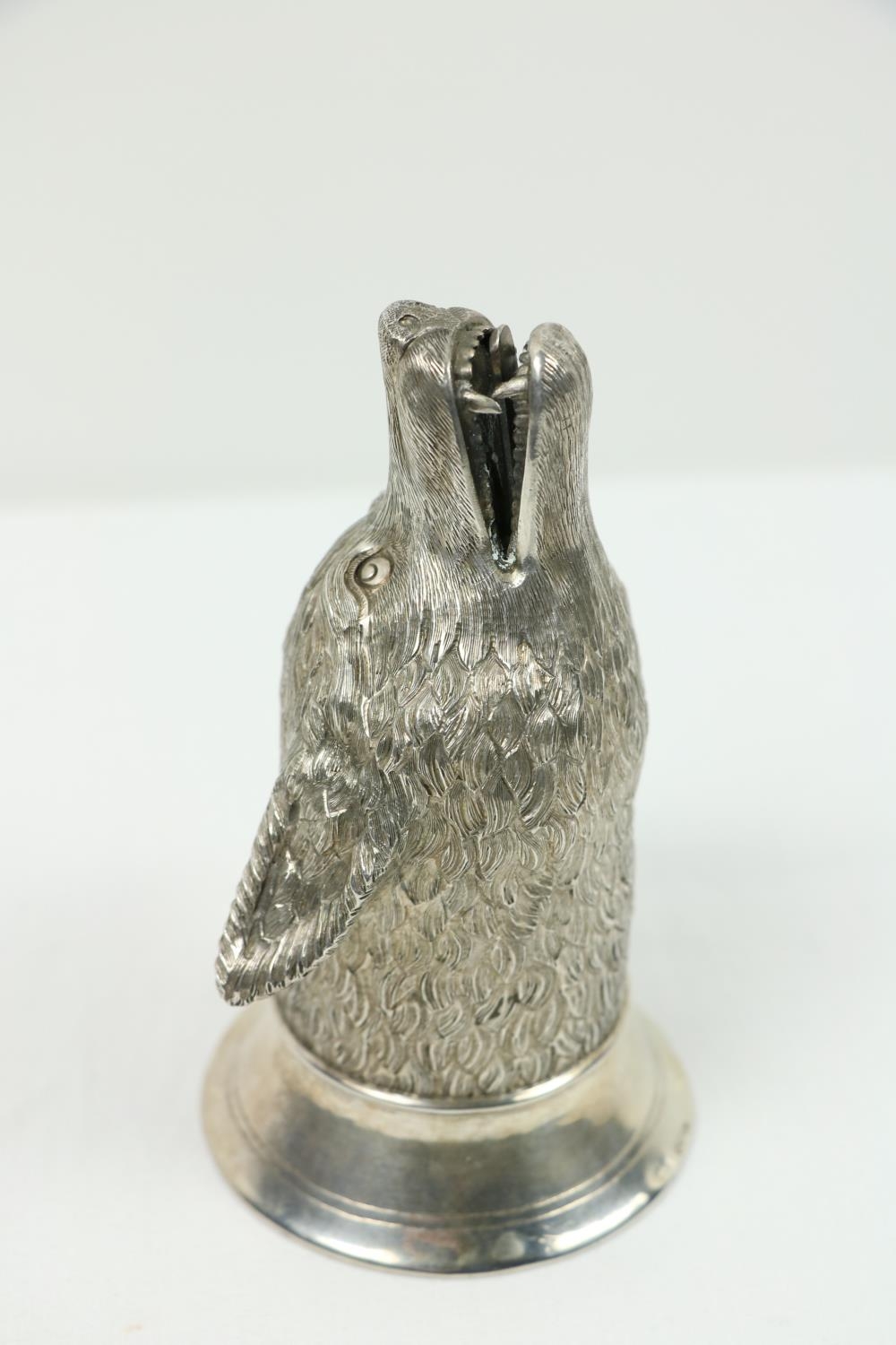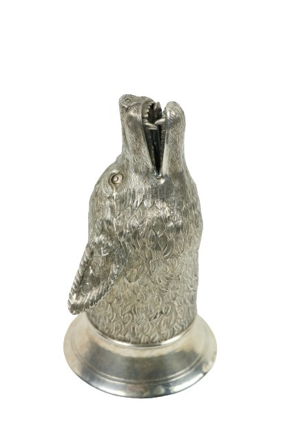 A fine quality silver Stirrup Cup, modelled as a snarling wolf, approx. 266 grams, hall marked London, c. 1959. (1)