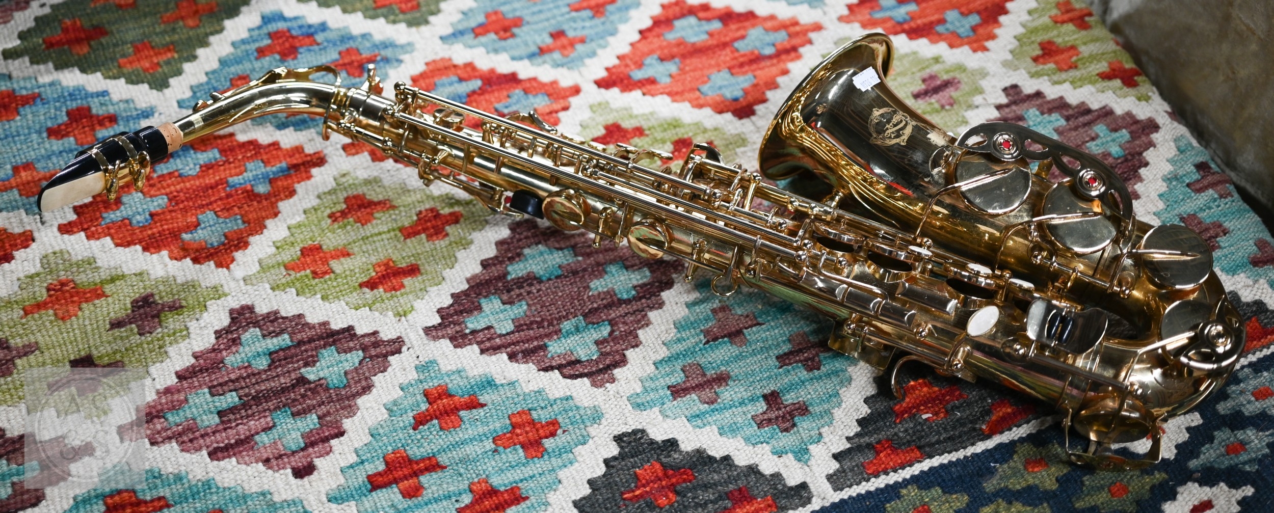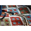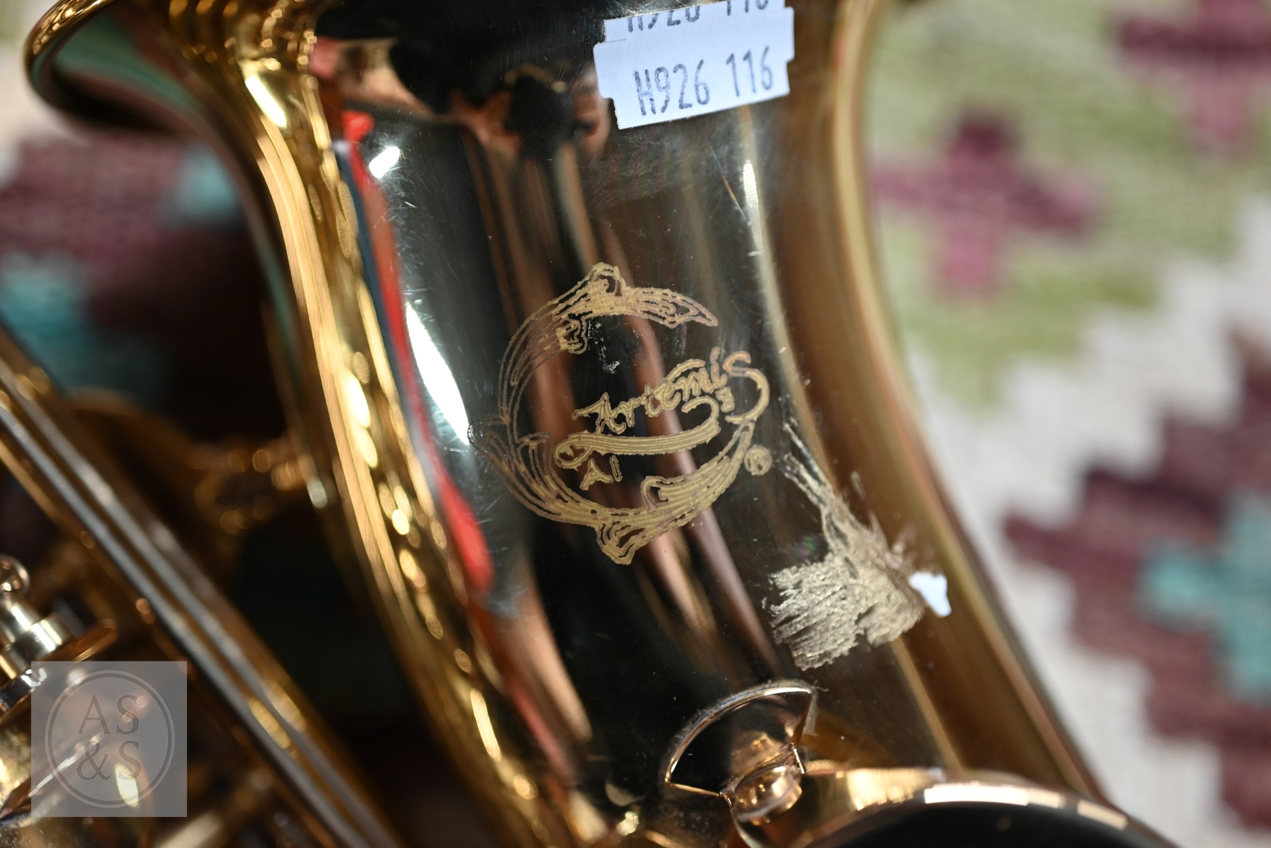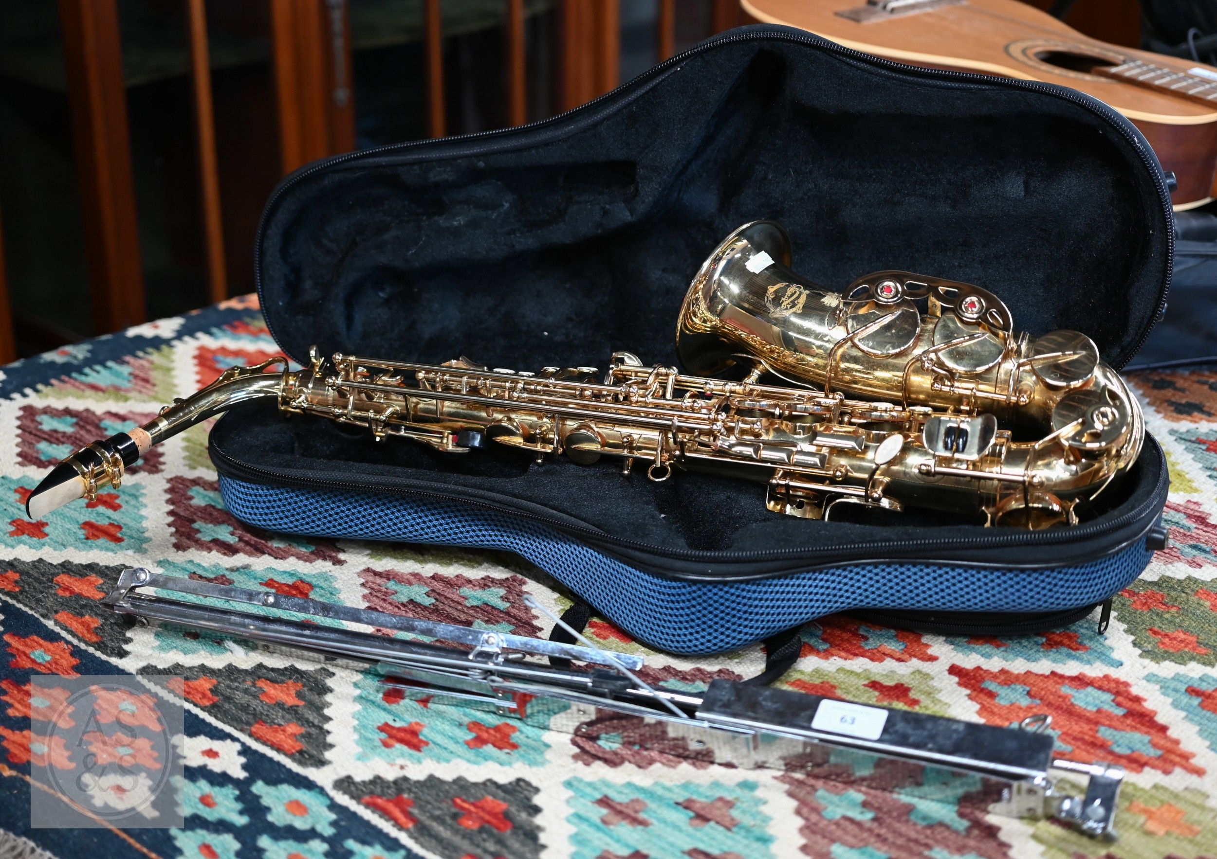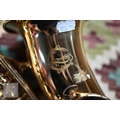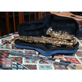 A modern alto Artemis saxophone with Yamaha mouthpiece, in zip transit case to/with a folding music stand, good condition and displaying little use