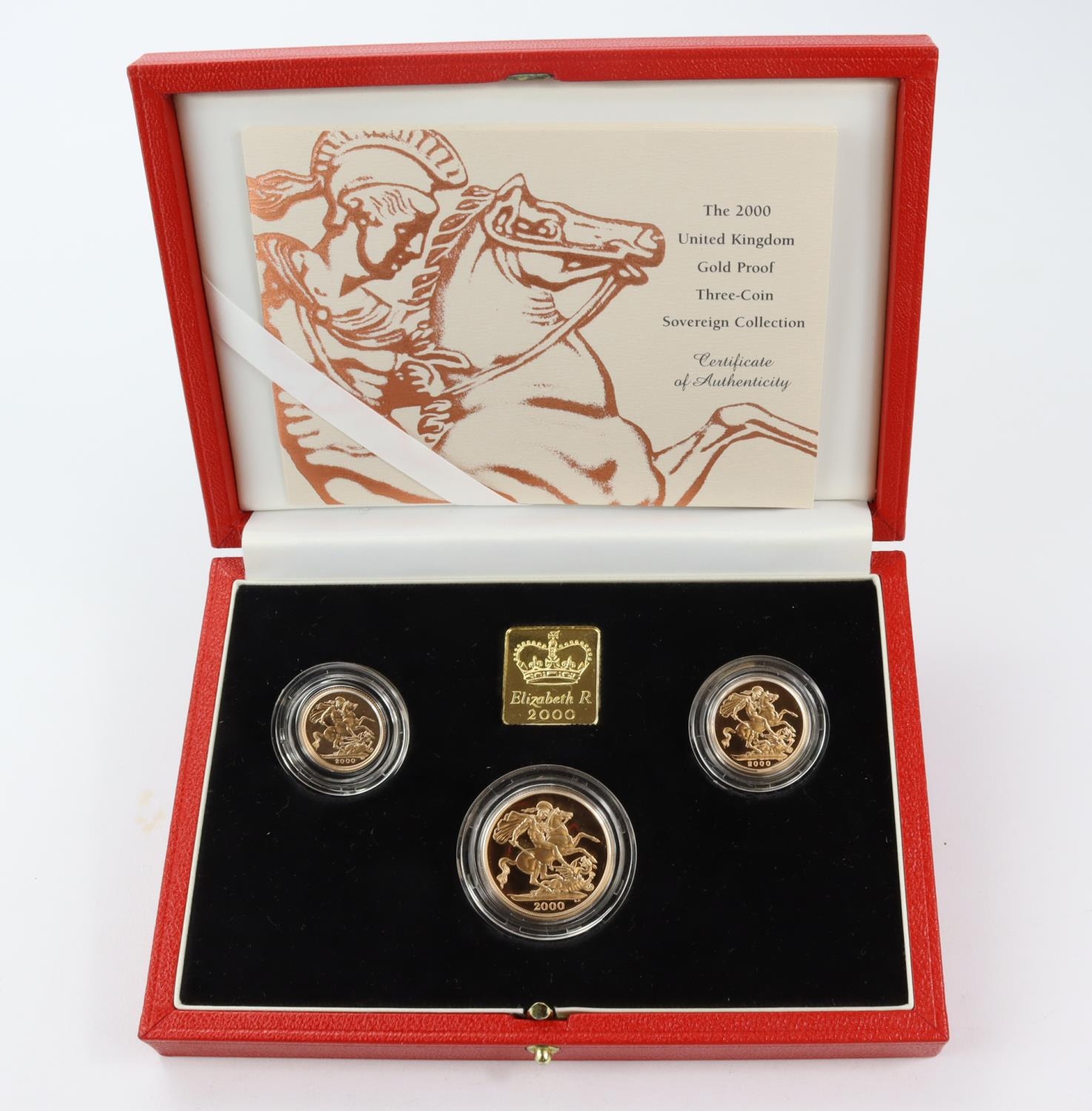Three coin set 2000 (Two Pounds, Sovereign & Half Sovereign) Proof FDC boxed as issued