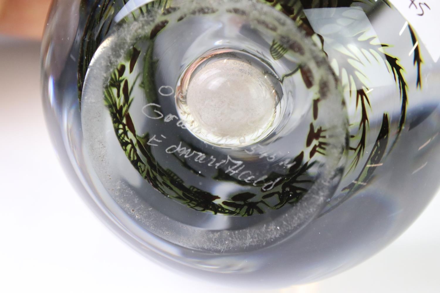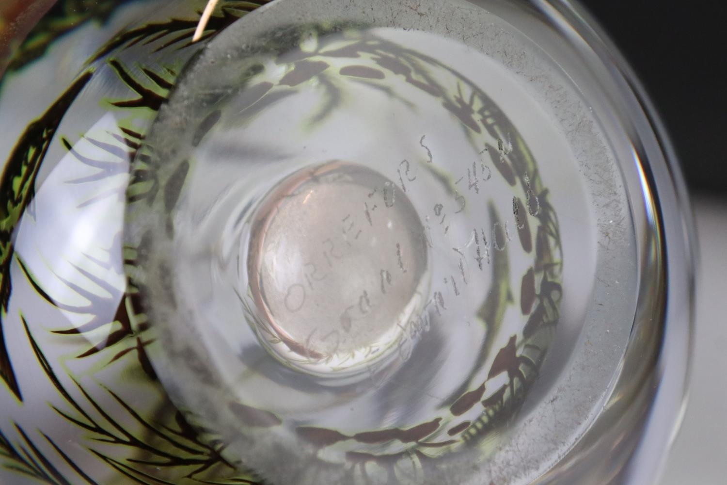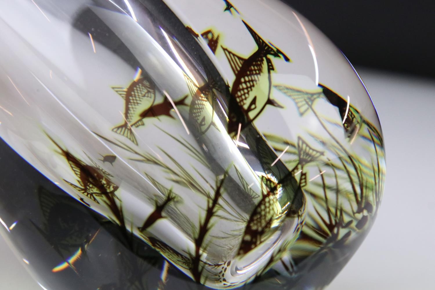 Orrefors clear glass vase by Edvard Hald with fish swimming amongst weed, signed and numbered 545M, 17cm high