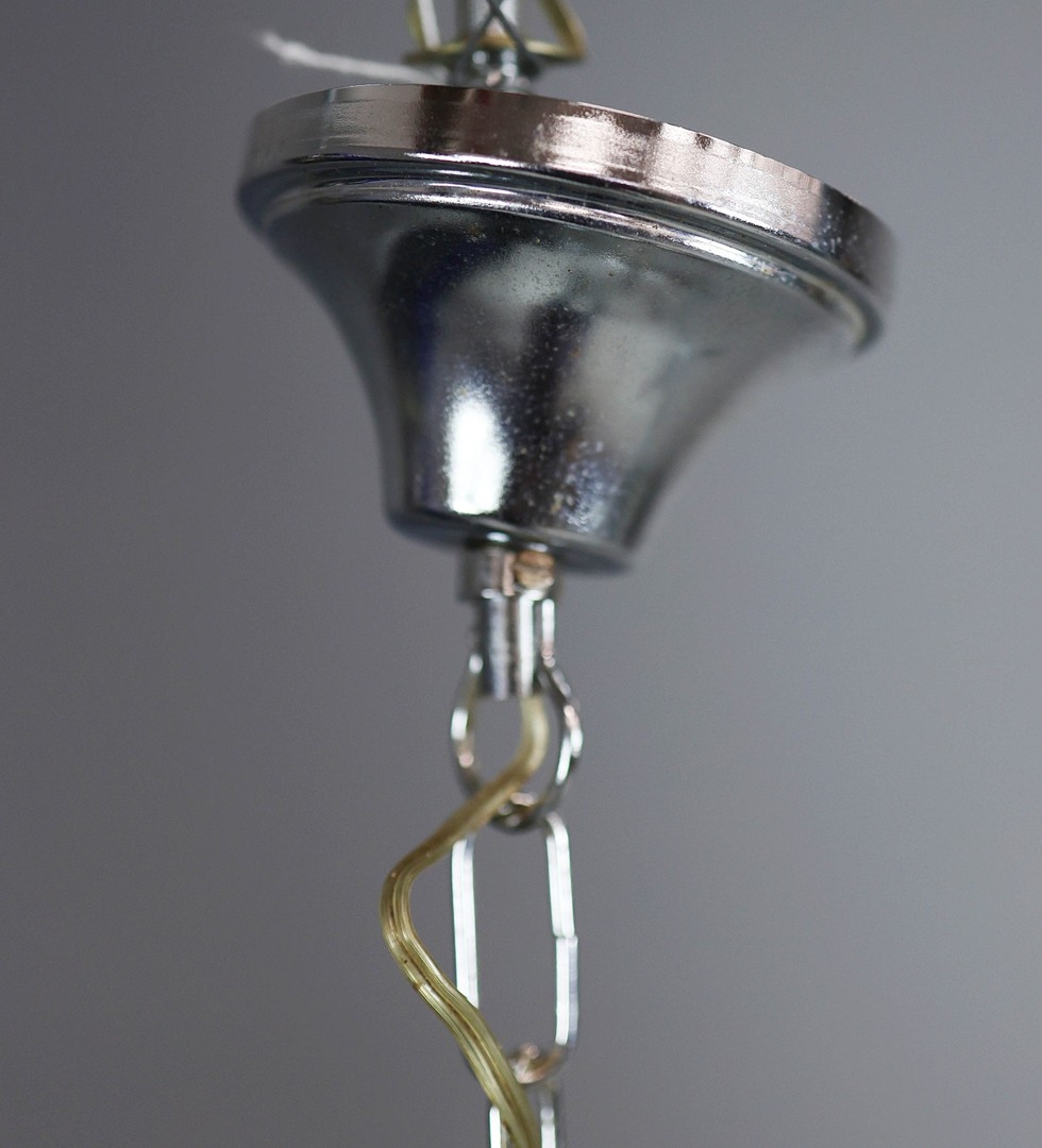 1970s ITALIAN MEZZEGA PENDANT LIGHT IN CHROME AND SHAPED WOO...
