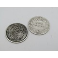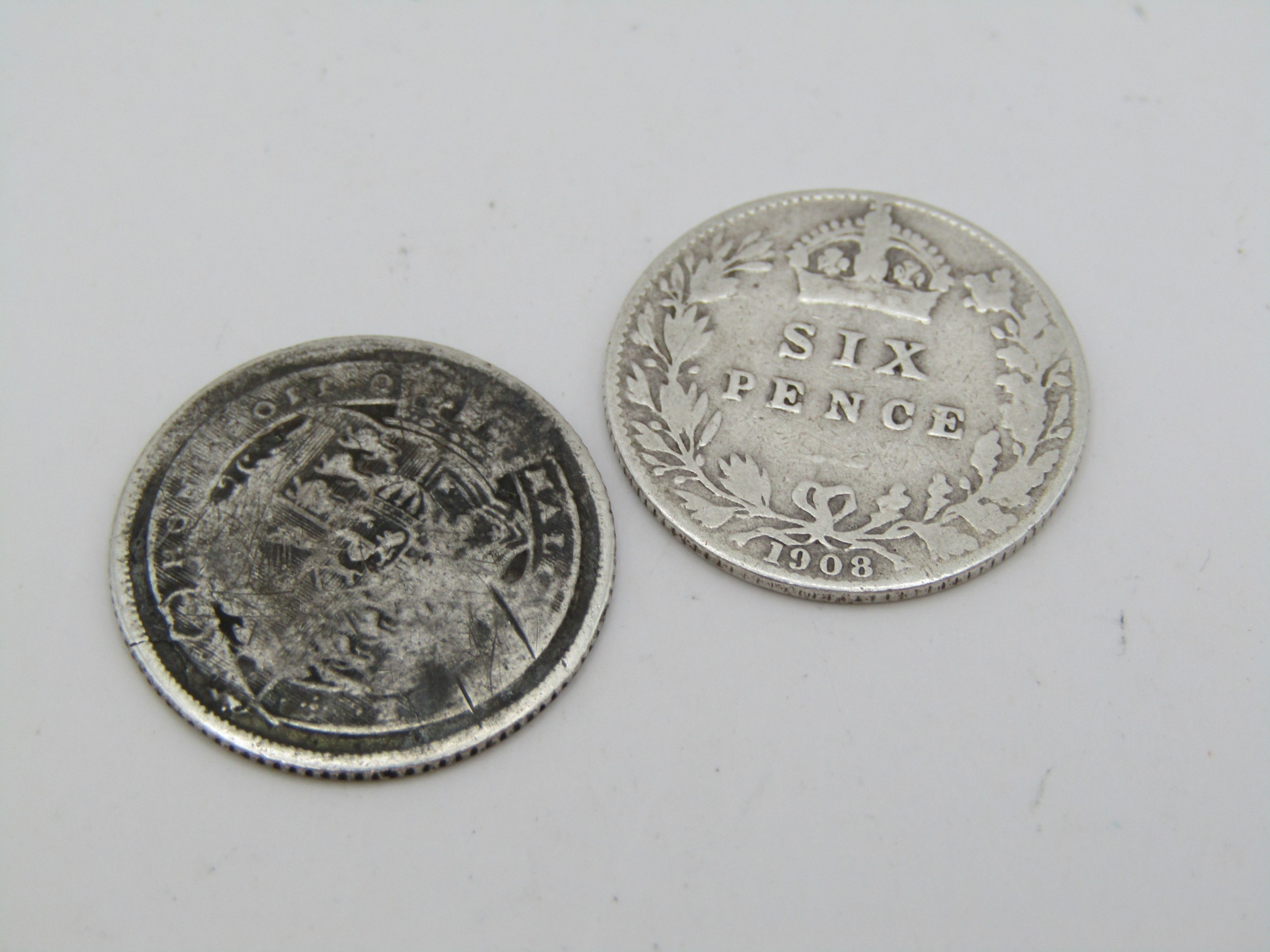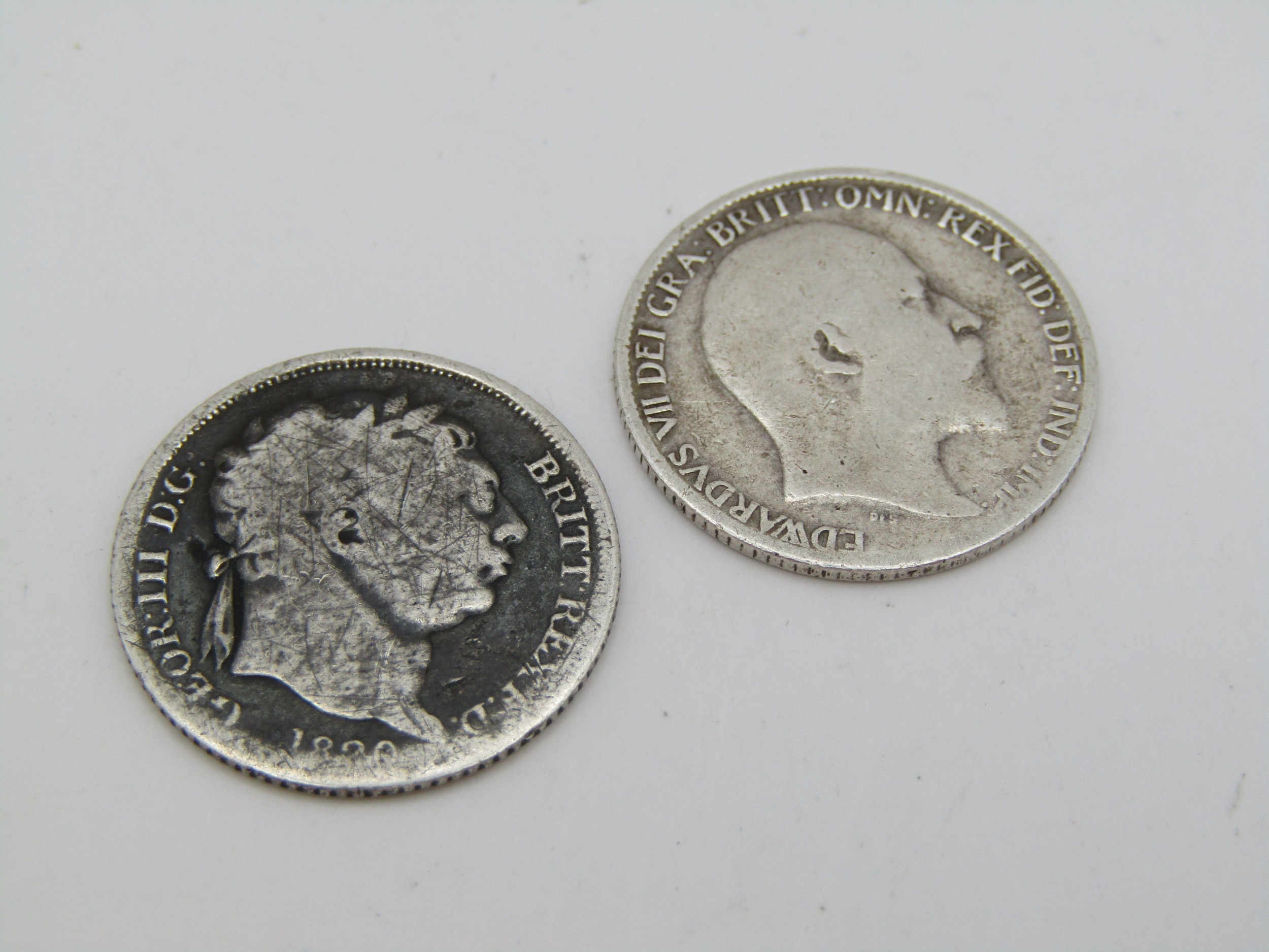 1820 George III Sixpence 925 silver.1908 Edward VII Sixpence 925 silver.