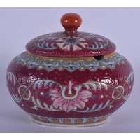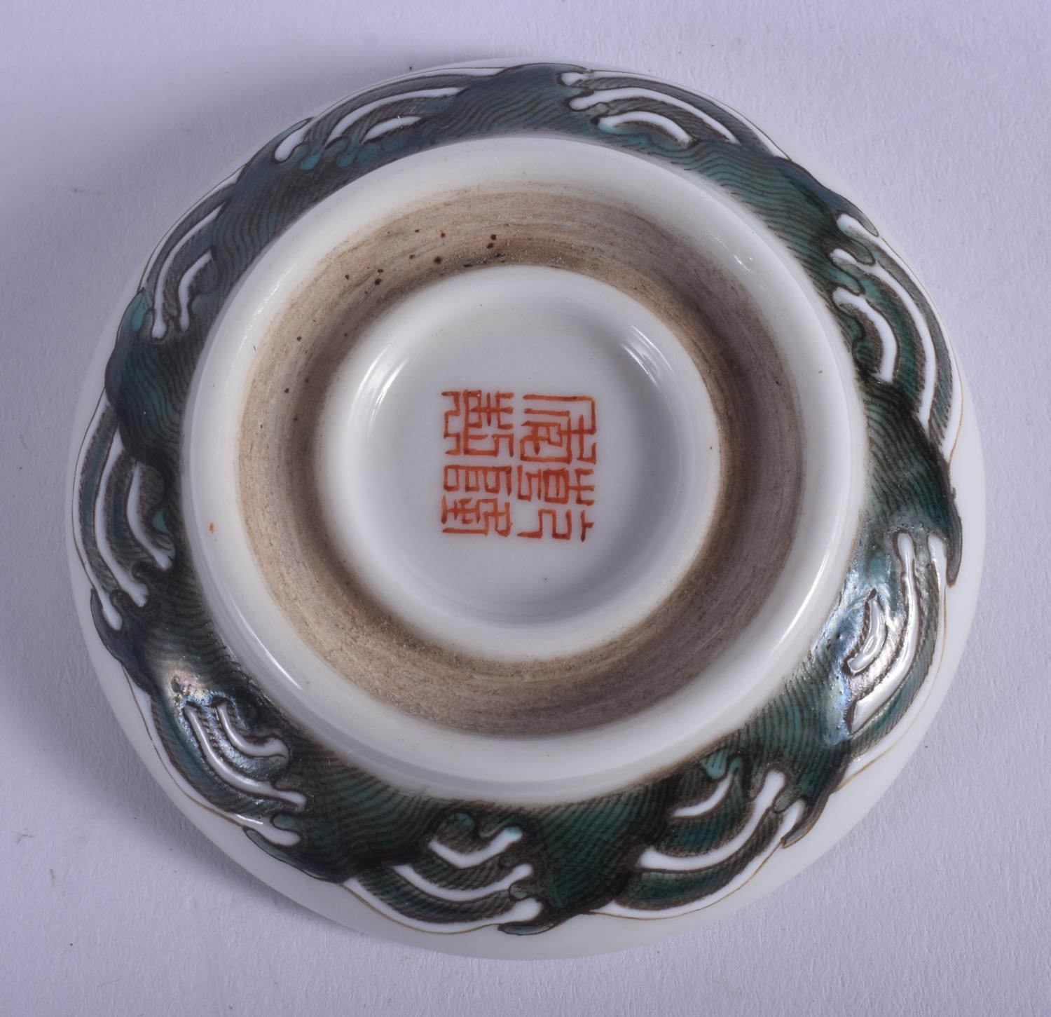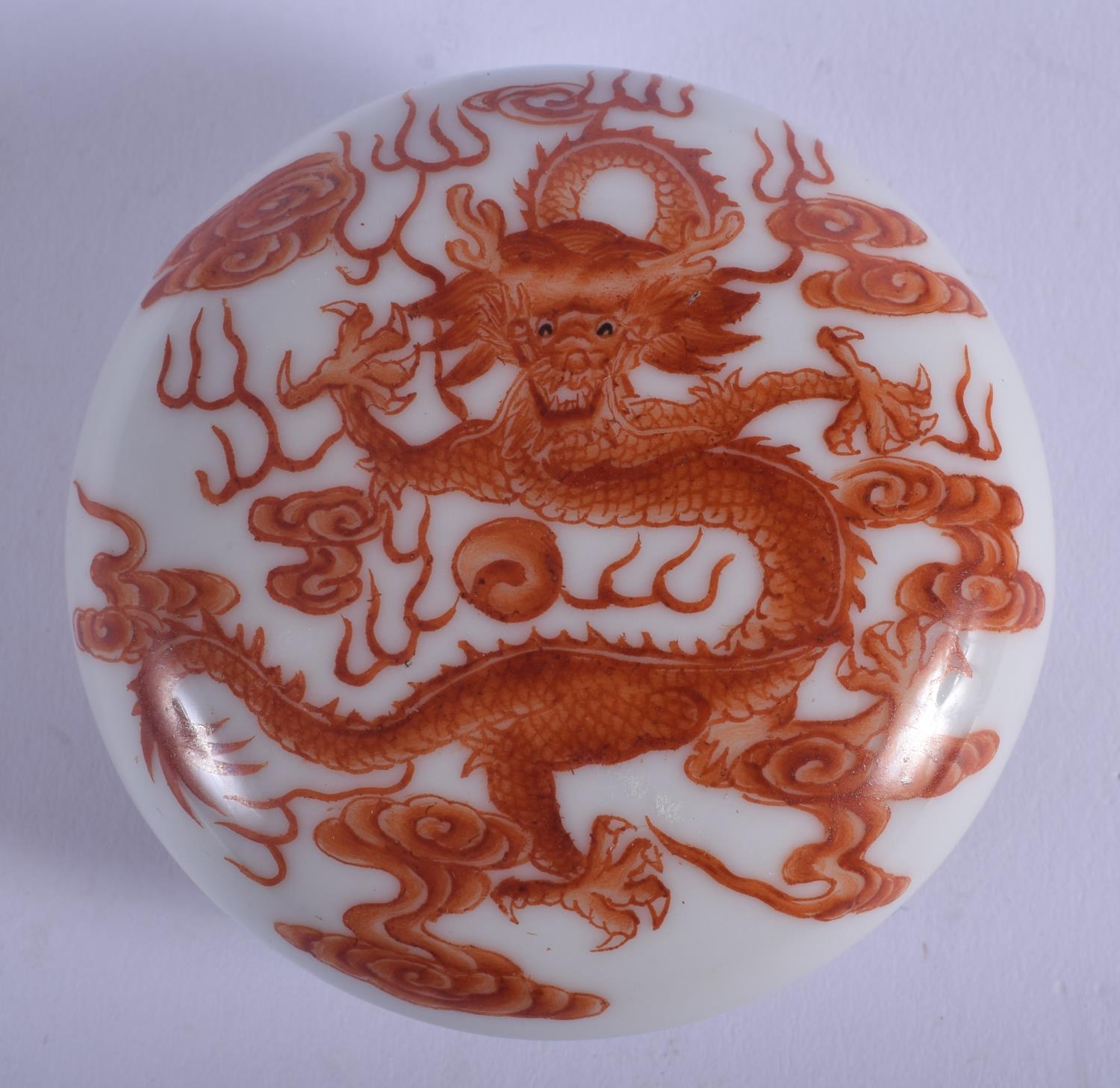 AN EARLY 20TH CENTURY CHINESE PORCELAIN BOX AND COVER Late Qing, painted with dragons. 6.5 cm diameter.