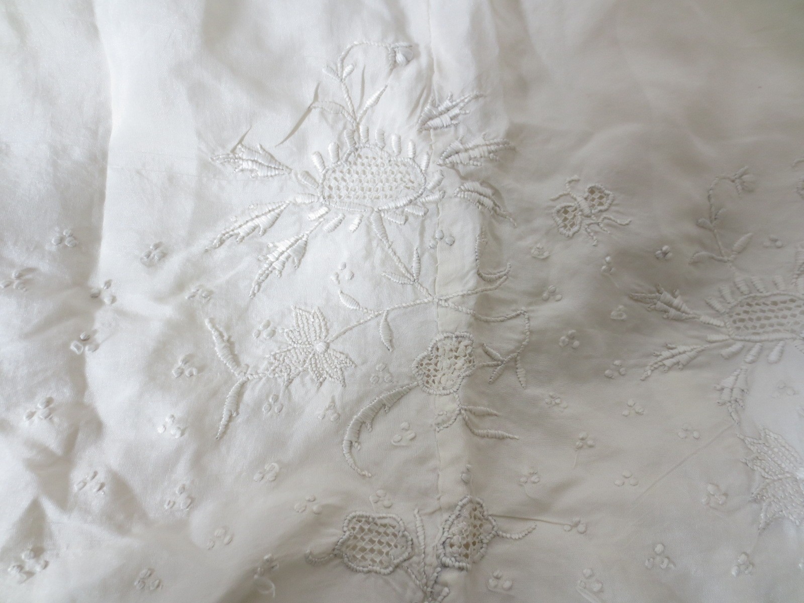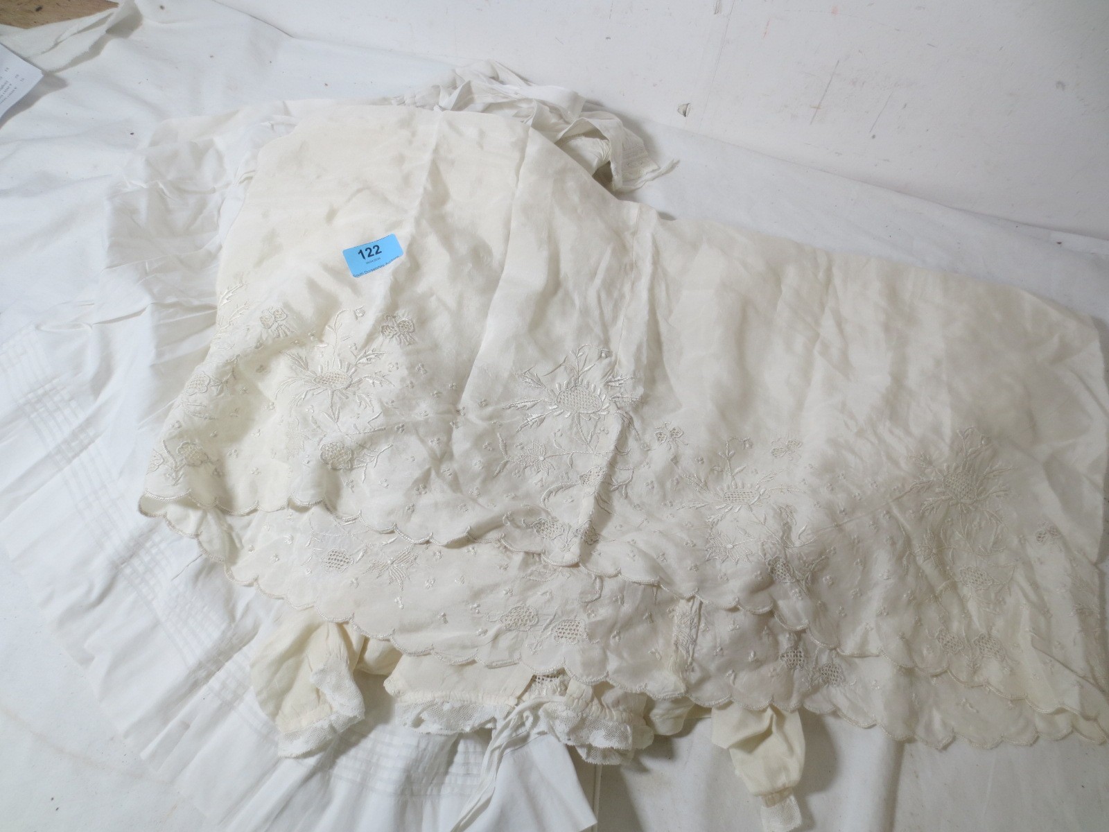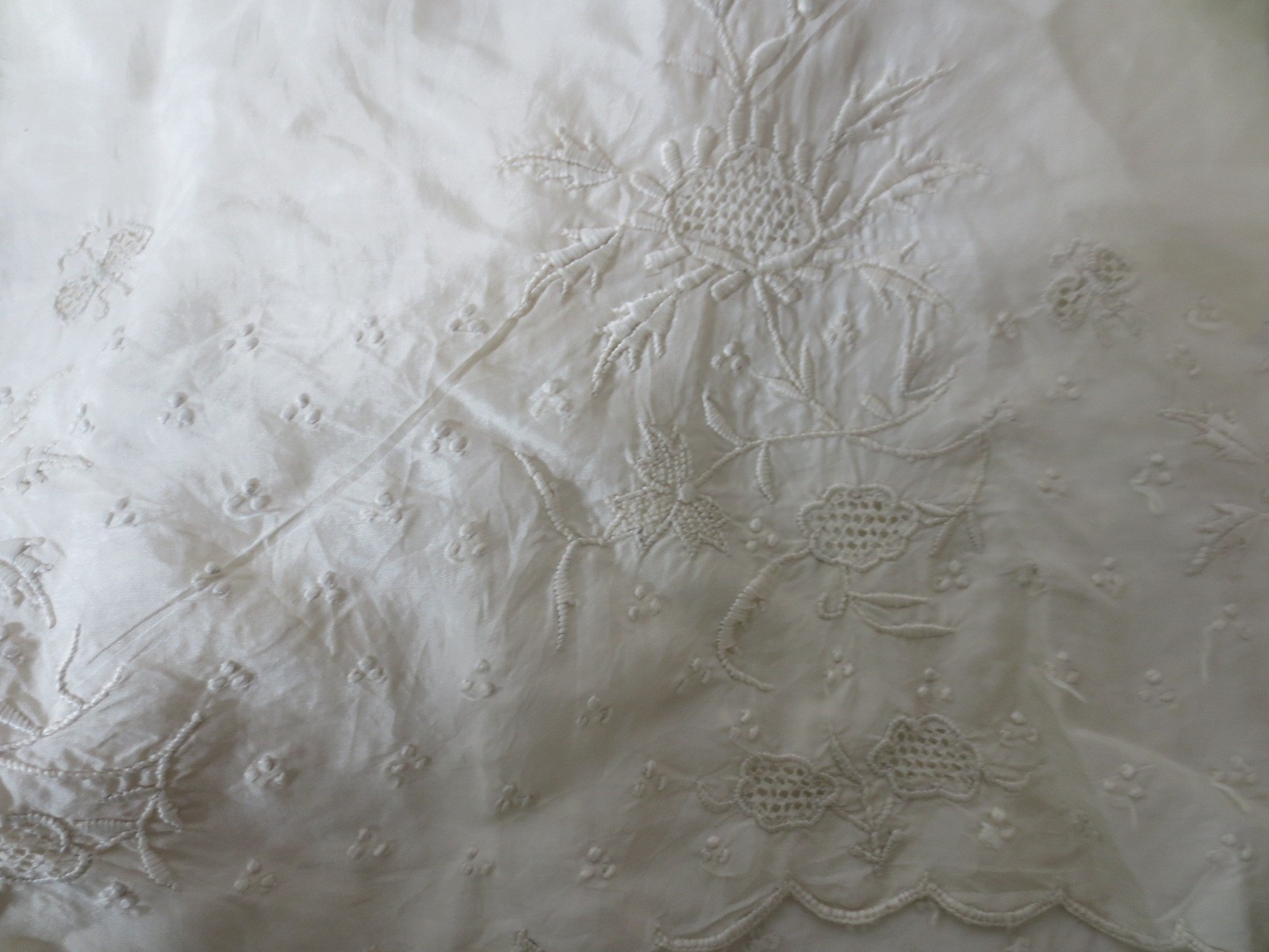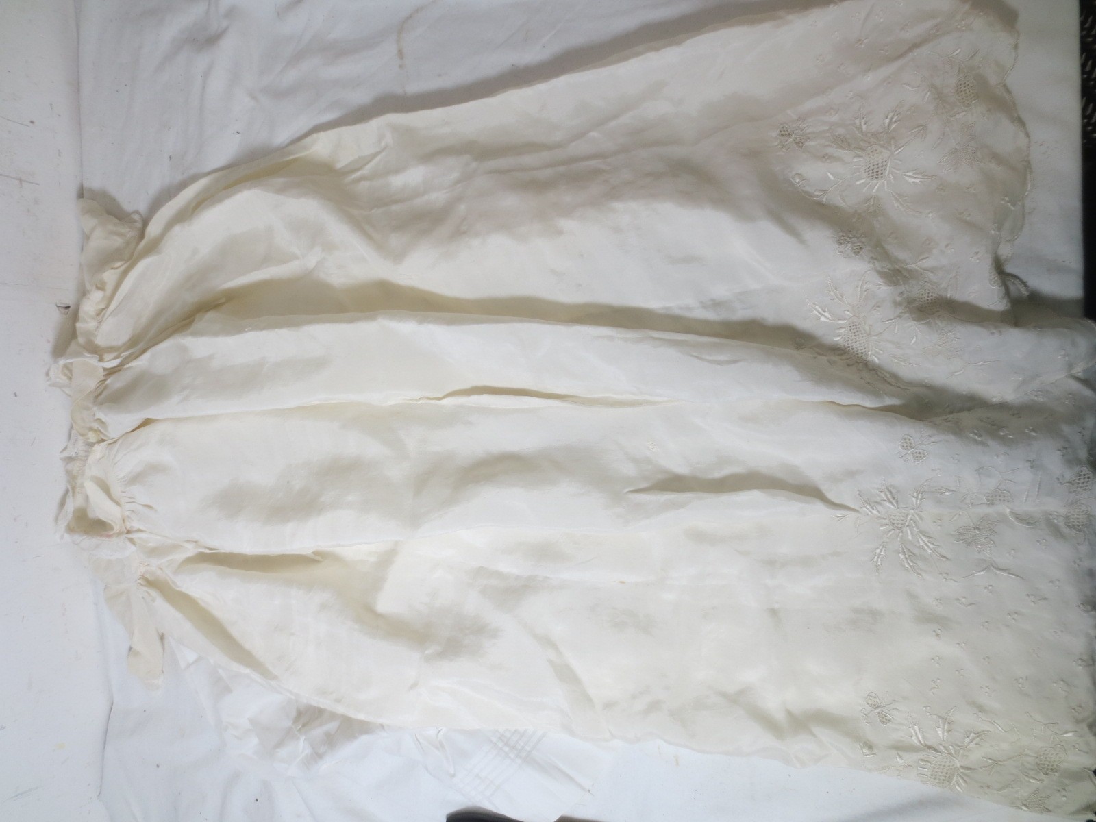 The christening Dress has a lot of hand heavily embroidered work to the lower third of the dress.