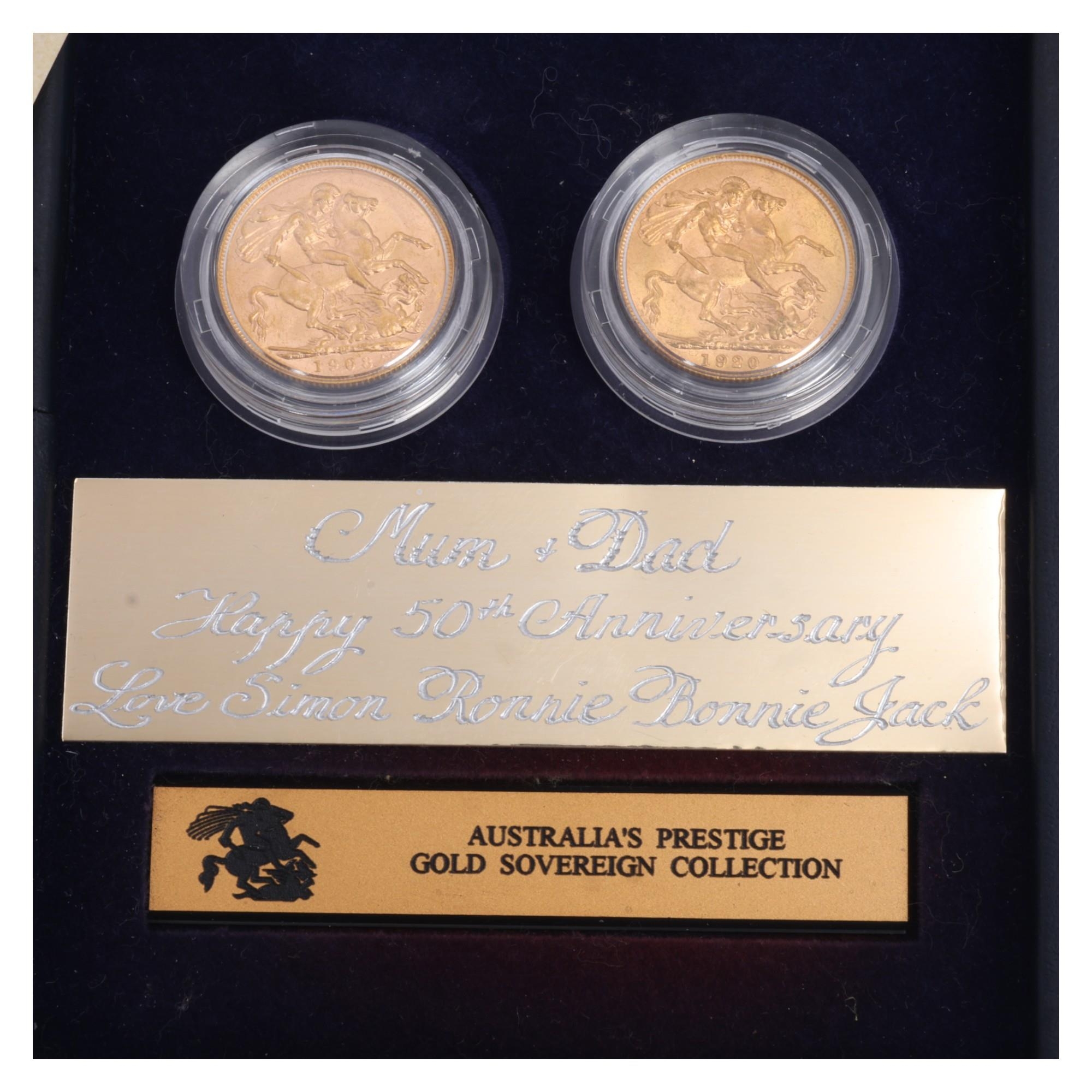 Australia's Prestige Gold Sovereign Two Coin Collection, comprising Edward VII 1908 full sovereign, and George V 1920 full sovereign, both Perth Mint, in original presentation case