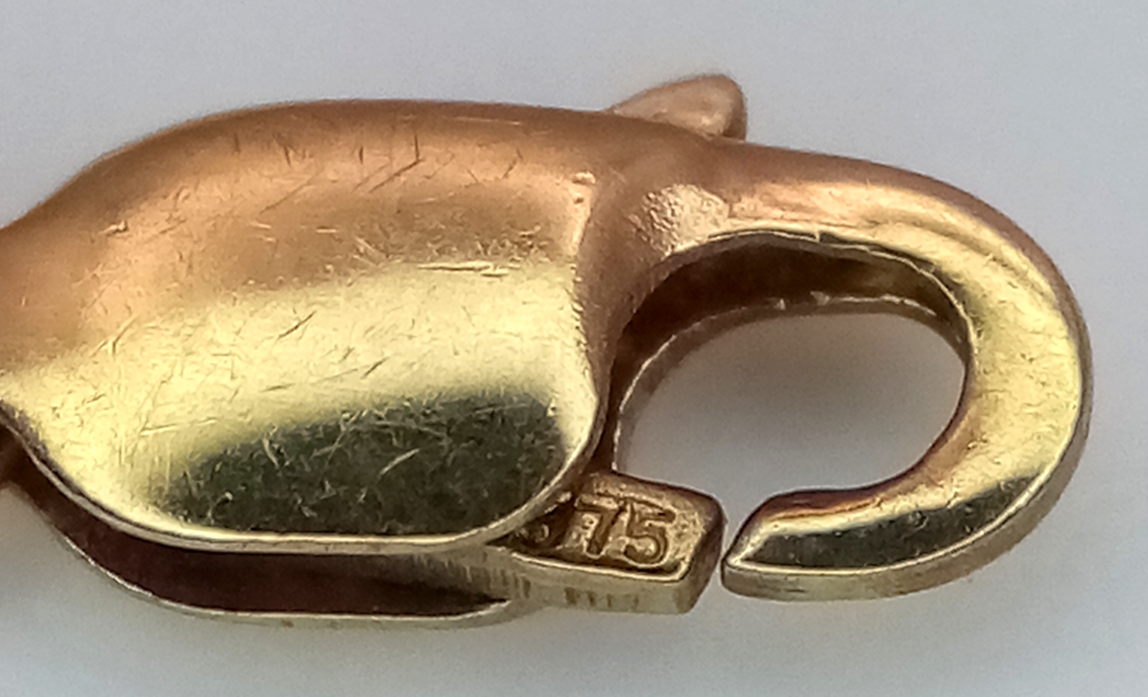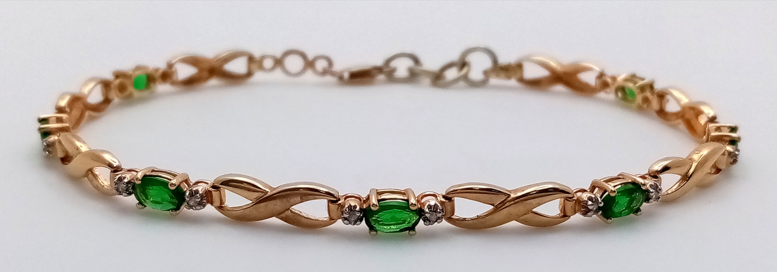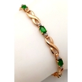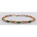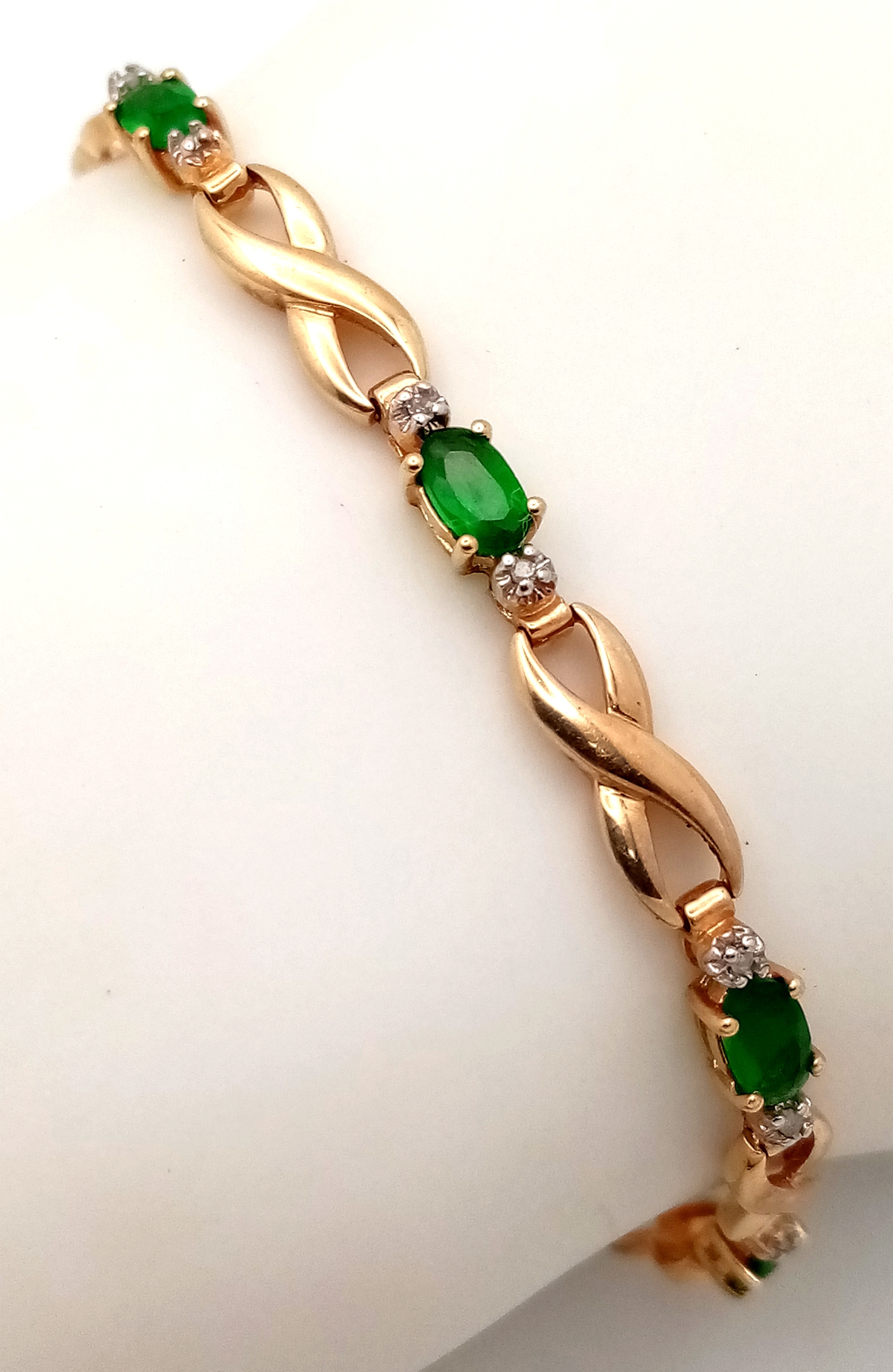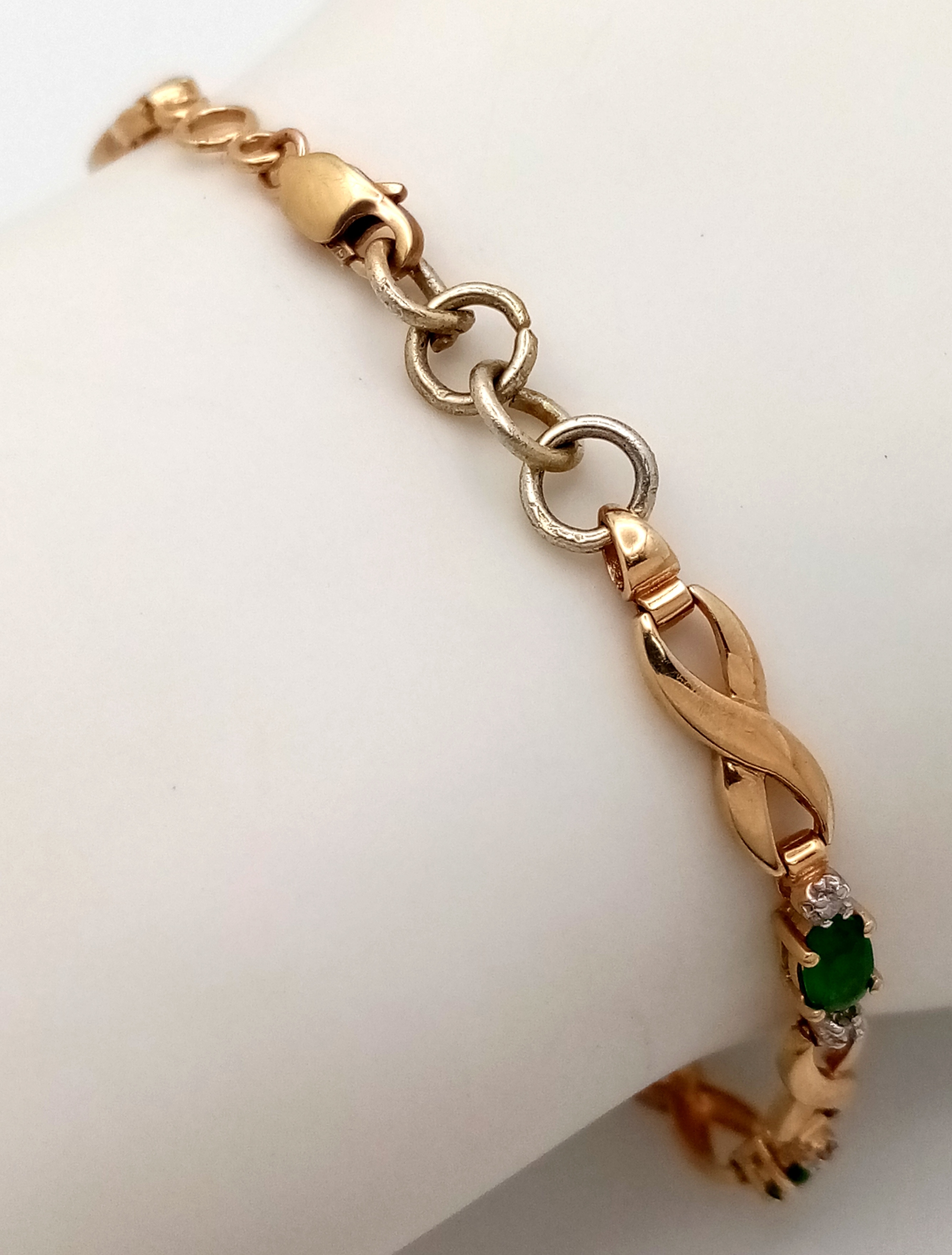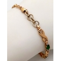 A 9K YELLOW GOLD DIAMOND & GREEN STONE SET BRACELET. 5.5G , 19.5CM IN LENGTH. REF: SC 9059
