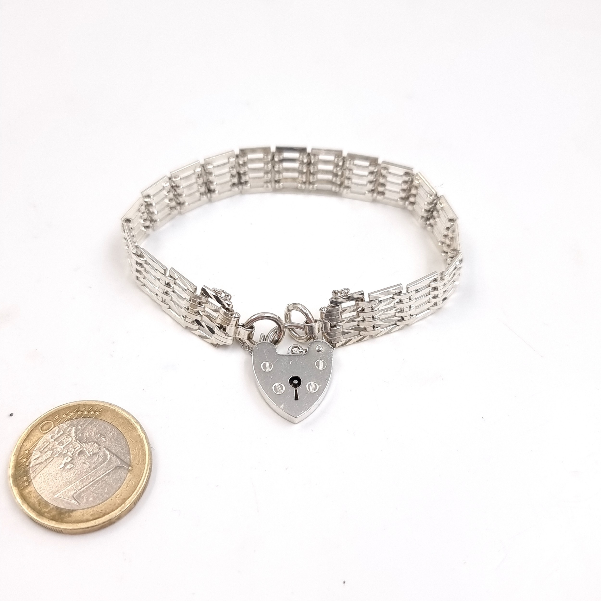 A Sterling Silver gate bracelet with padlock clasp. Hallmarked Sheffield. Weight - 12.8 grams.