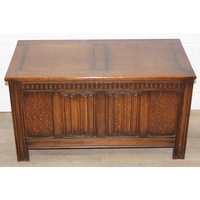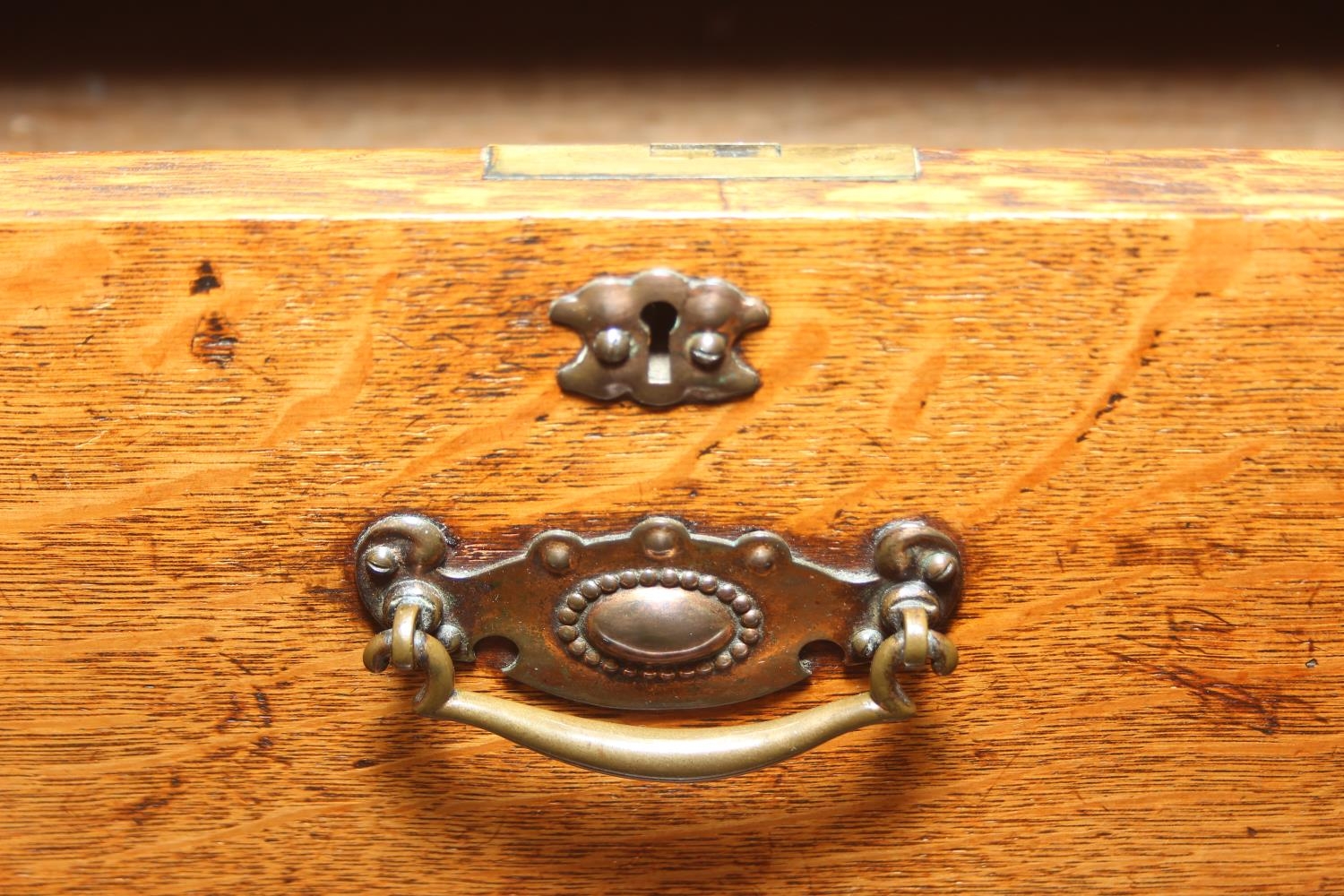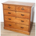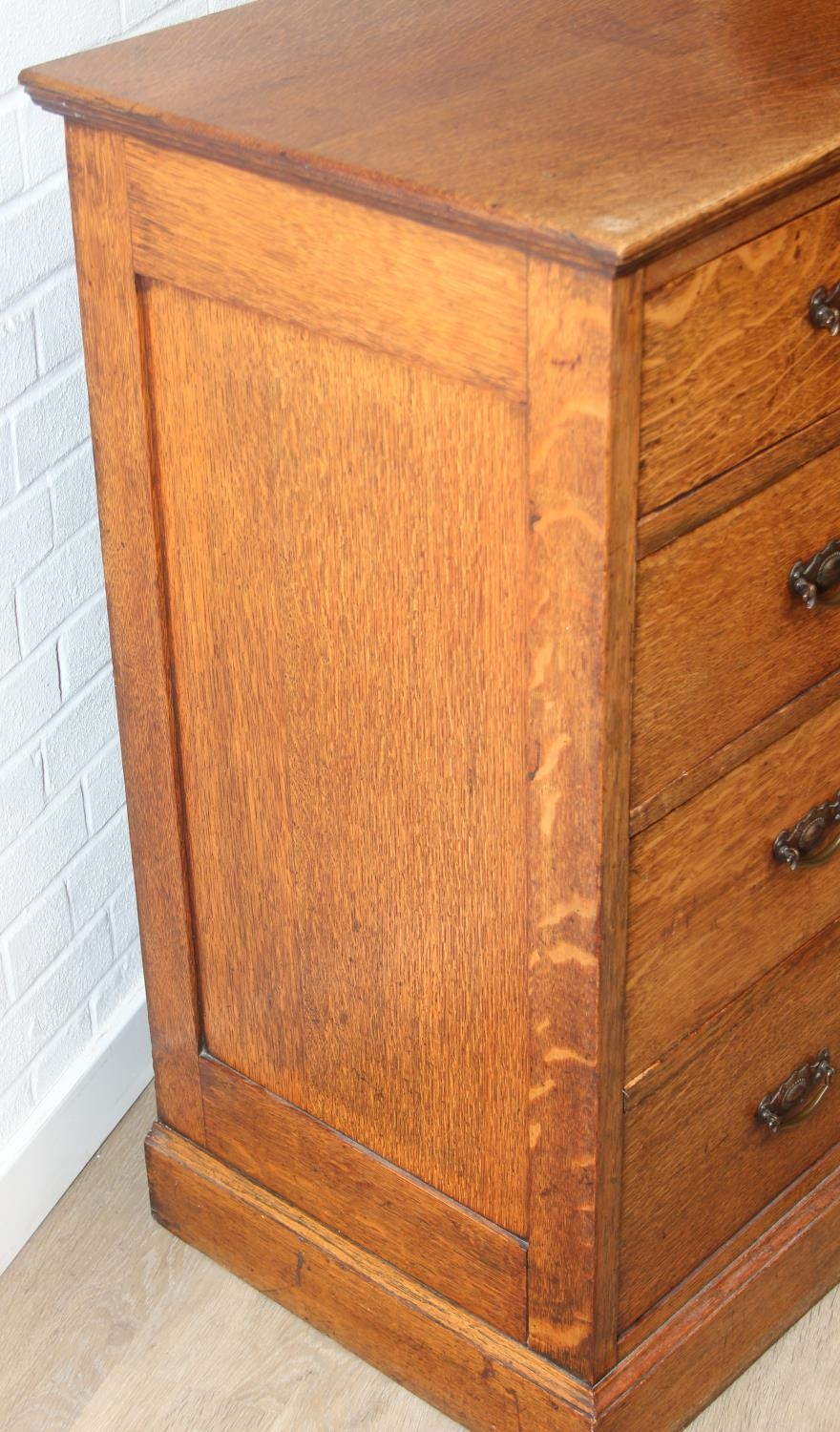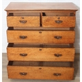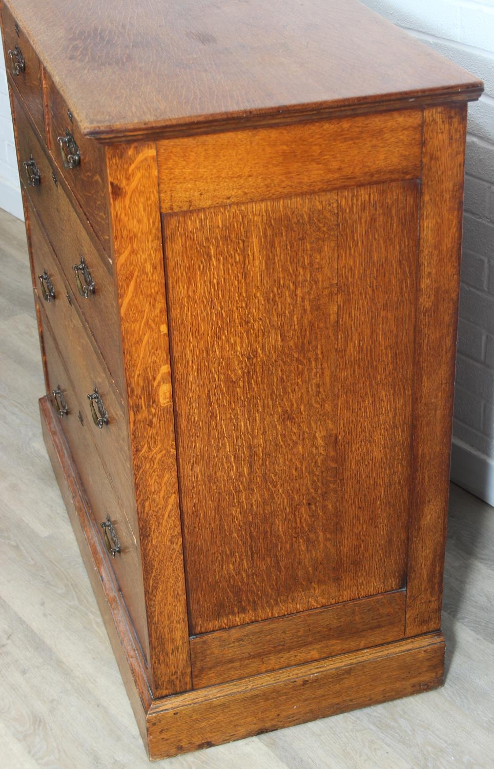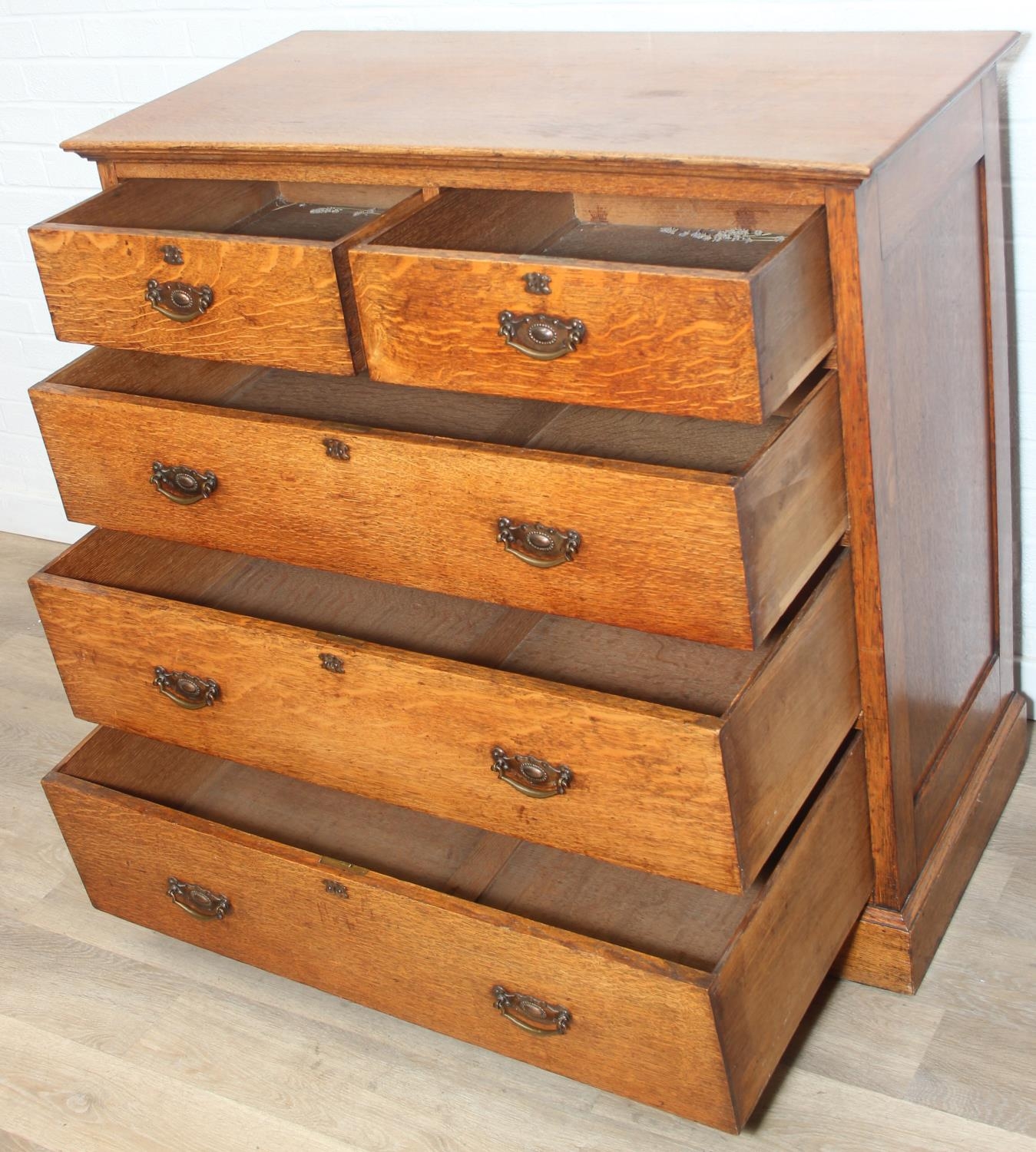 Antique oak two over three chest of drawers with decorative brass handles, 106cm x 52cm x 105cm