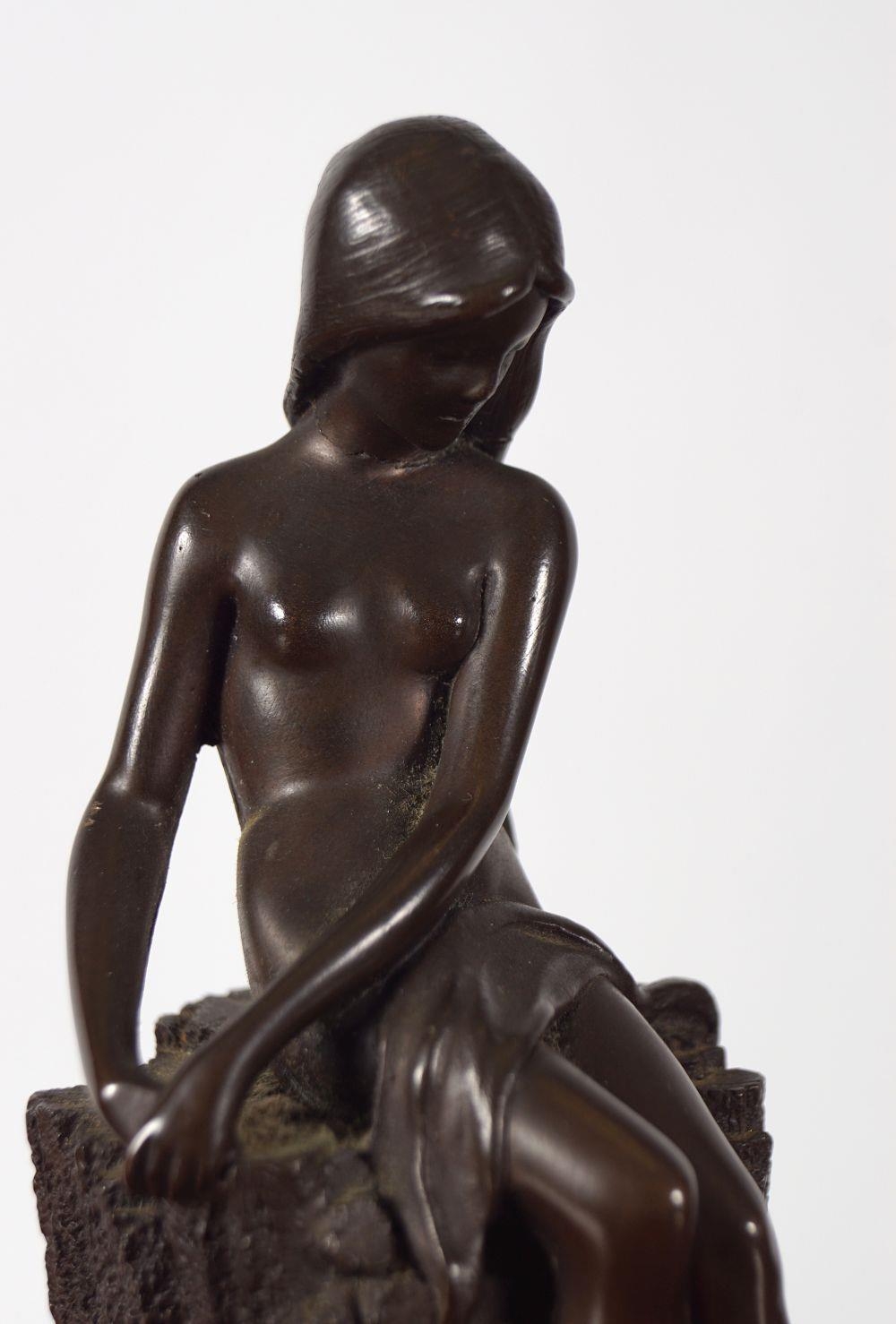 Venus seated on a rocky mound. Raised on a stepped circular marble base. 20 cm. high