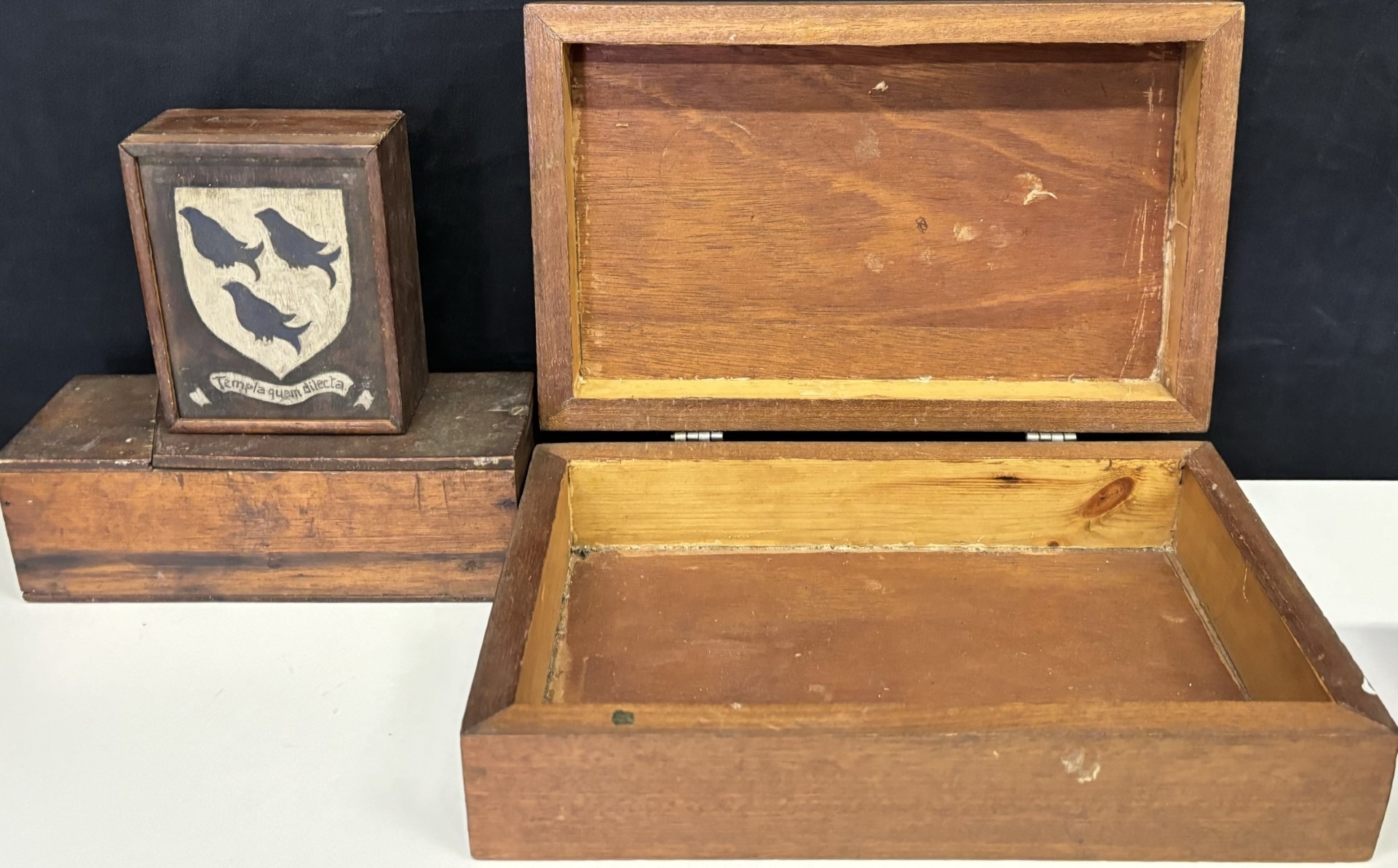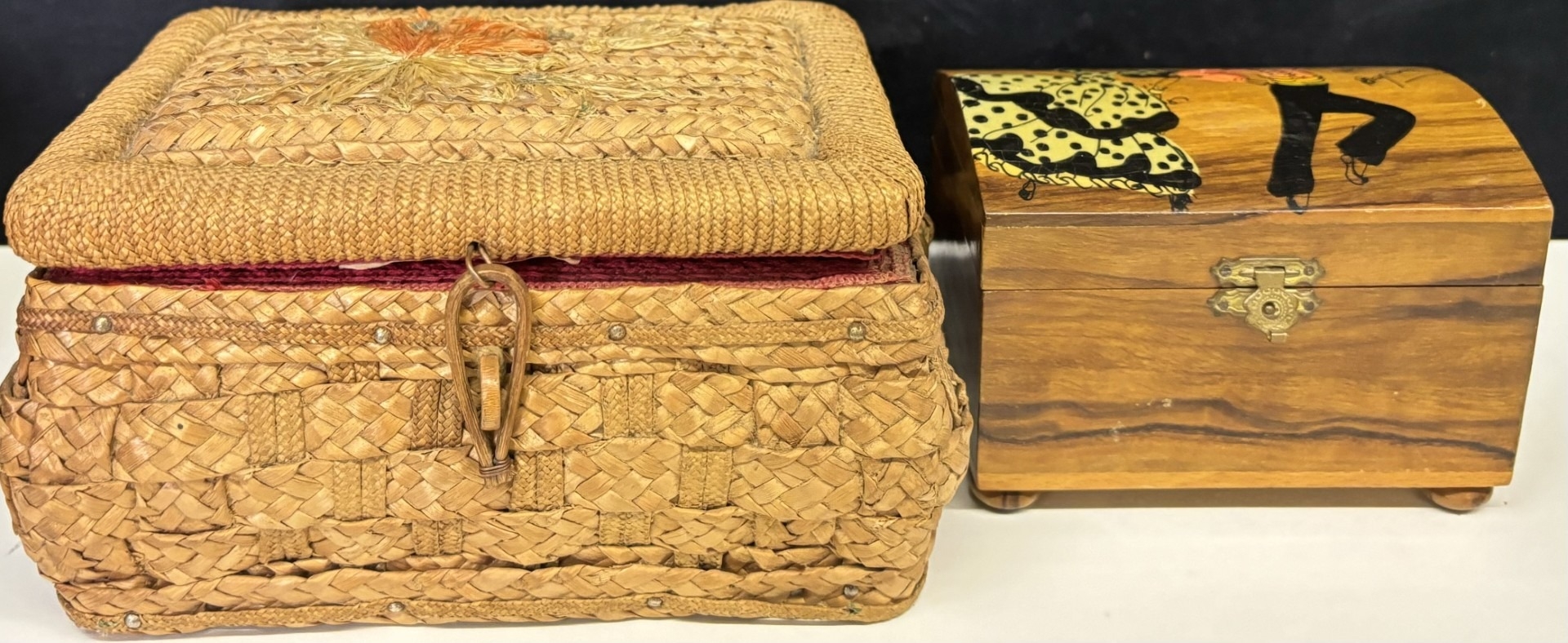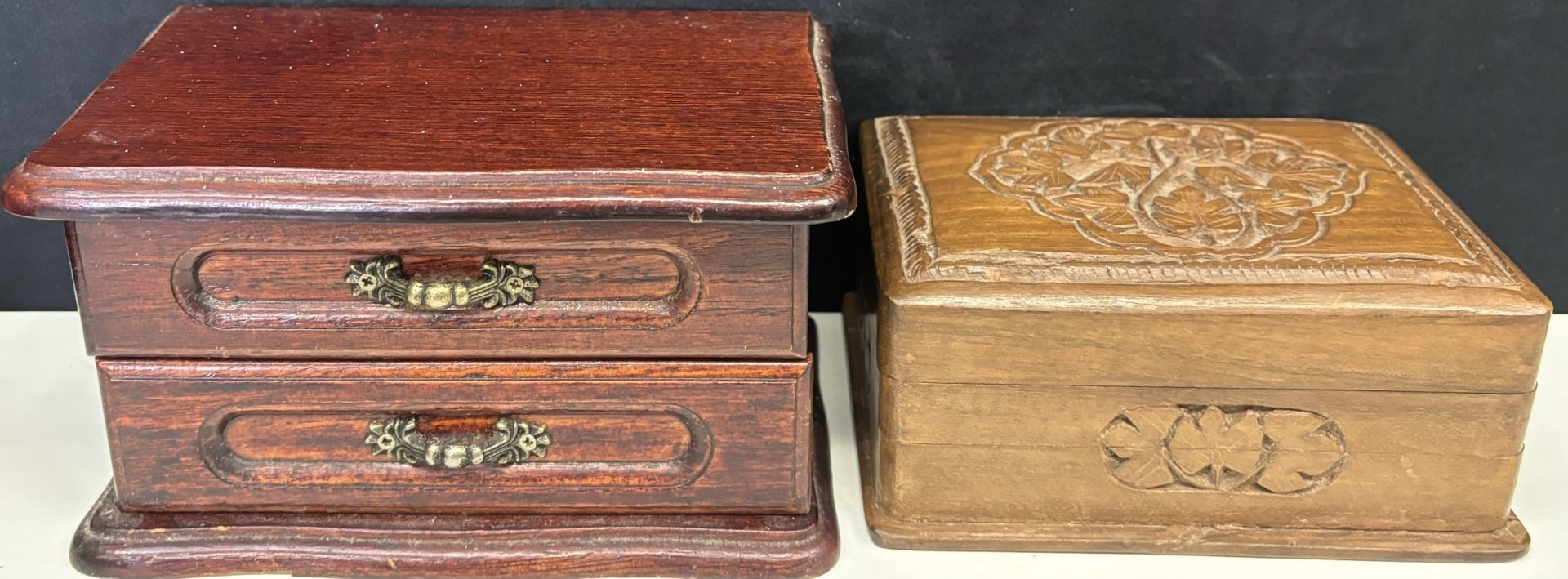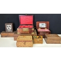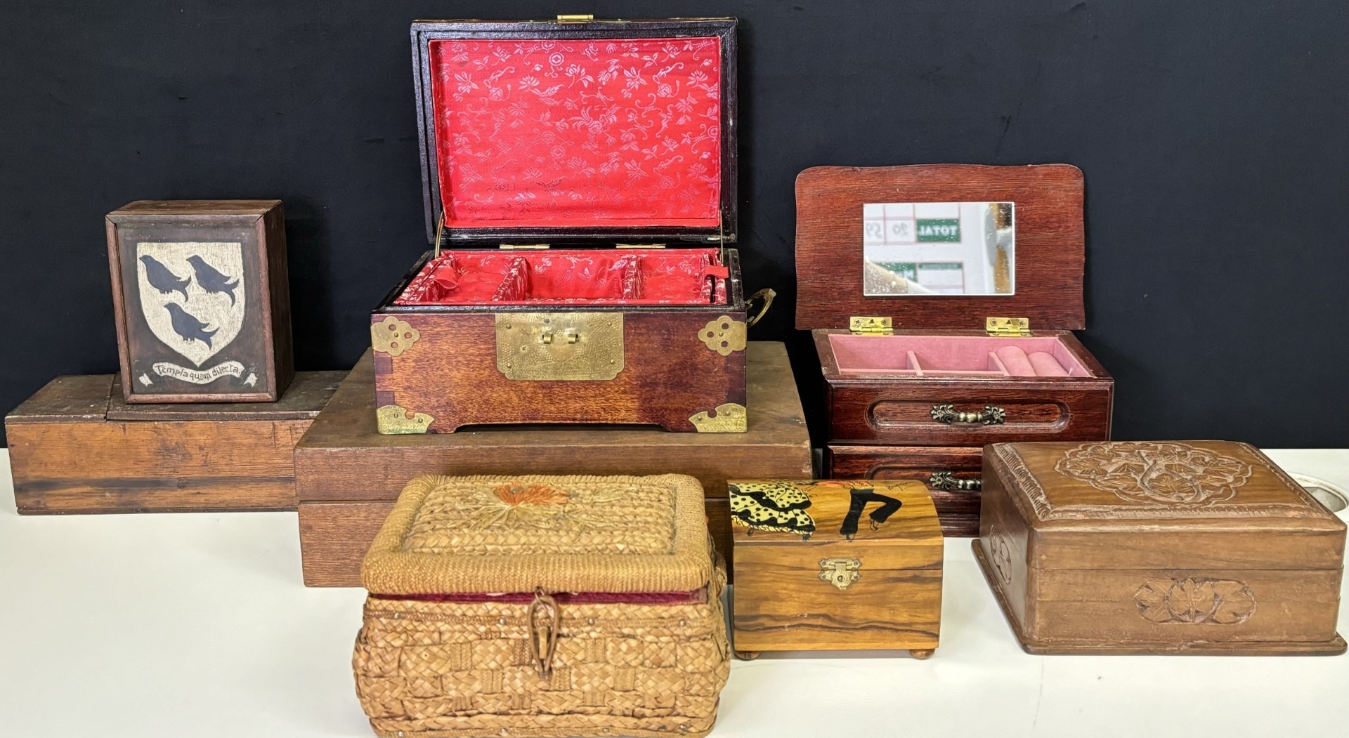 Collection of 8 vintage jewellery & wooden boxes. Largest dimensions(cm) H9, W28, D18.