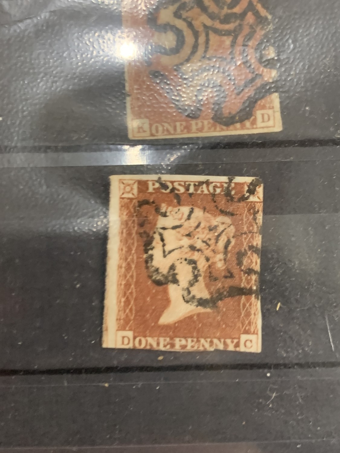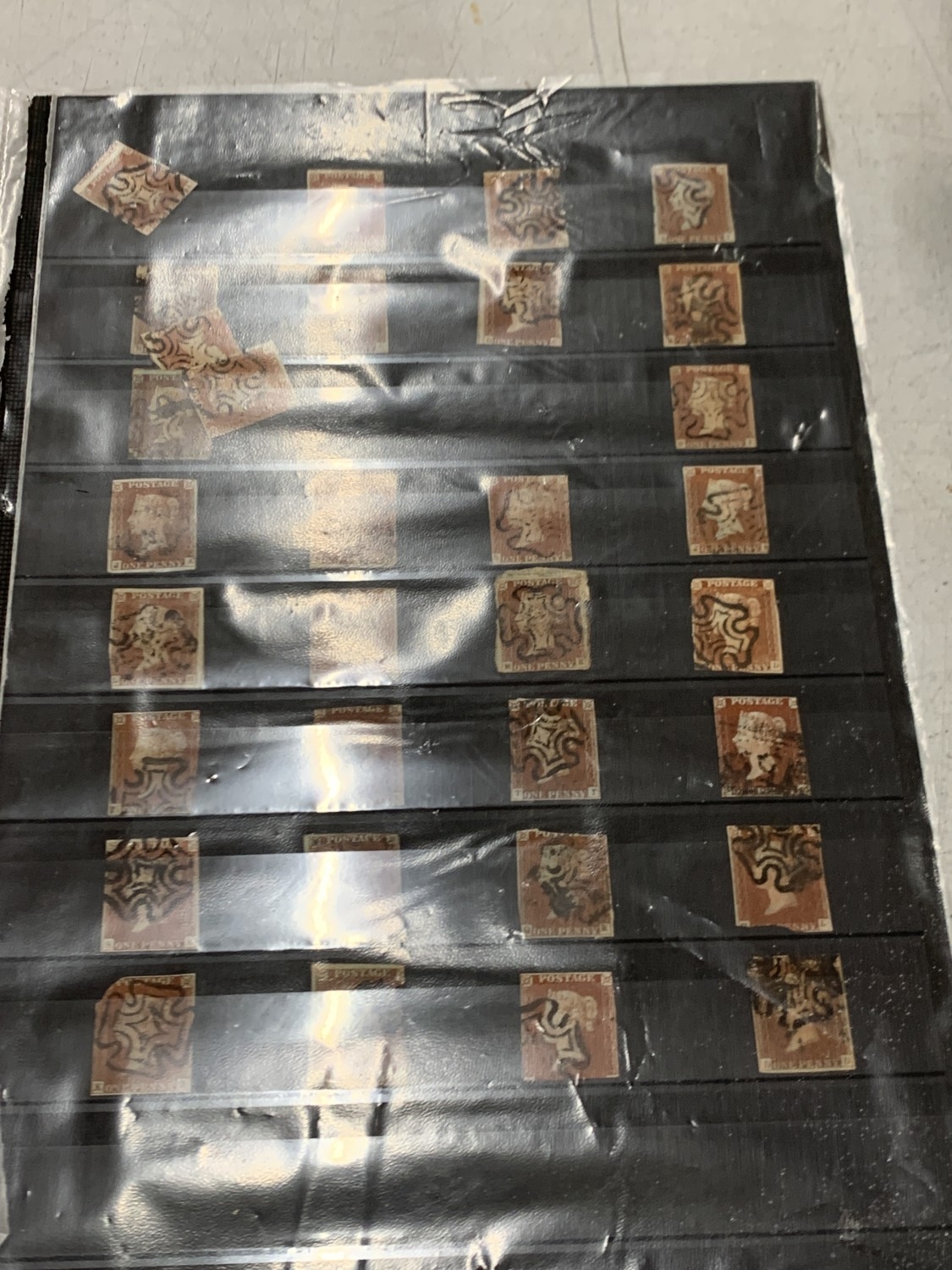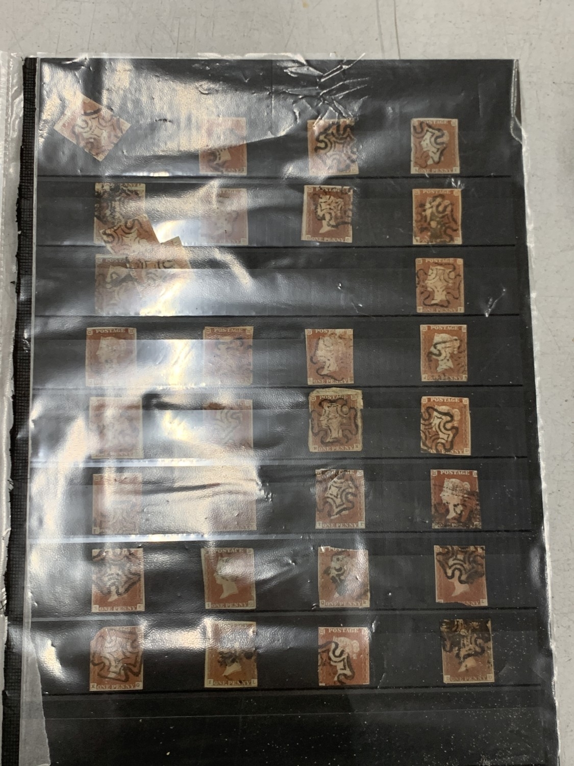 ONE PAGE OF PENNY REDS ON BLUE PAPER WITH MALTESE CROSS