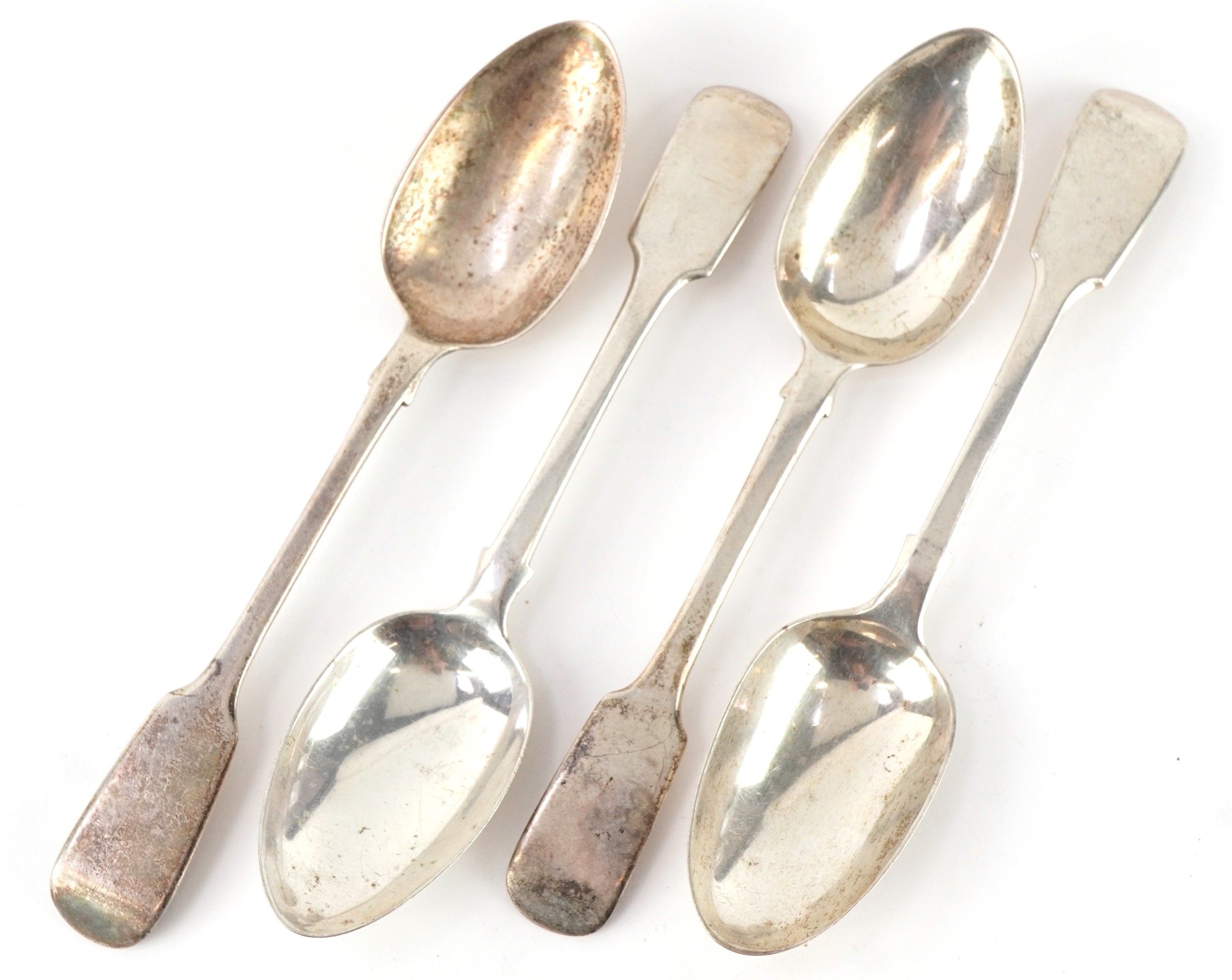 Four Victorian silver tablespoons, each approximately 19cm in length, total 182.9g.