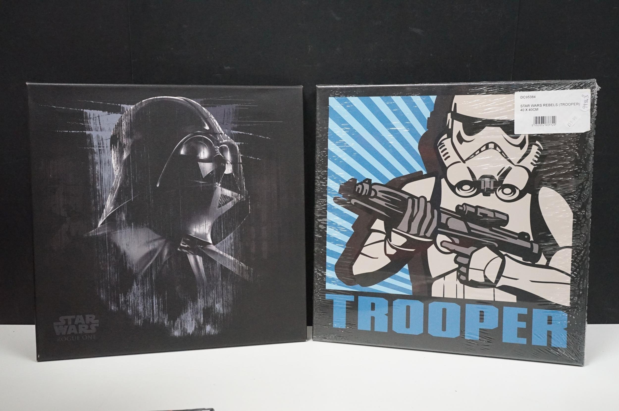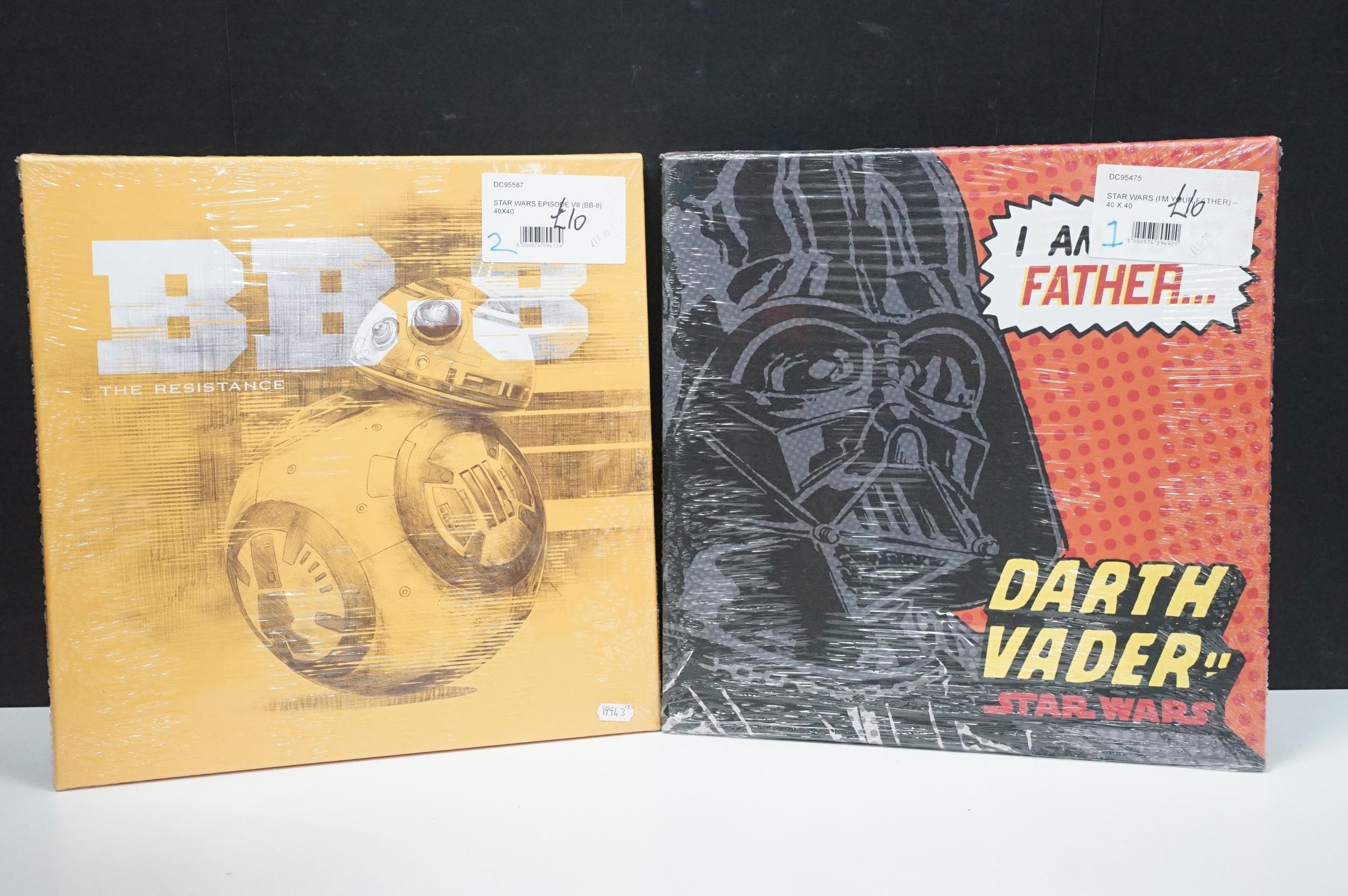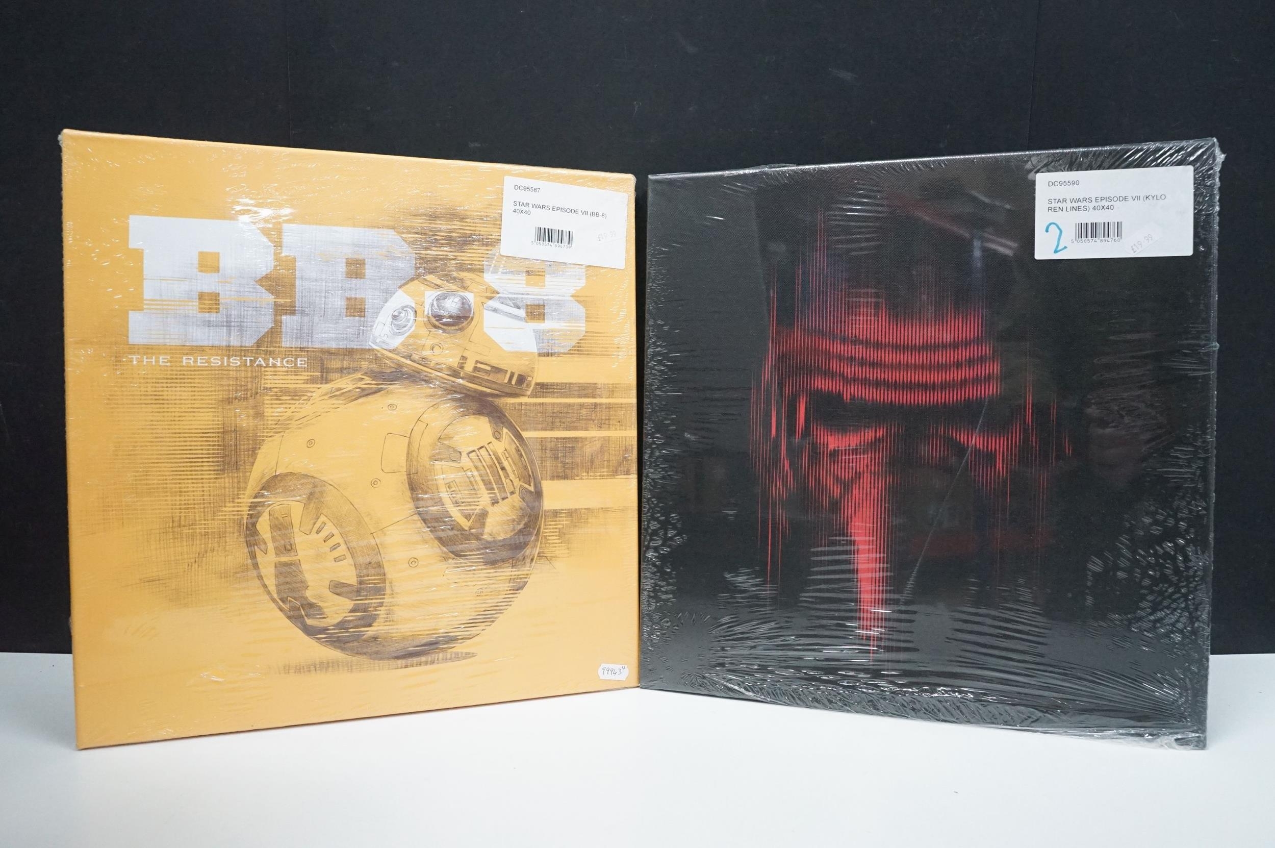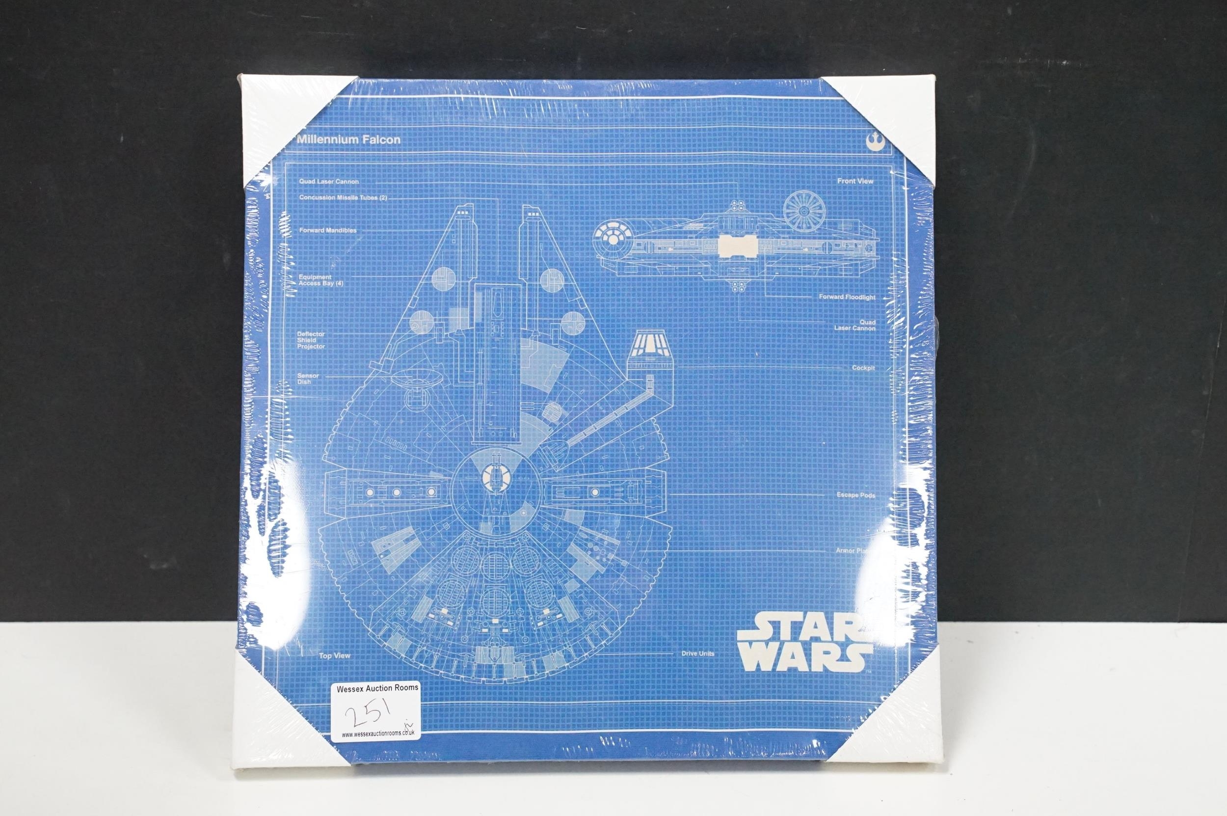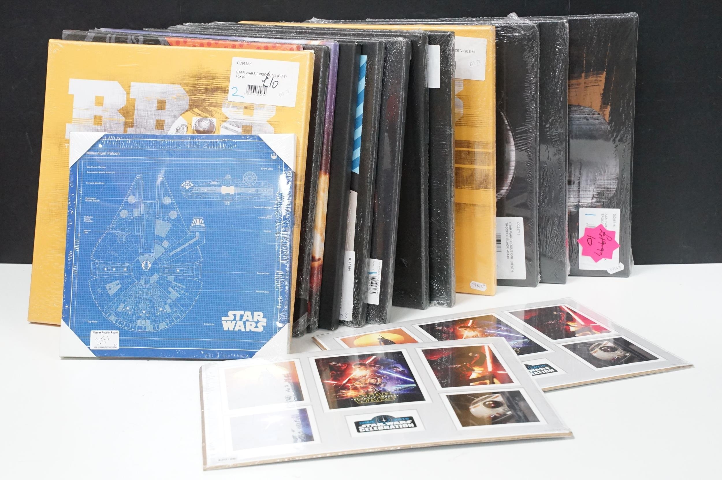 Star Wars - 14 framed canvas Star Wars prints featuring Millennium Falcon Blueprints, Kylo Ren Fire, Rogue One, I'm Your Father, BB-8, etc