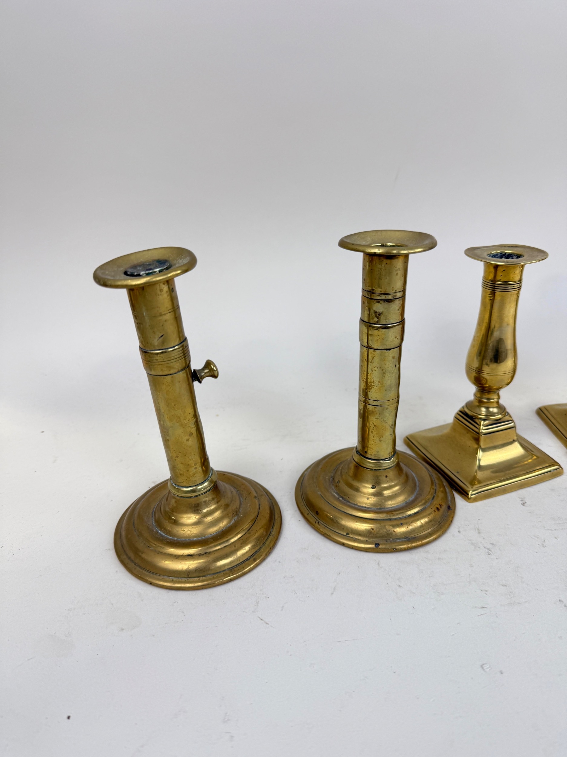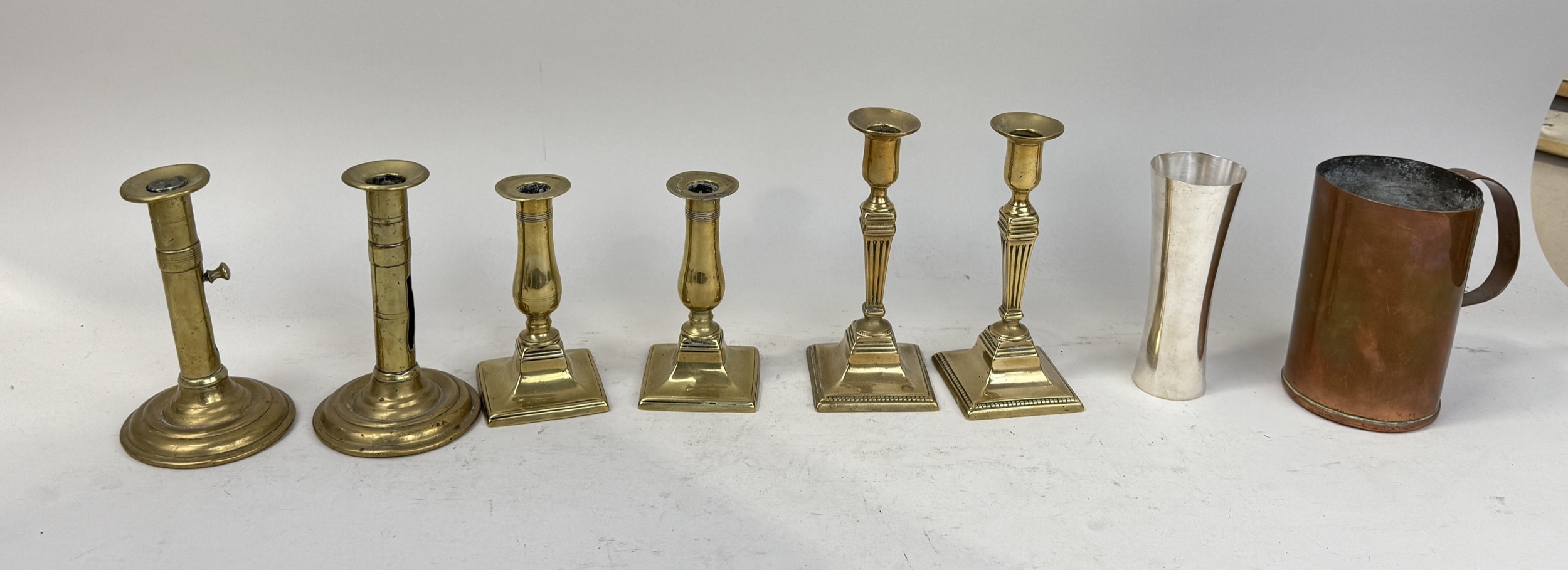 SELECTION OF BRASS CANDLESTICKS ALONG WITH OTHER METALWARE