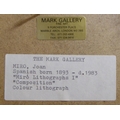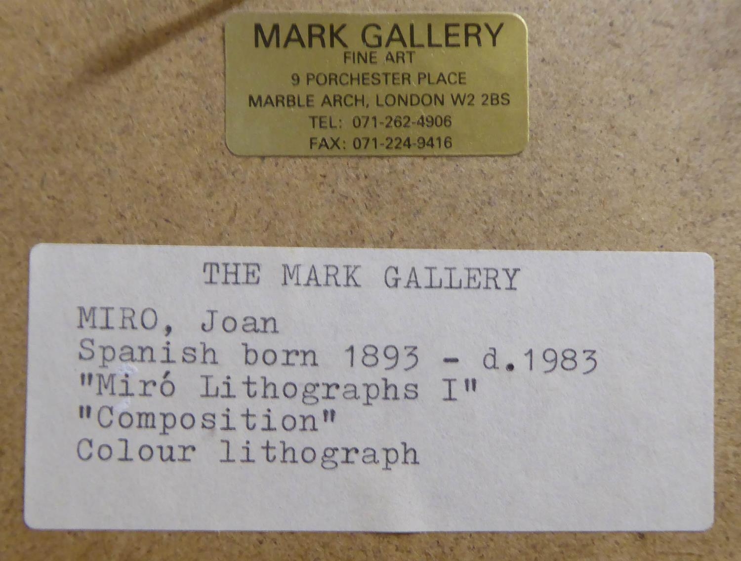 JOAN MIRO 'Miro lithographs plate 6', 1972, lithograph, with the Mark Gallery label verso, 33cm x 25cm, framed and glazed.