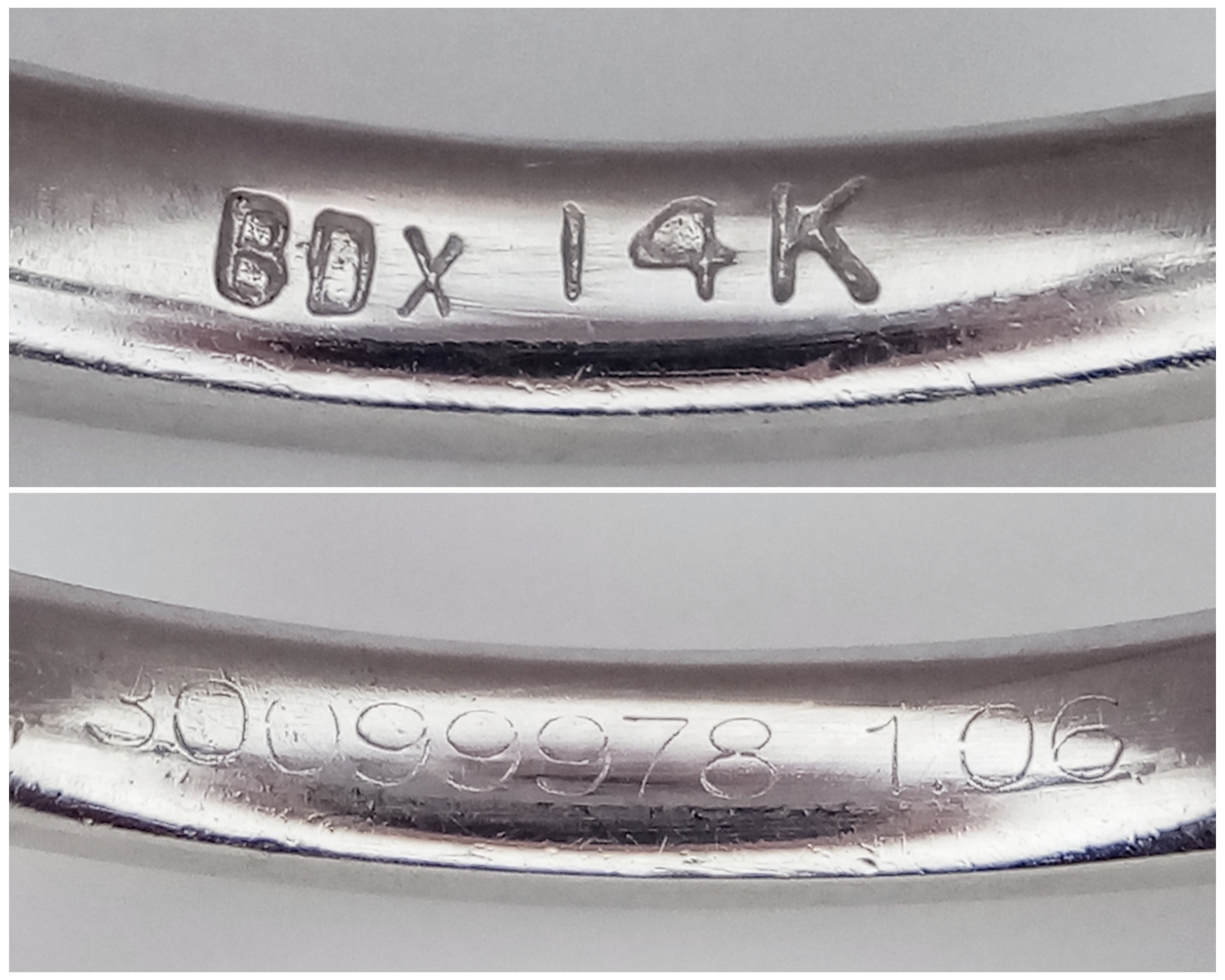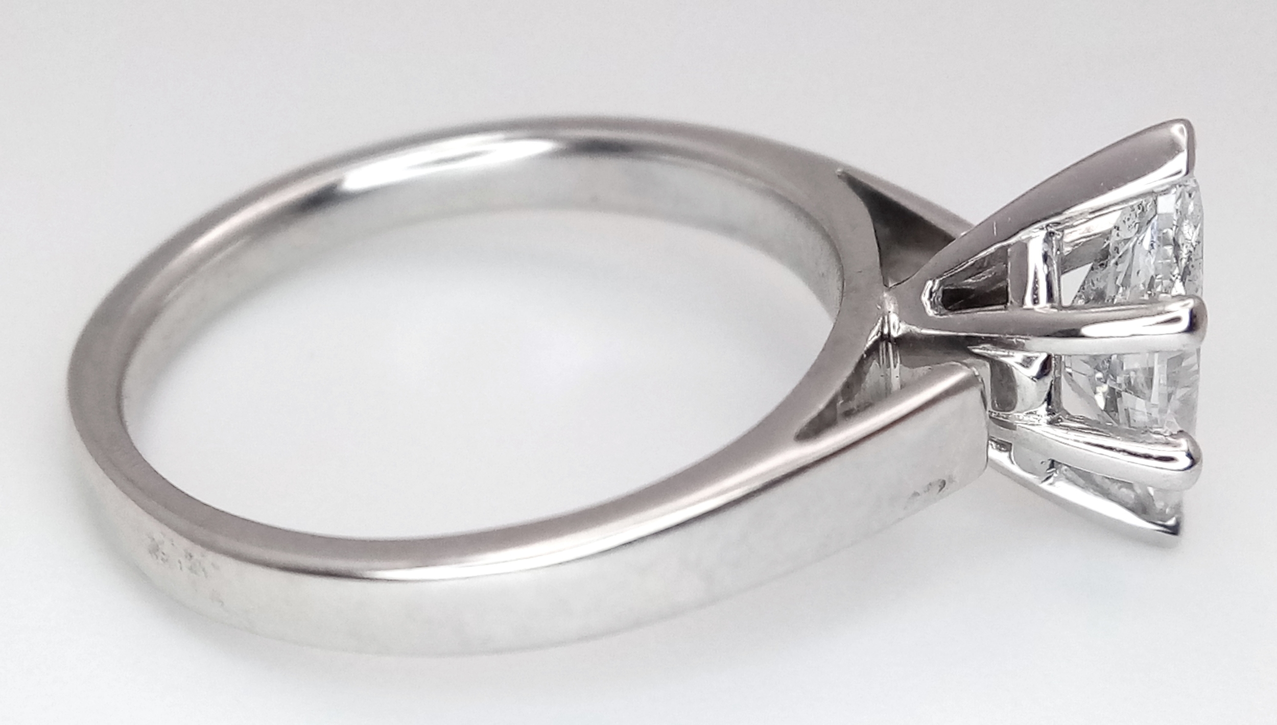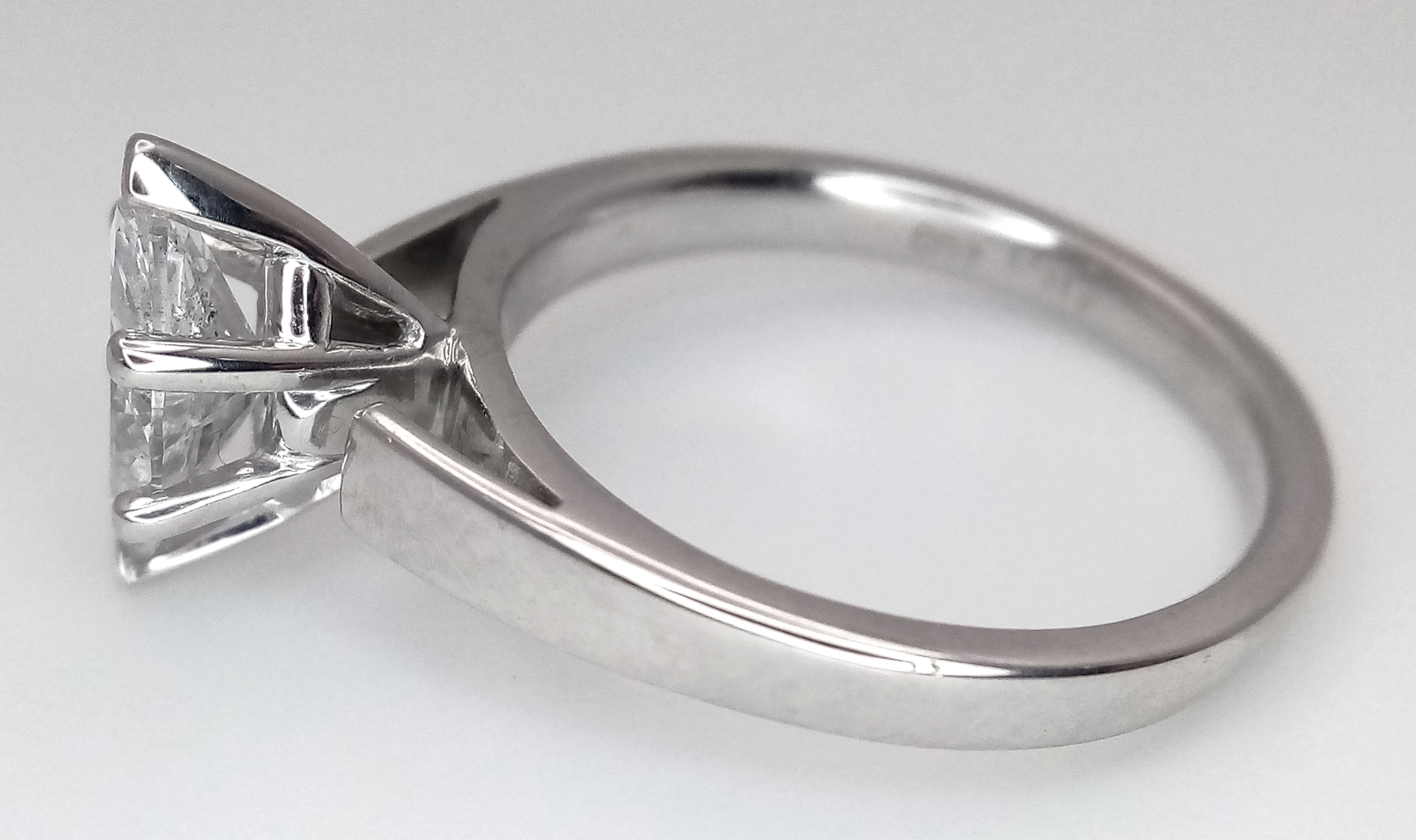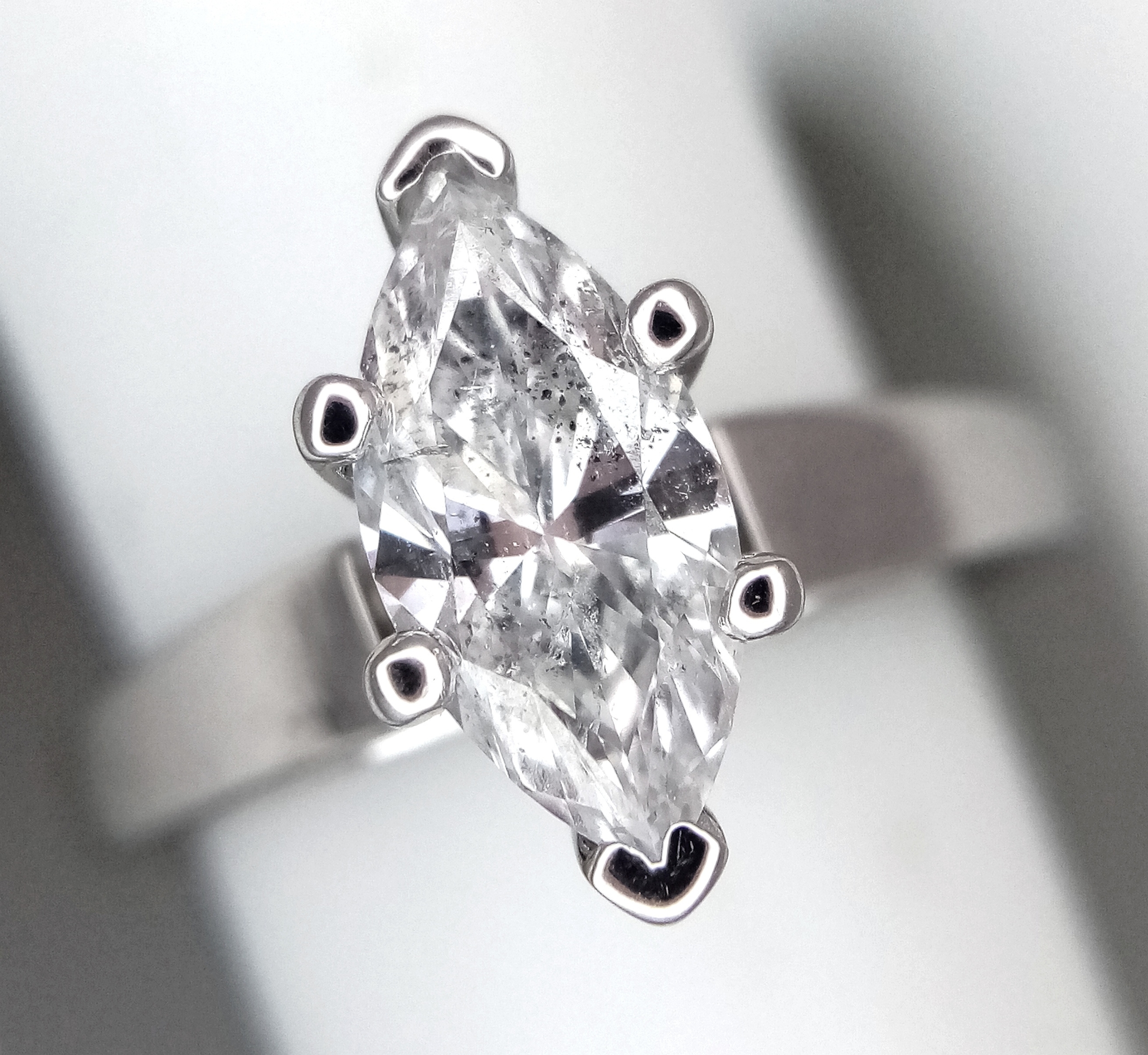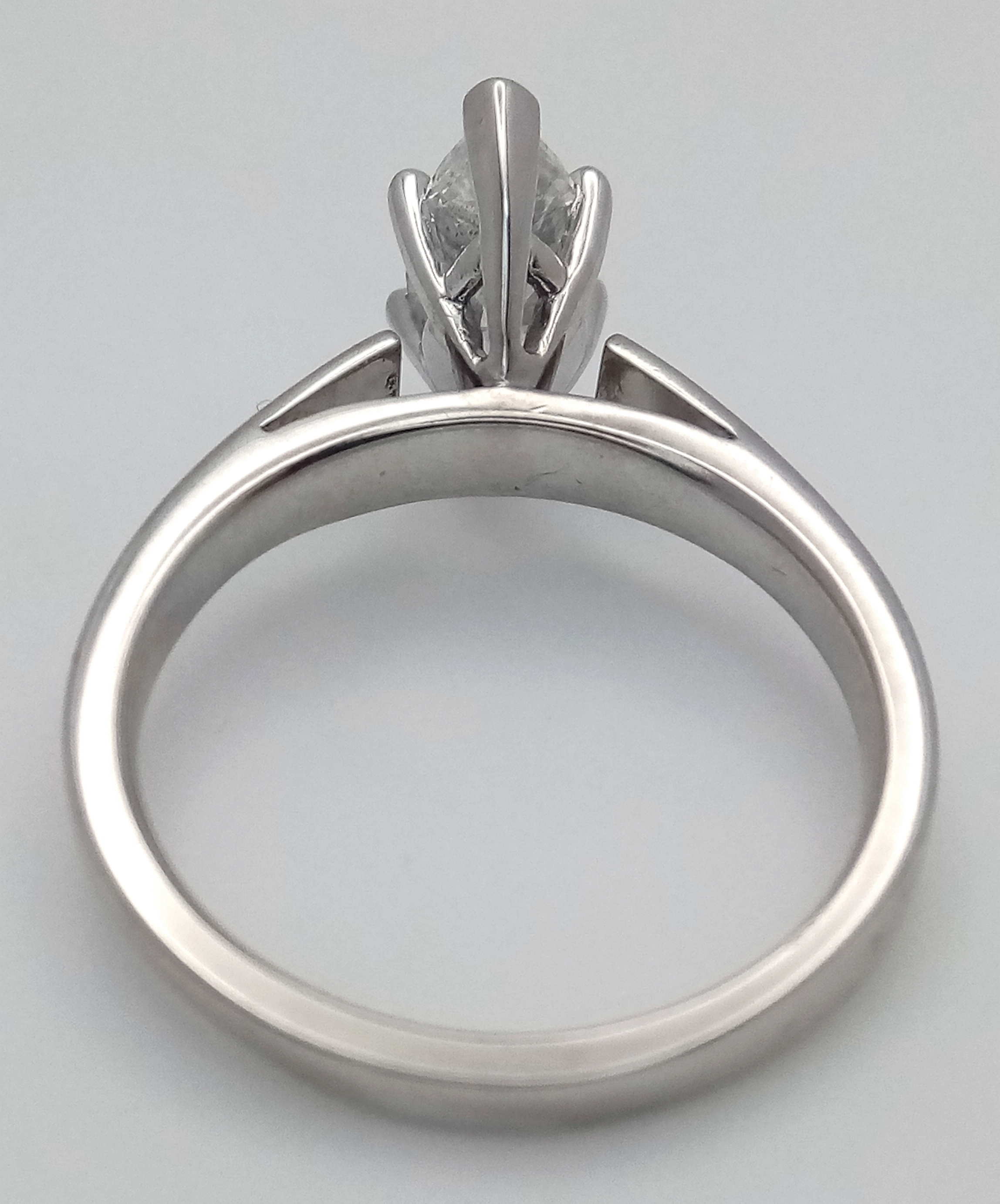 A 14K WHITE GOLD DIAMOND SOLITAIRE RING MARQUISE CUT 1.06CT DIAMOND 4.4G SIZE N. Ref: SPSA 7014