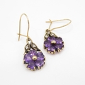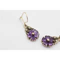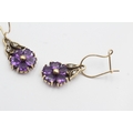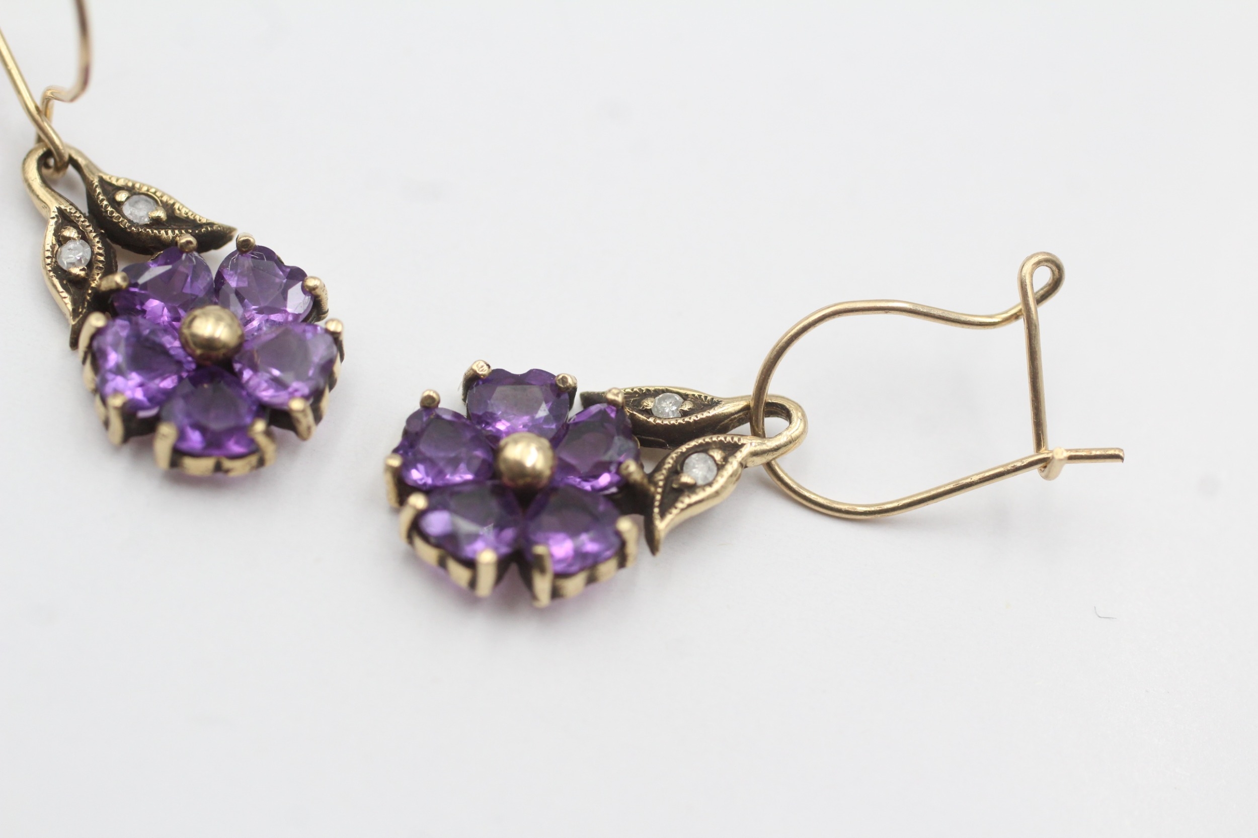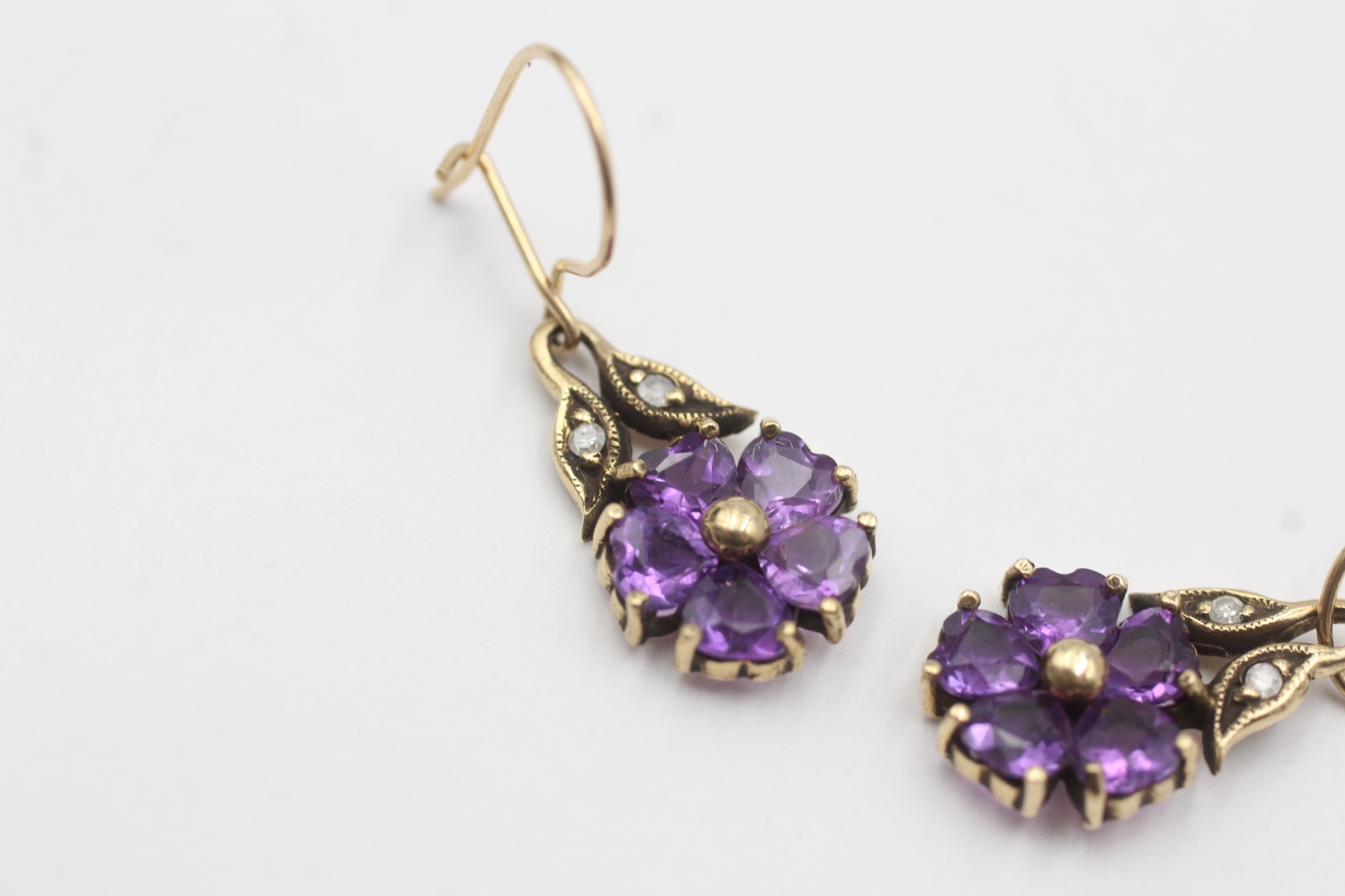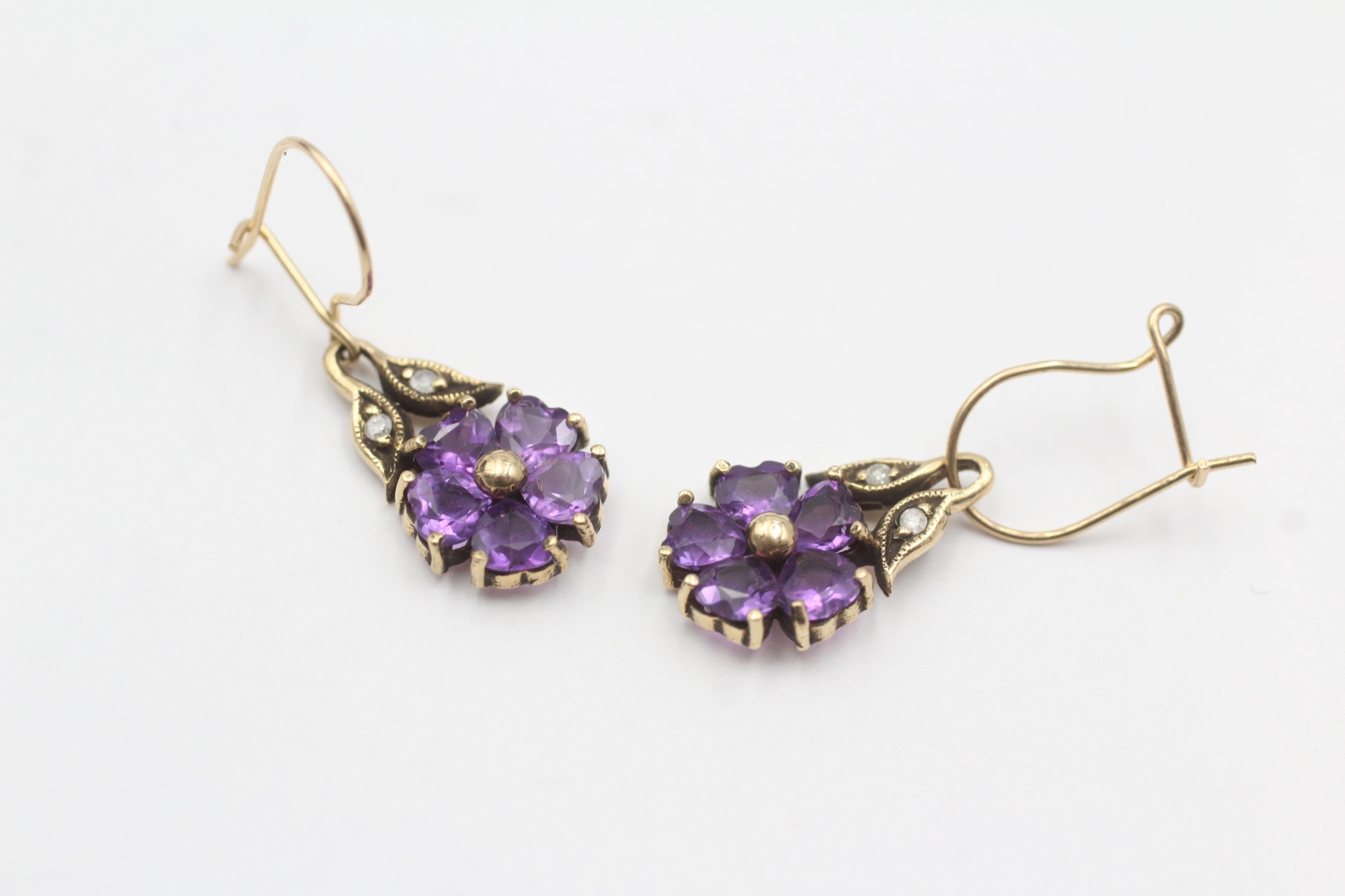 9ct gold vintage diamond and amethyst set floral drop earrings (2.5g)