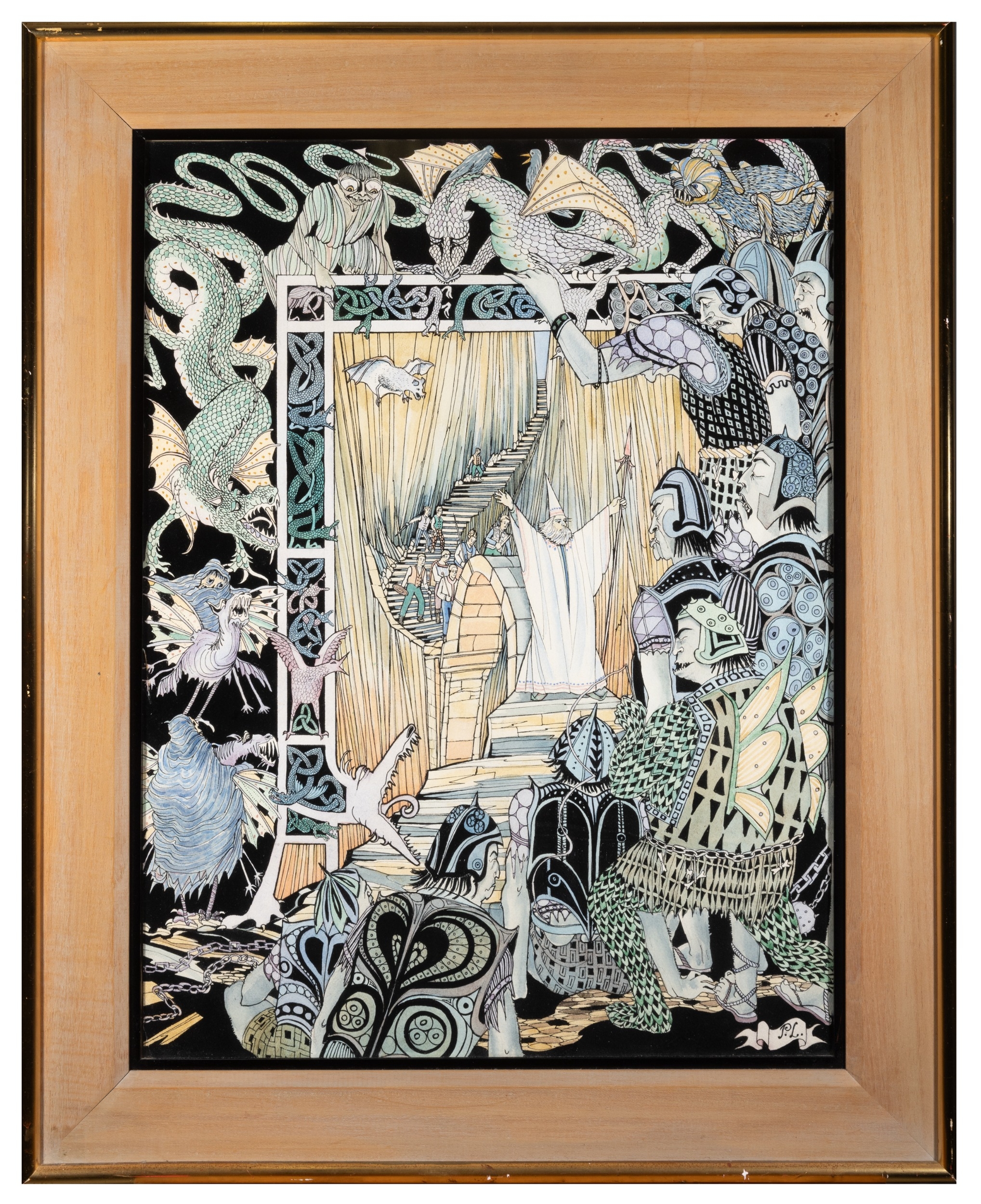 PAMELA LEONARD (B.1940) The Lord of the Rings – The Bridge of Khazad Dum Watercolour and ink, 60 x 46cm Signed, inscribed verso with title on artists label