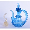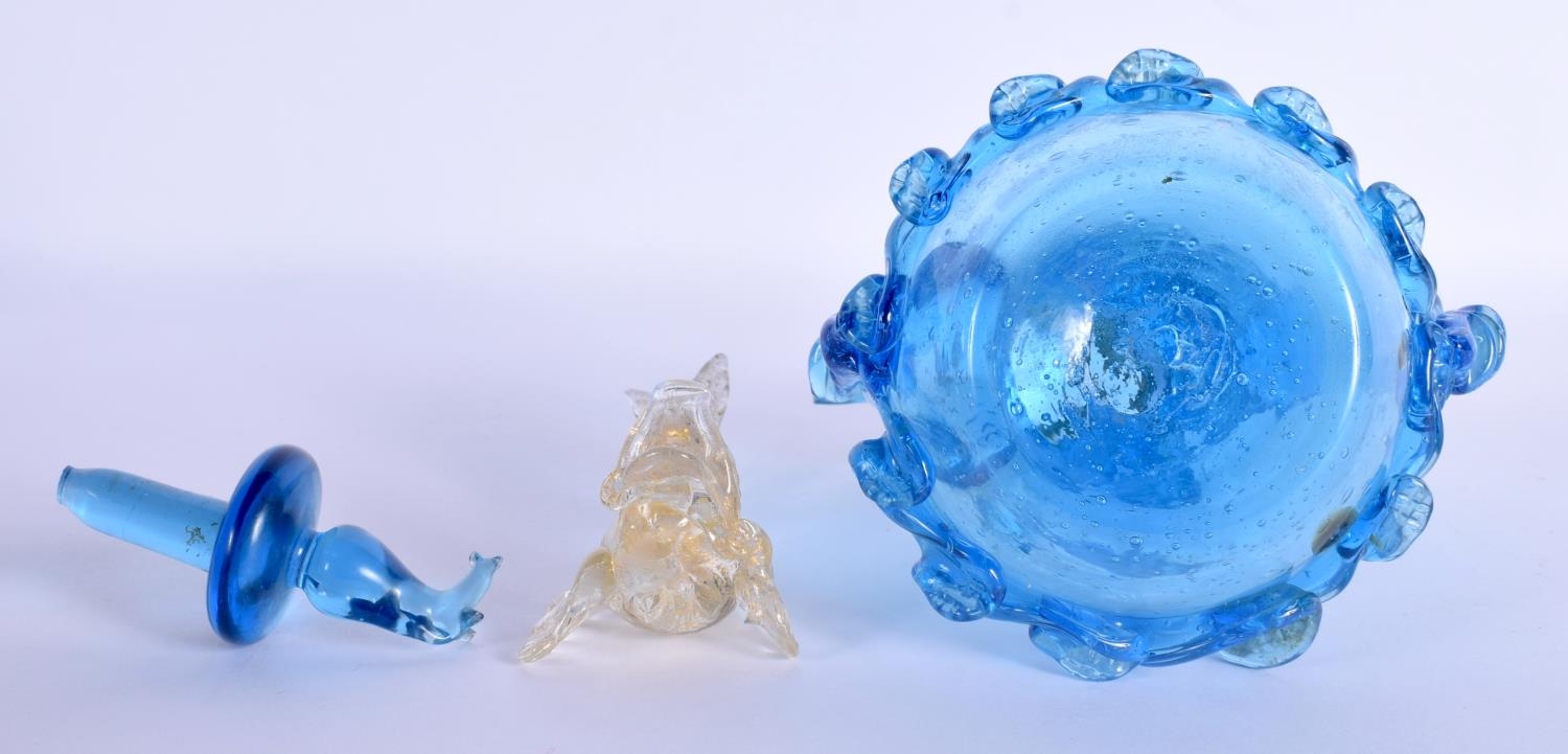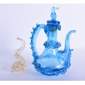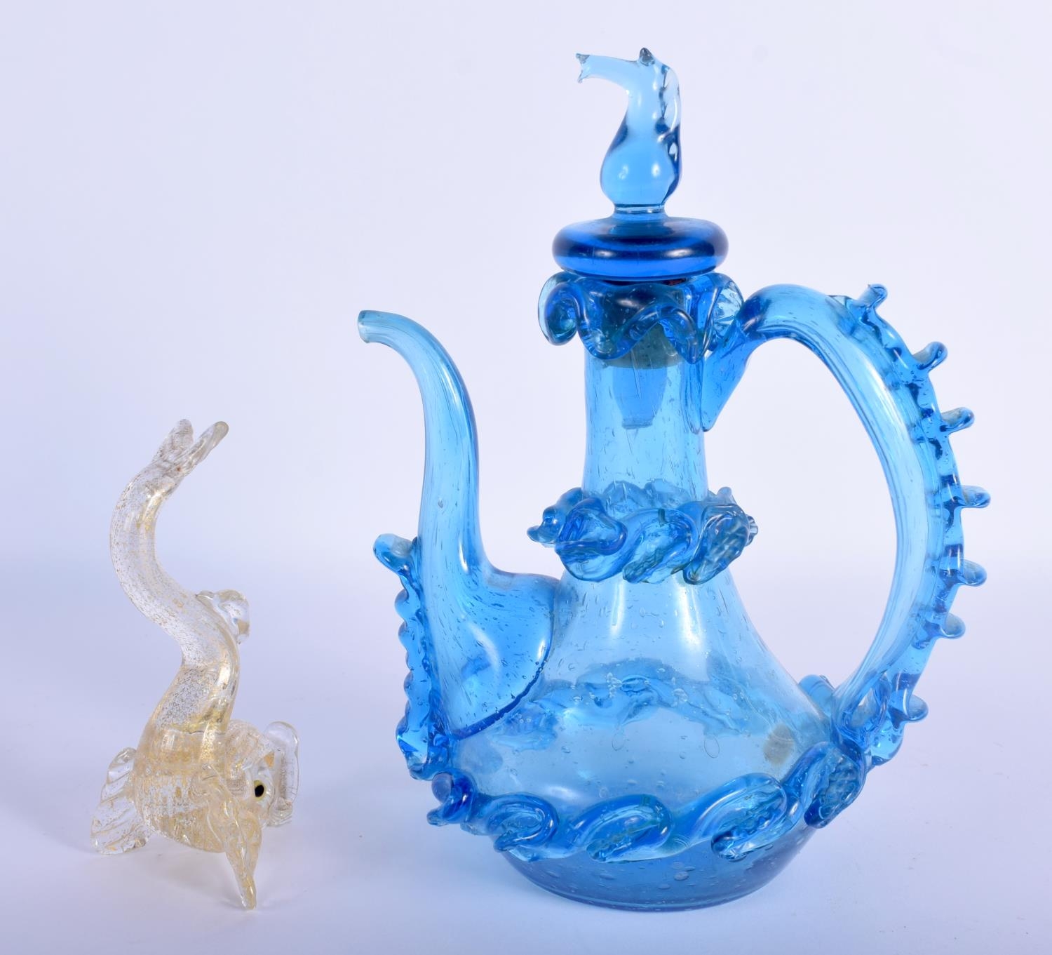 AN UNUSUAL VINTAGE VENETIAN GLASS FISH together with a similar ewer and cover. Largest 17 cm high. (2)