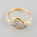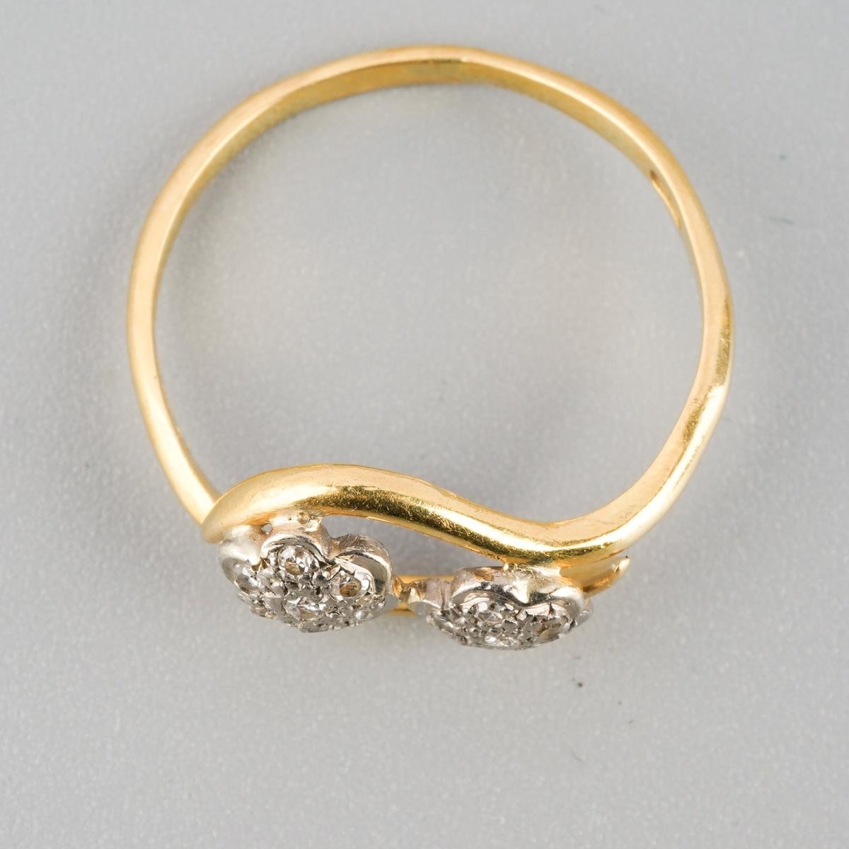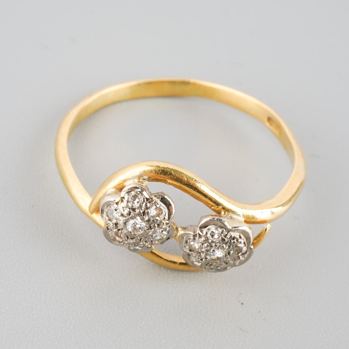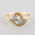 An 18ct gold diamond double cluster ring. Hallmarked 18ct gold, approx ring size L, approx gross weight 2.2 grams.