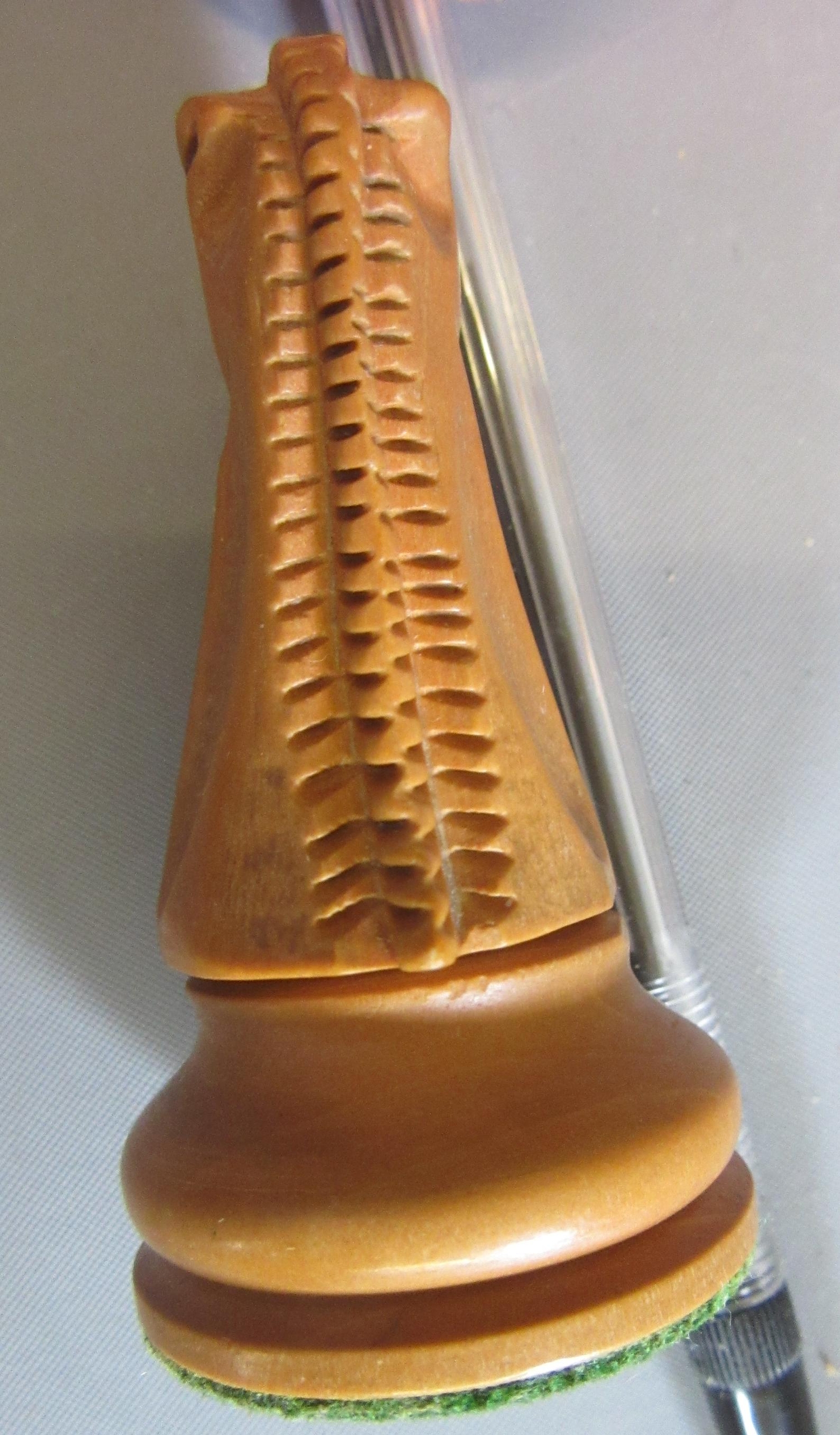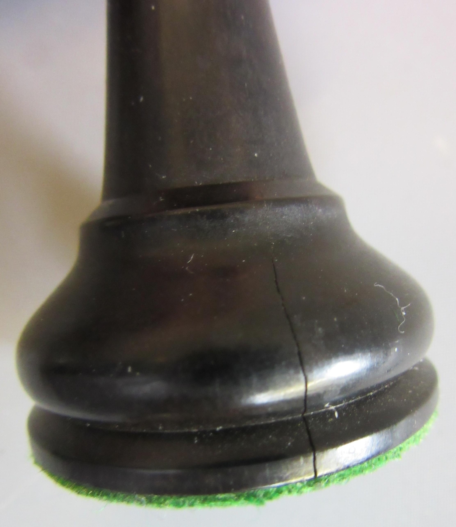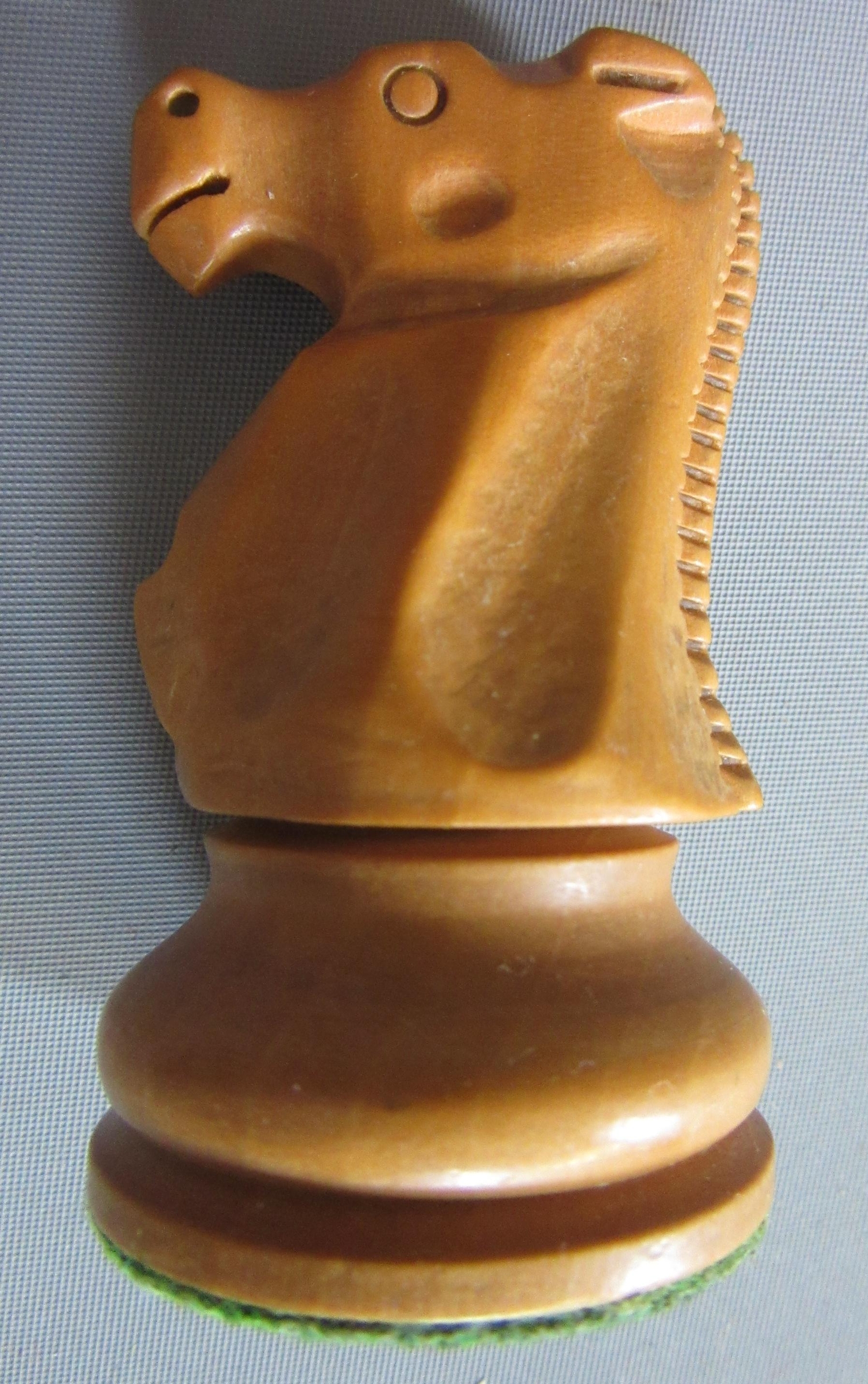Excellent, purchased new by the vendor (a chess champion) in 1981. White King only stamped JAQUES in red. Black king has a split to base. Kings are more precisely 3 7/8" high