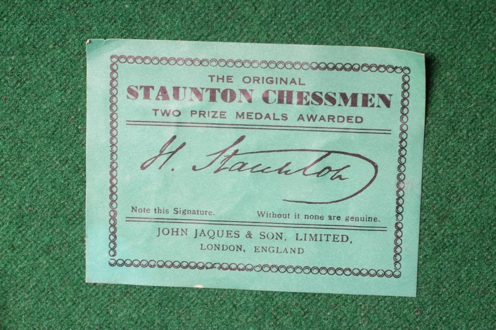 A JAQUES STAUNTON CHESS SET, c.1981, in box and ebony, weighted, in green baize lined box with label, Kings 3 3/4" high (Est. plus 24% premium inc. VAT)